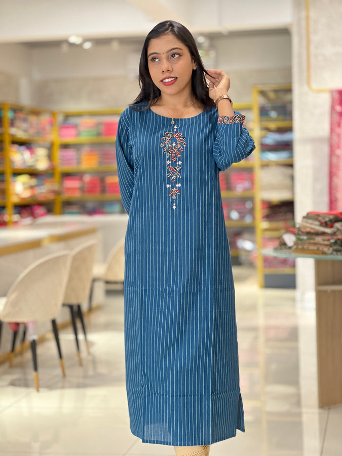 Stripe Print Patterned Cotton Kurta | DNT1079