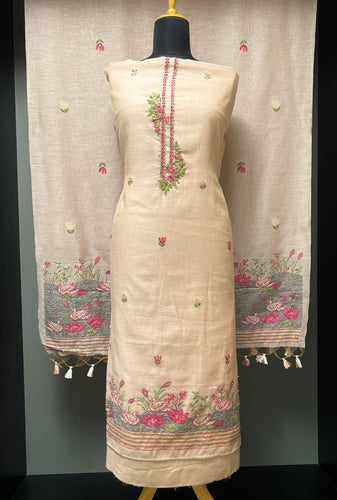 Jamdani Woven Chanderi-Linen Finish Unstitched Salwar Set | SSN469