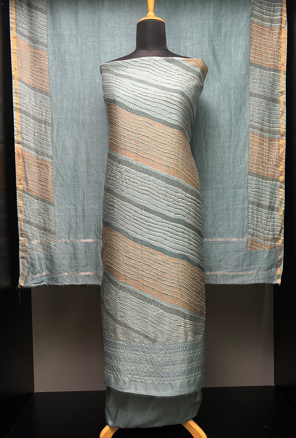 Jamdani Woven Chanderi-Linen Finish Unstitched Salwar Set | SSN464