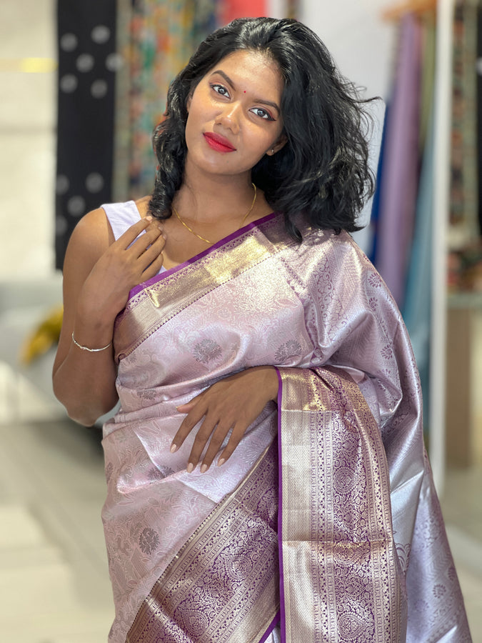 Silver and Golden Zari Woven Semi Banarasi Saree | NN451