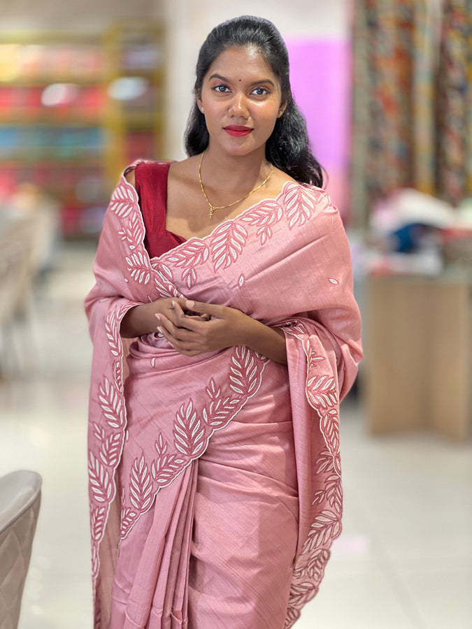 Floral Embroidery Detailed Linen-Cotton Saree | BLD1947