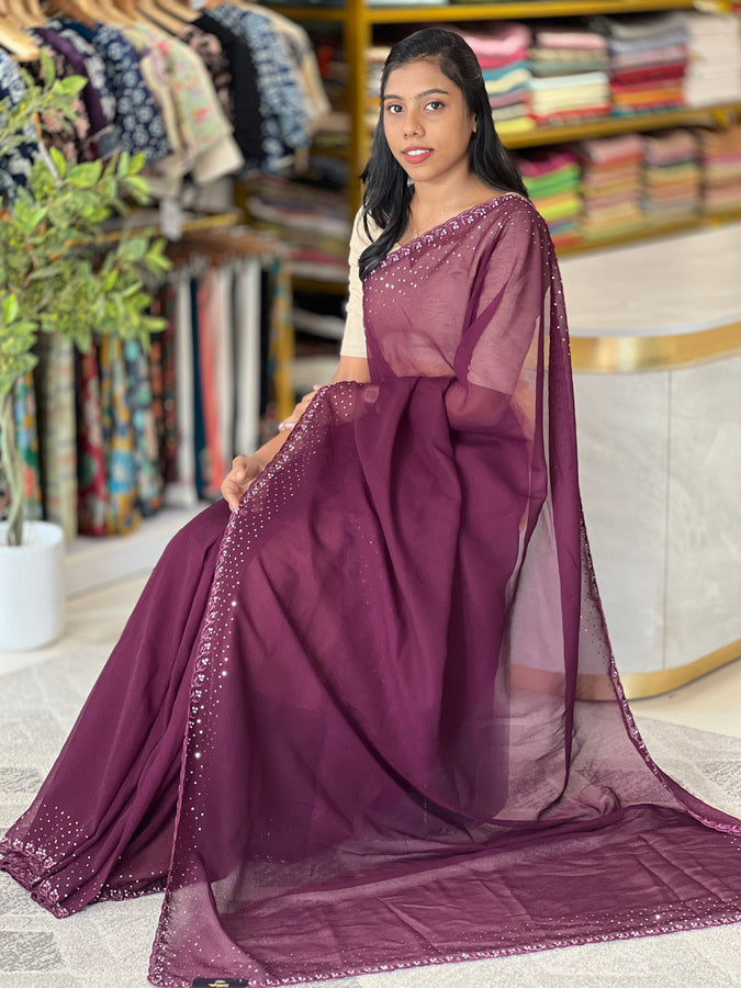 Hand Embroidery Detailed Shimmer Georgette Saree | BLD2056