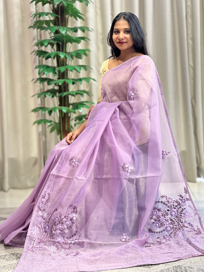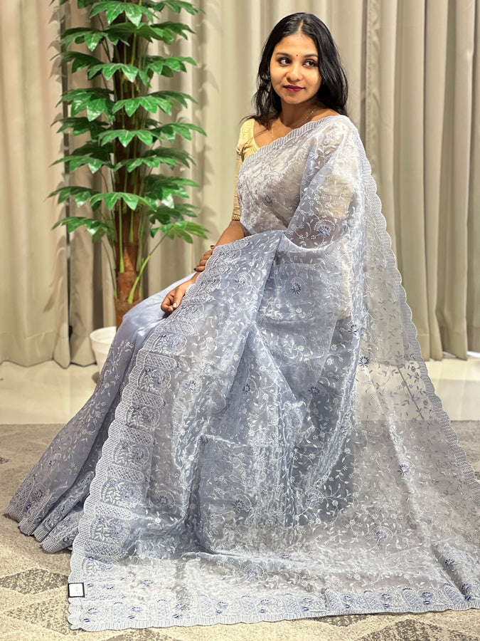 Floral Machine Embroidery Shimmer Organza Saree | BLD2067