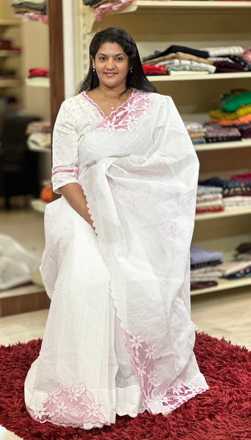 Floral Embroidery Detailed Linen-Cotton Saree | BLD1948