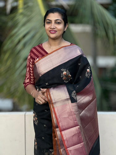 Floral Cross Stitch Embroidery Crushed Organza Saree | RGD978R