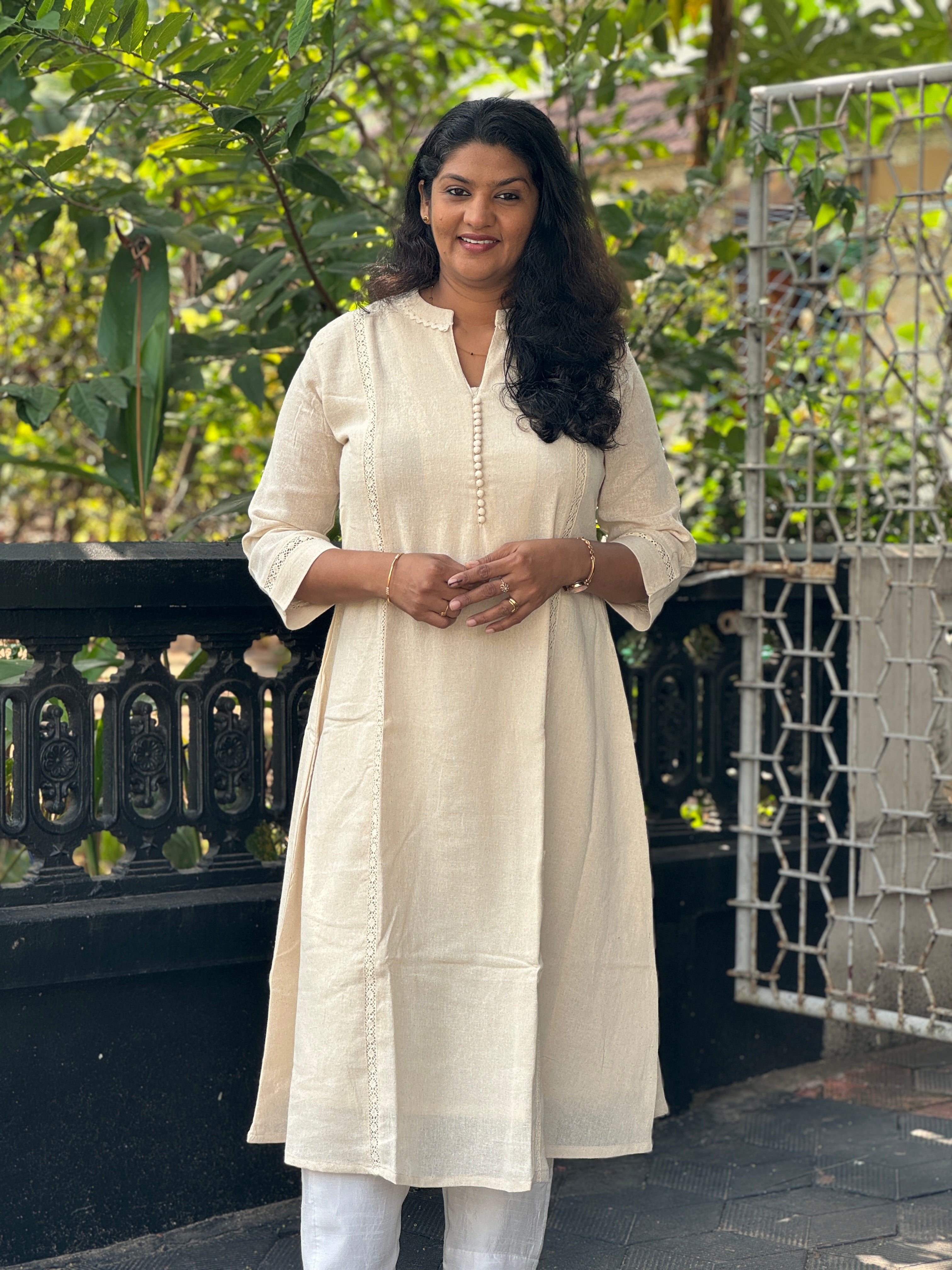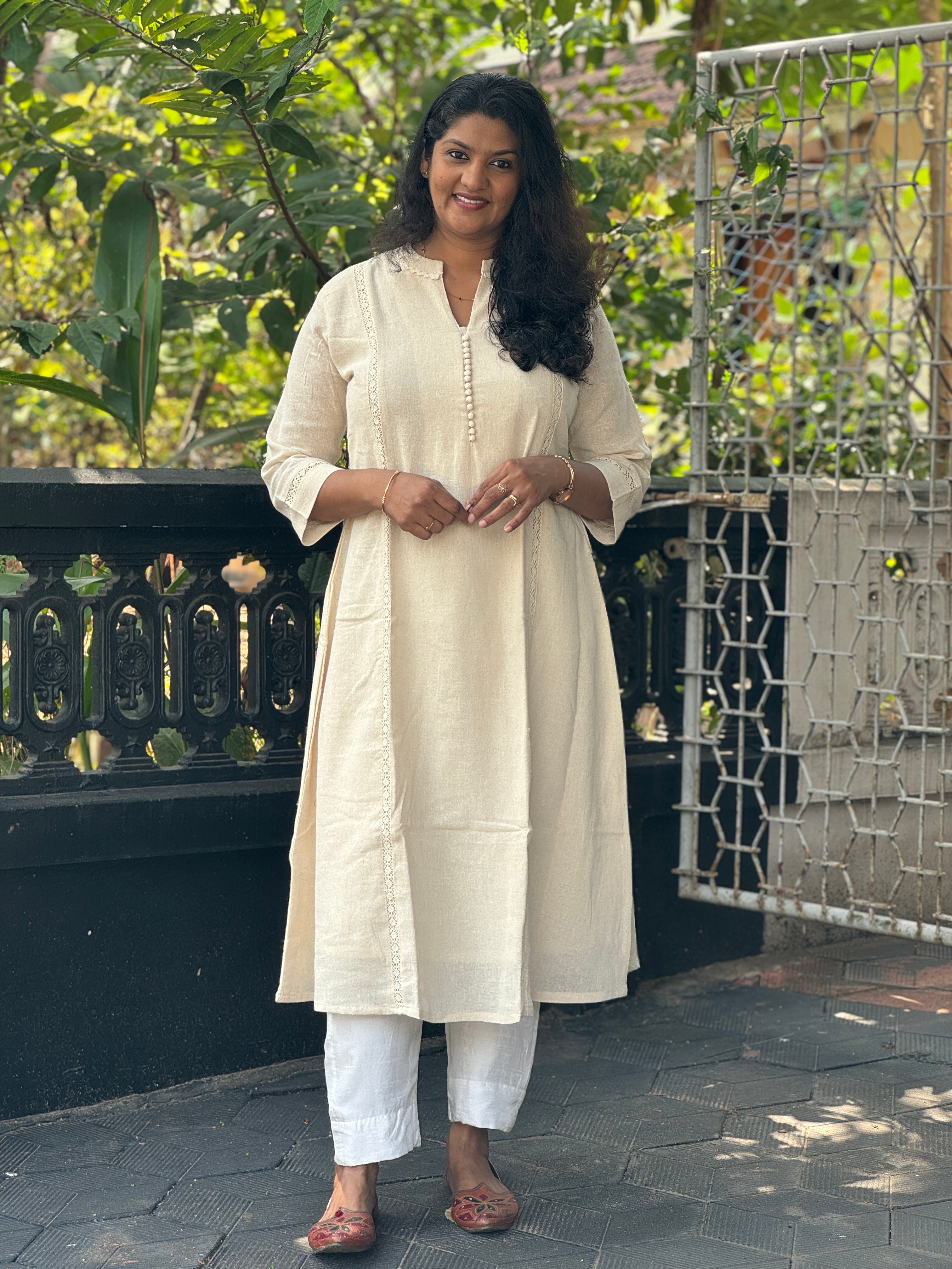 - Style: A-Line Pattern ,Crochet Lace Details, Potil Button Neck Design