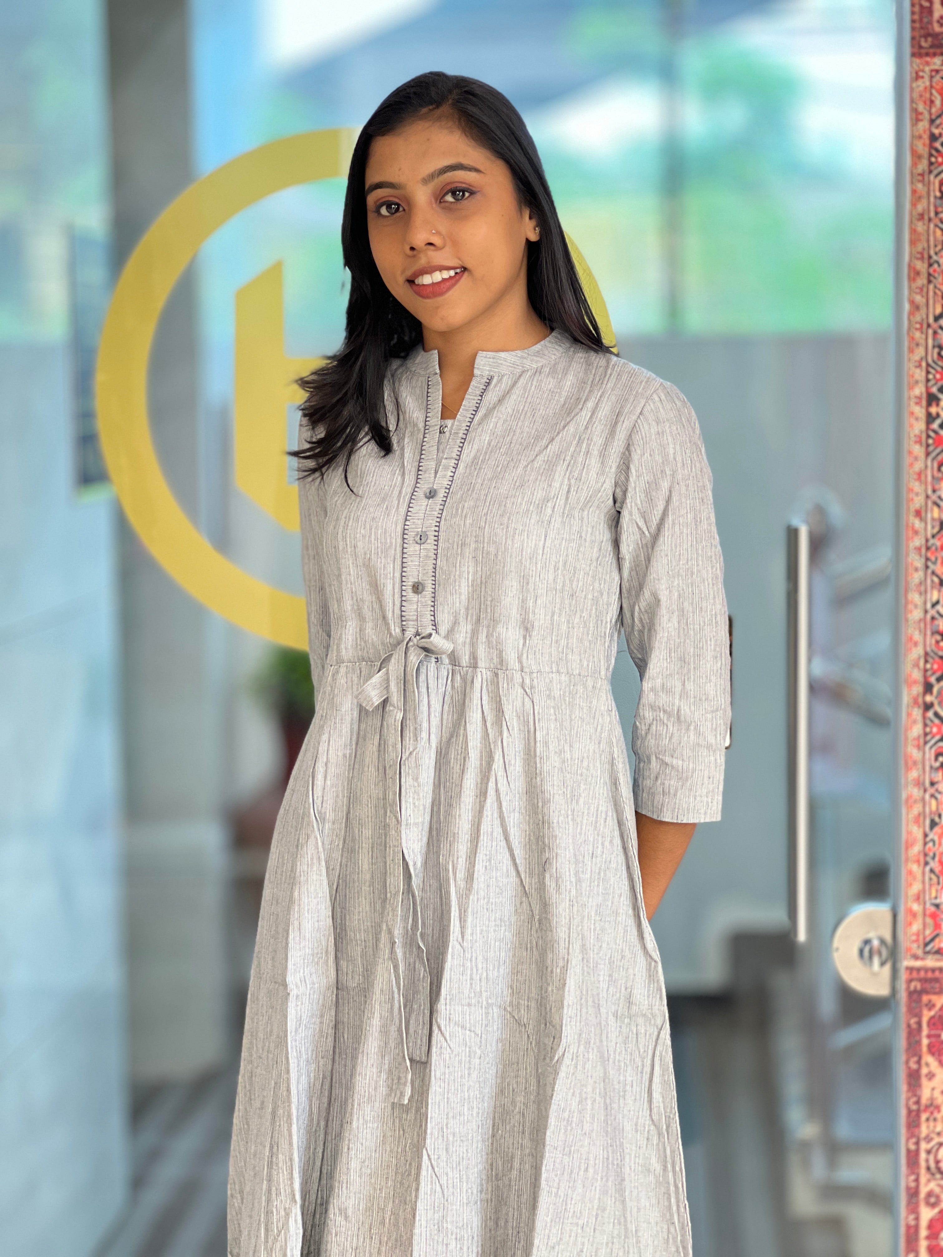 - Style: Button Hole Stitch & Button Detailed Yoke, Gathering Detailing, Tie-Up Detailing, A-Line Pattern