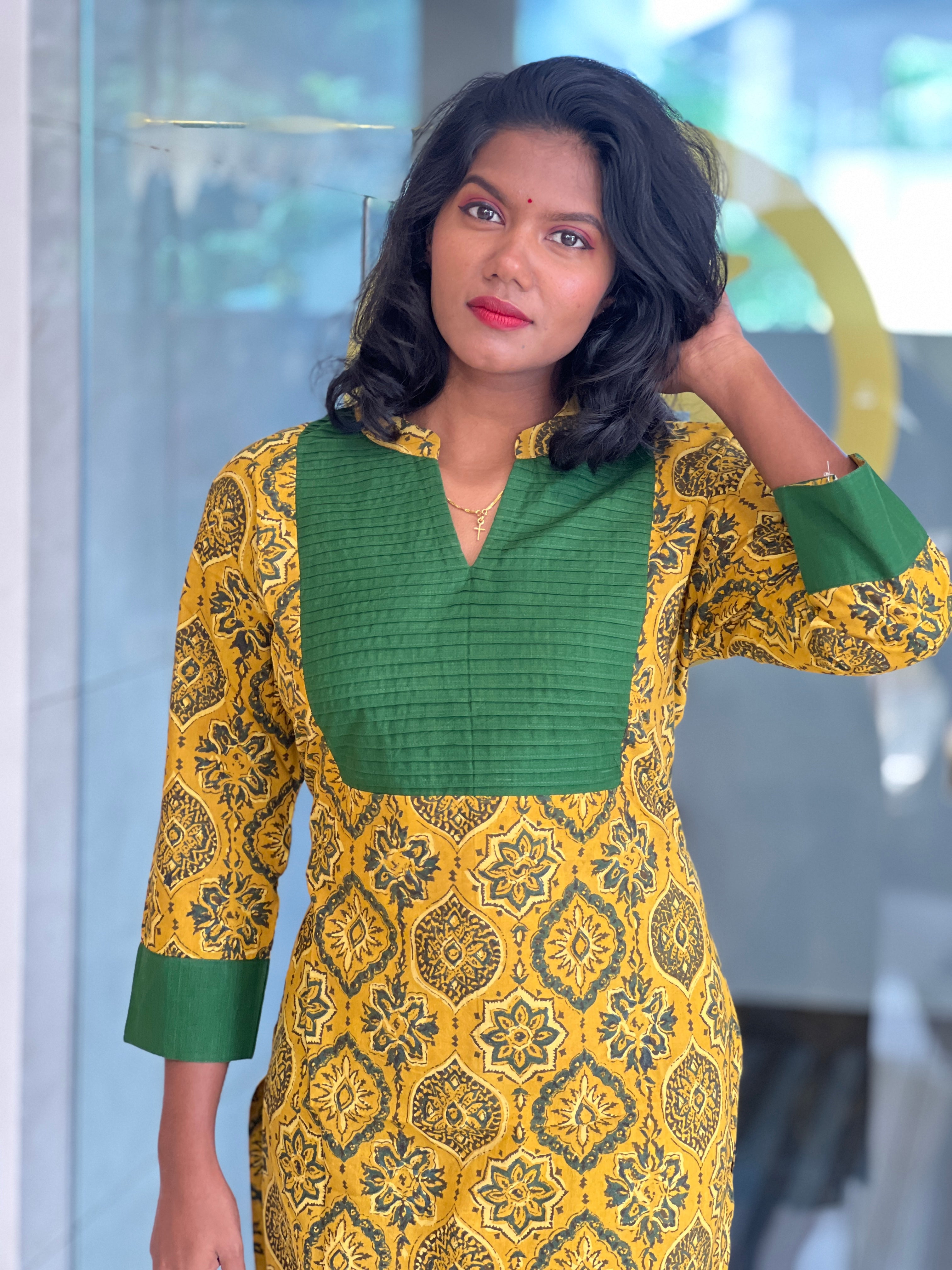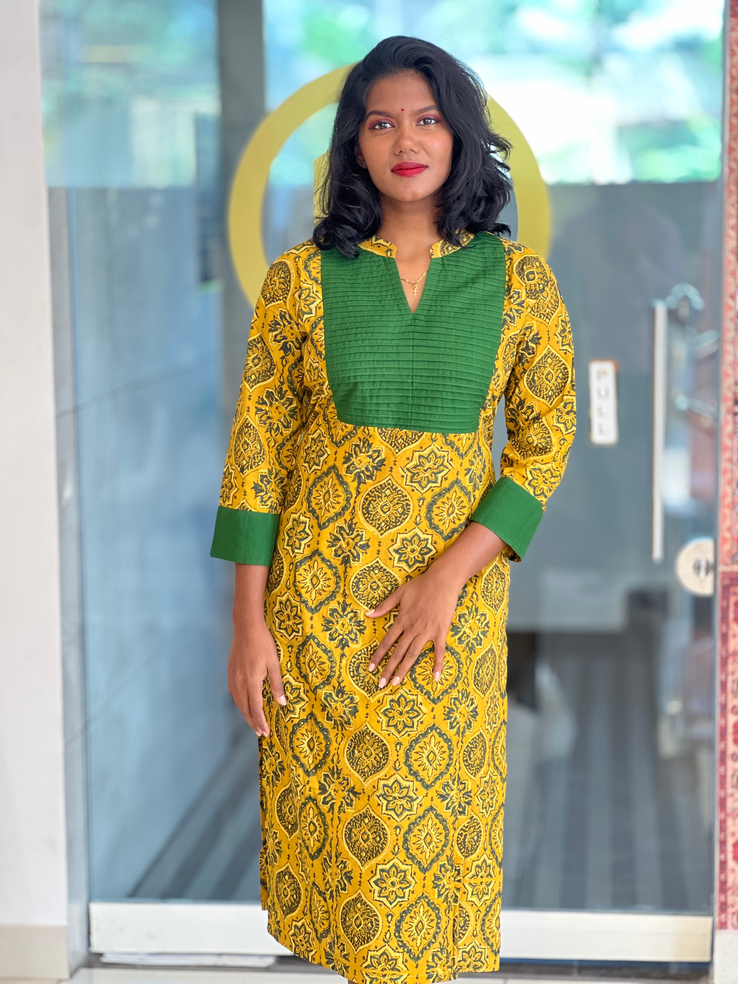 - Style: Ajrak Inspired Printed, Pin Tuck Detailed Yoke