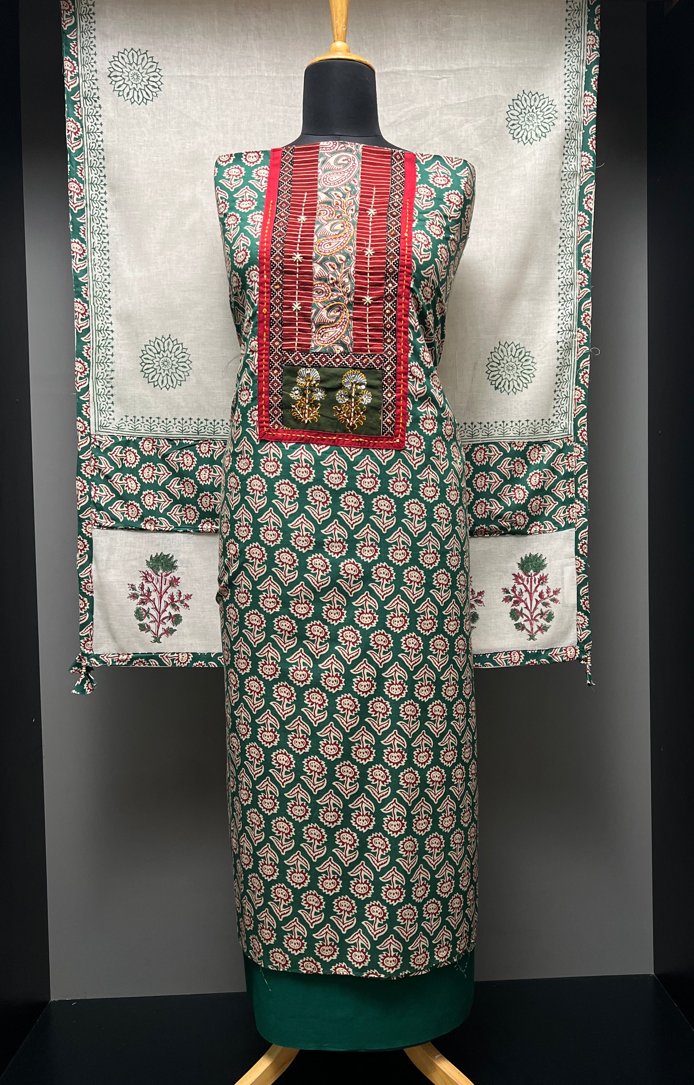 - Style: Ajrak Printed, Printed Patch Detailed Yoke Portion With Hand Embroidery Kantha & Sequence Highlighted