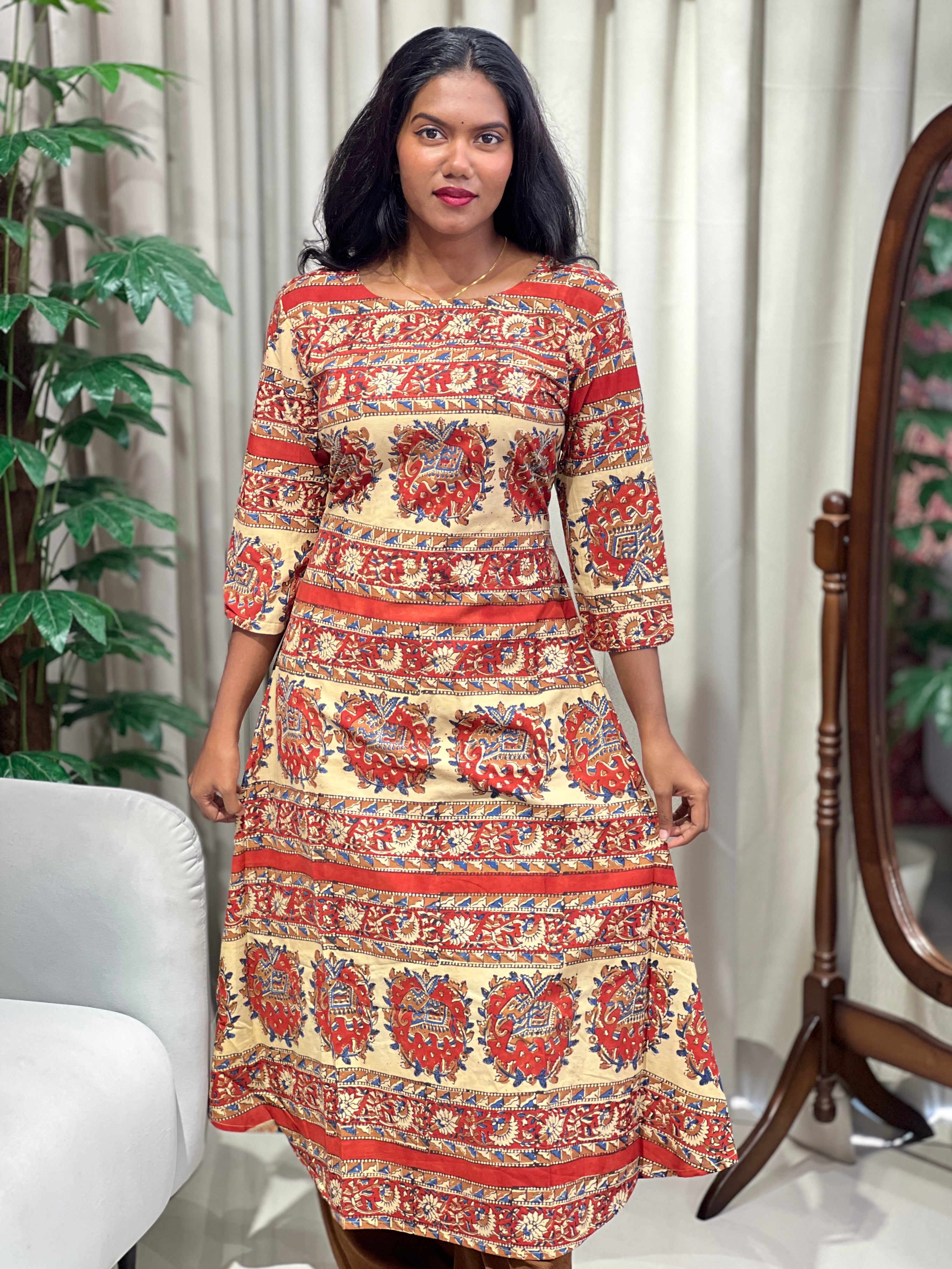- Style: Ajrakh Printed, A-Line, Without Lining
