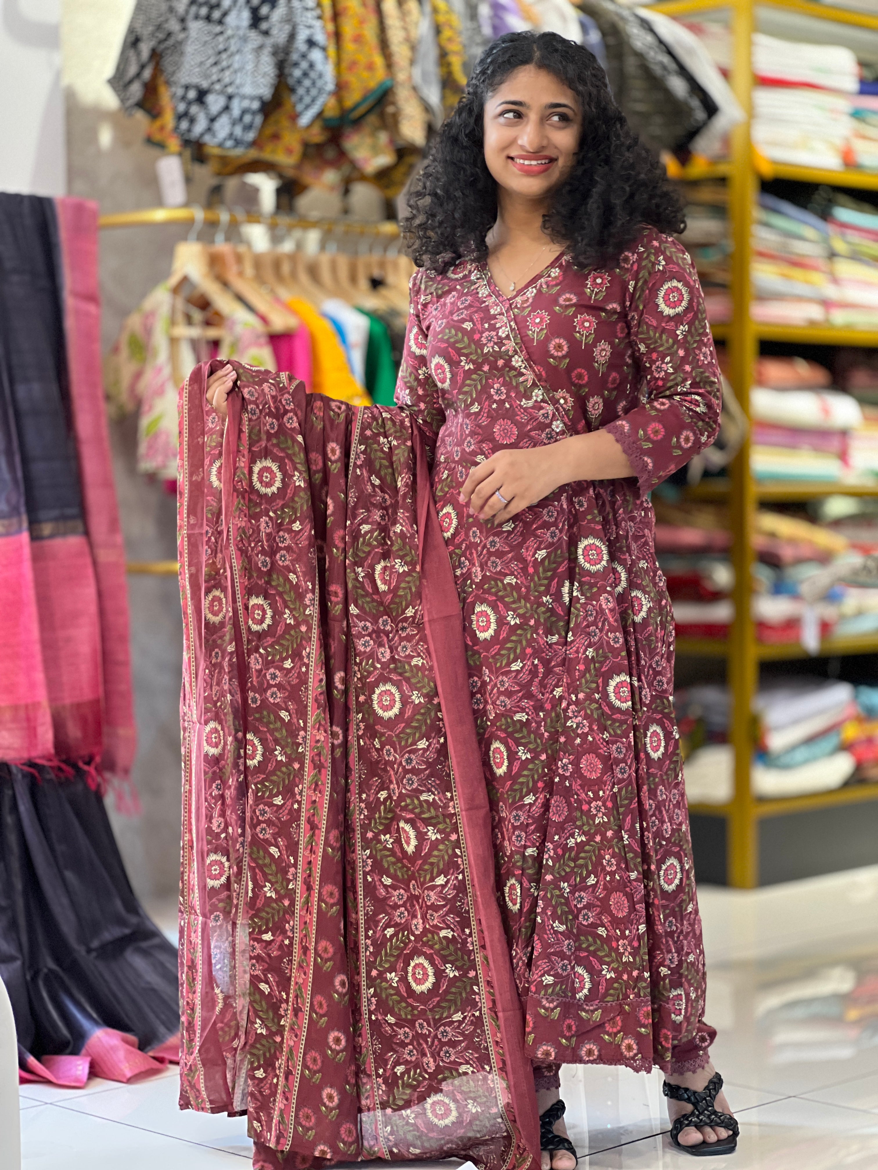 - Style: Floral Printed Angrakha Pattern With Embroidery Detailed