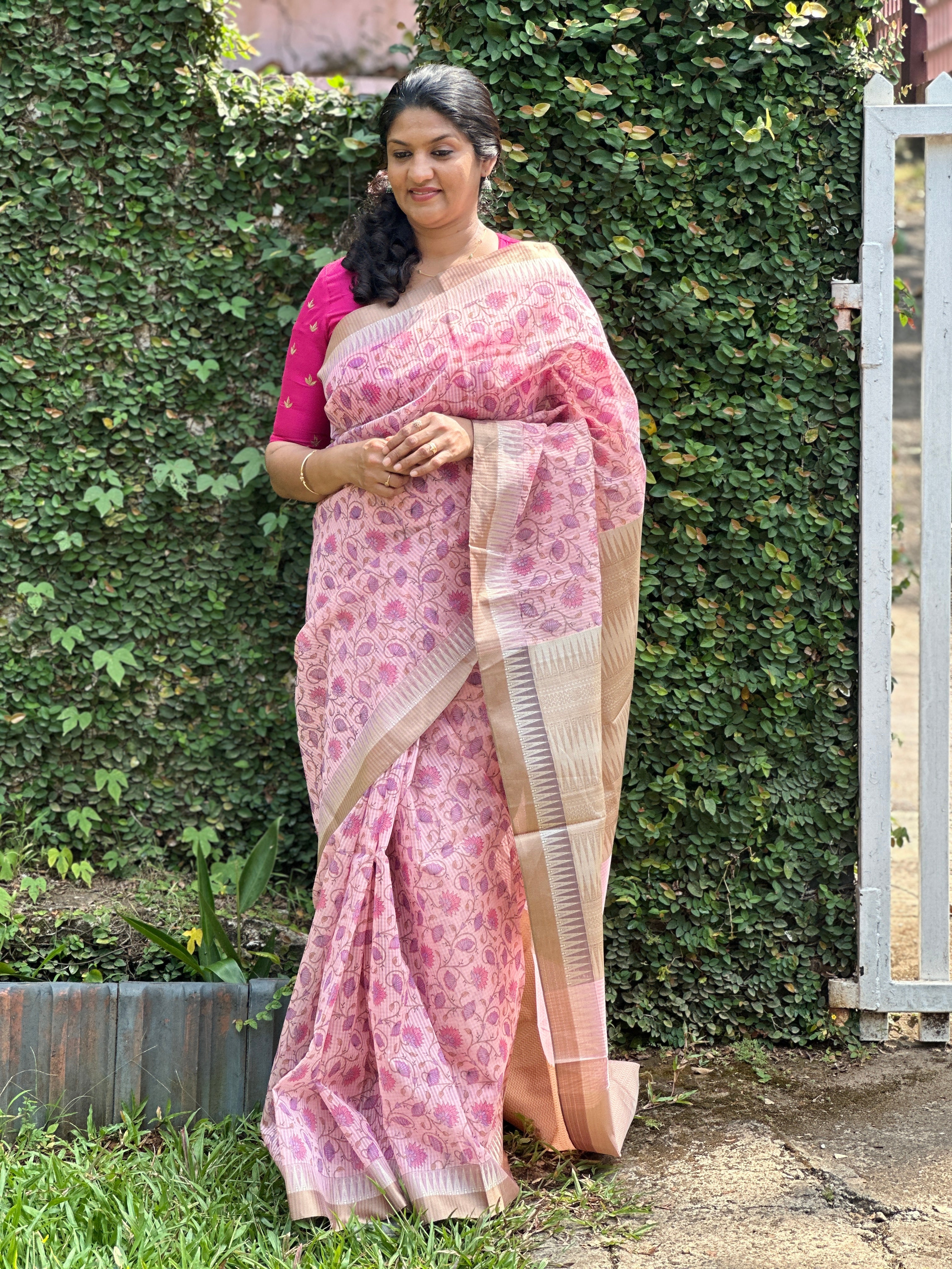 - Style: Floral Jaal Screen Printed, Antique Copper Thread Weaving Border Design