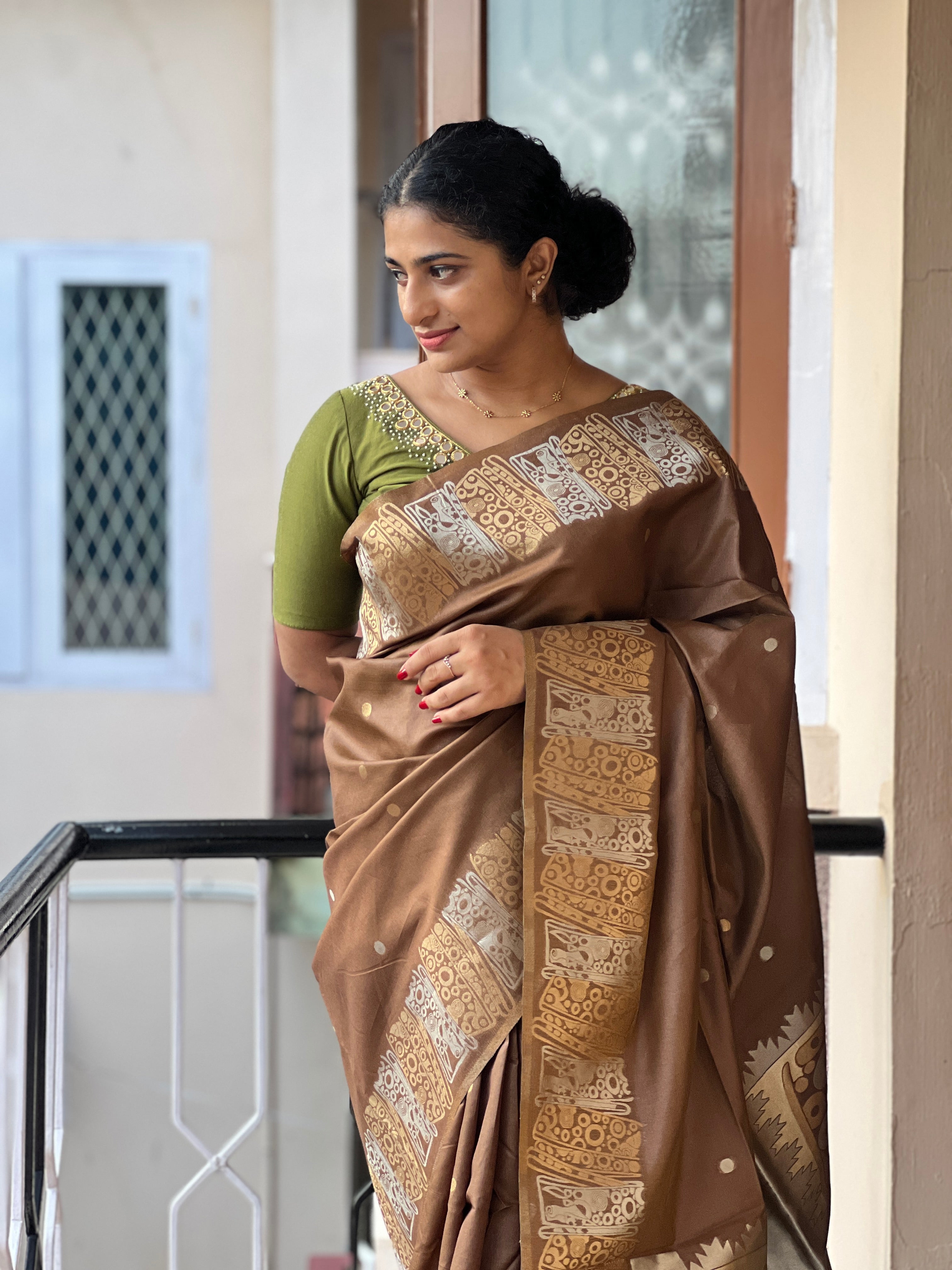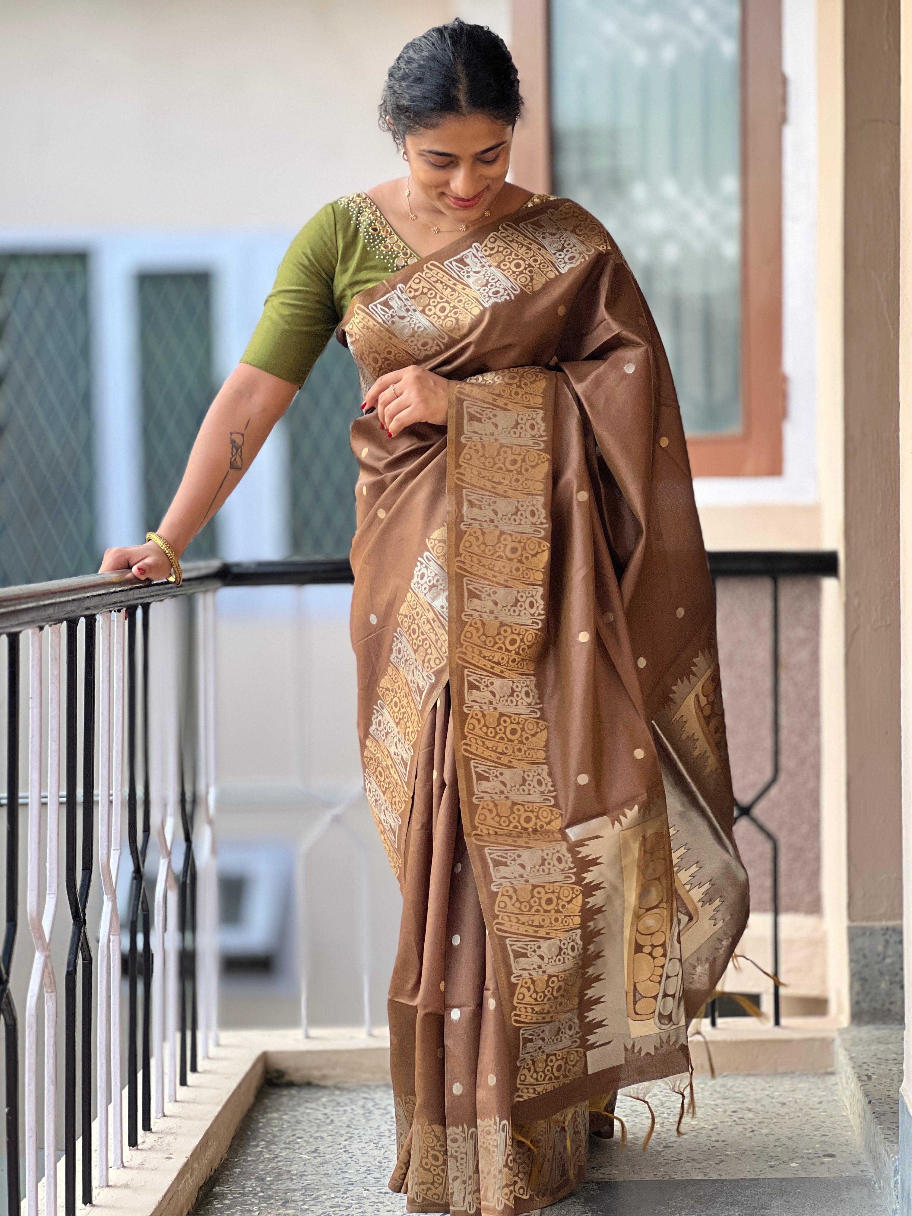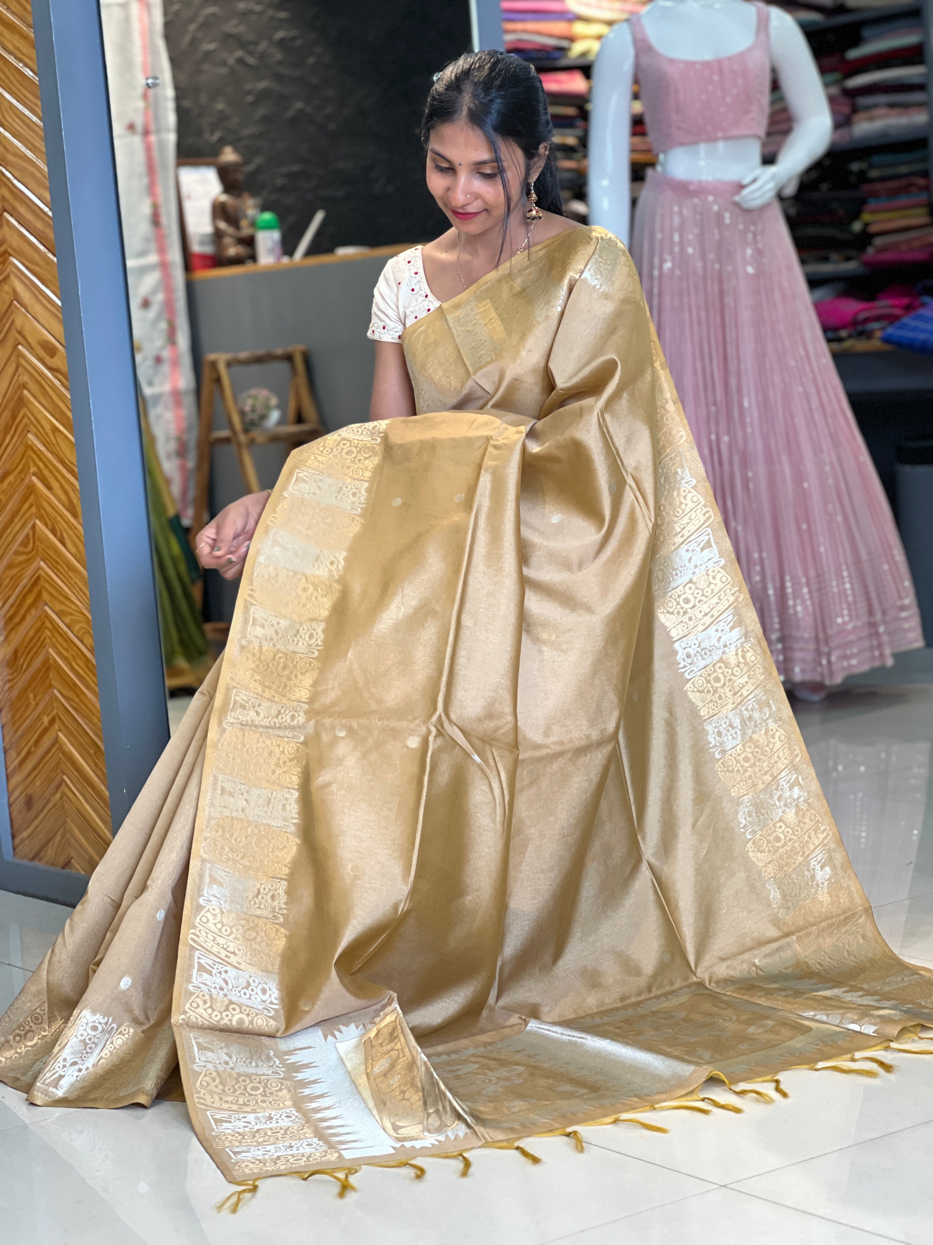 - Style: Antique Golden And Silver Zari Weaving Pattern, Geometrical Design