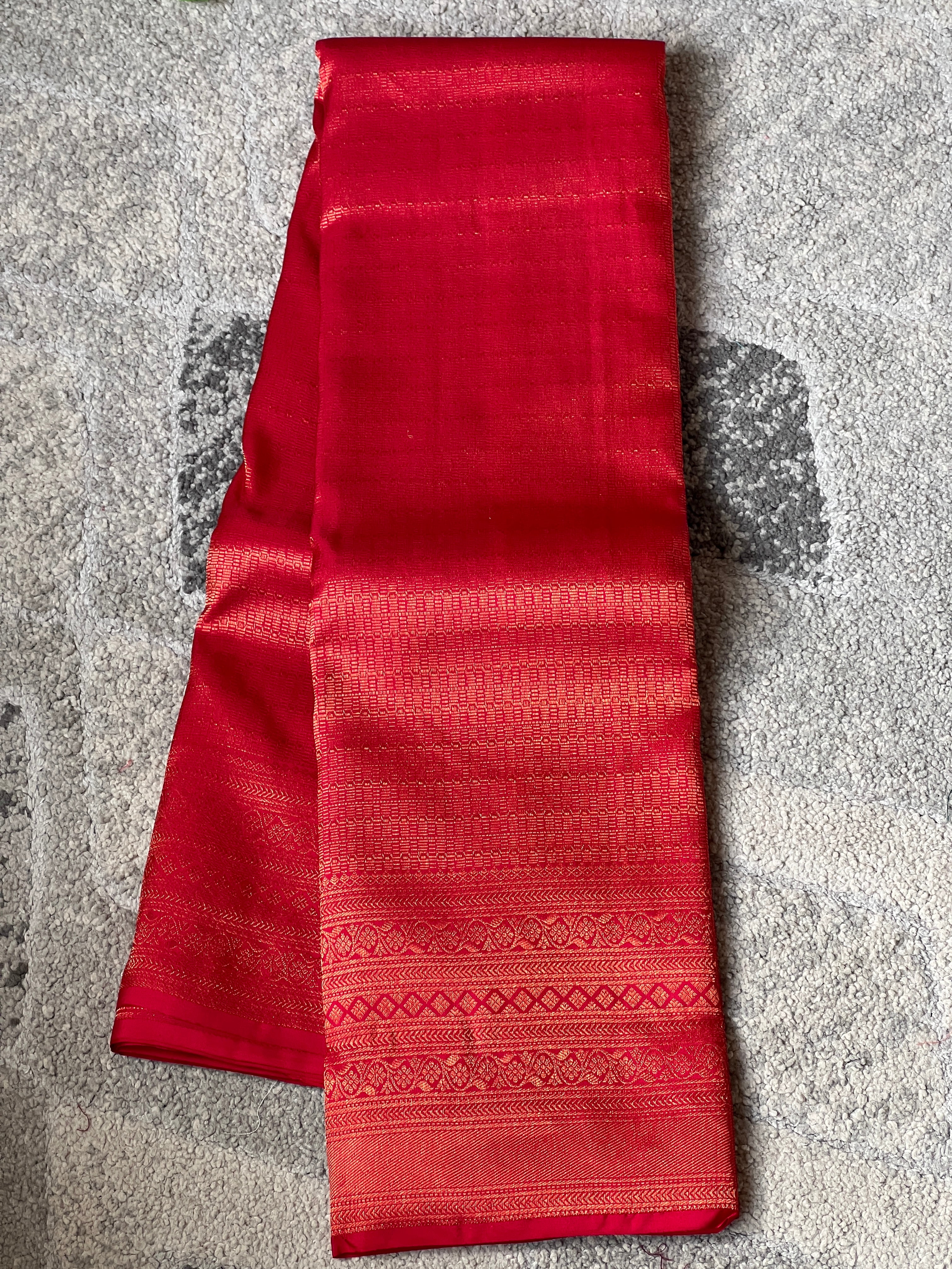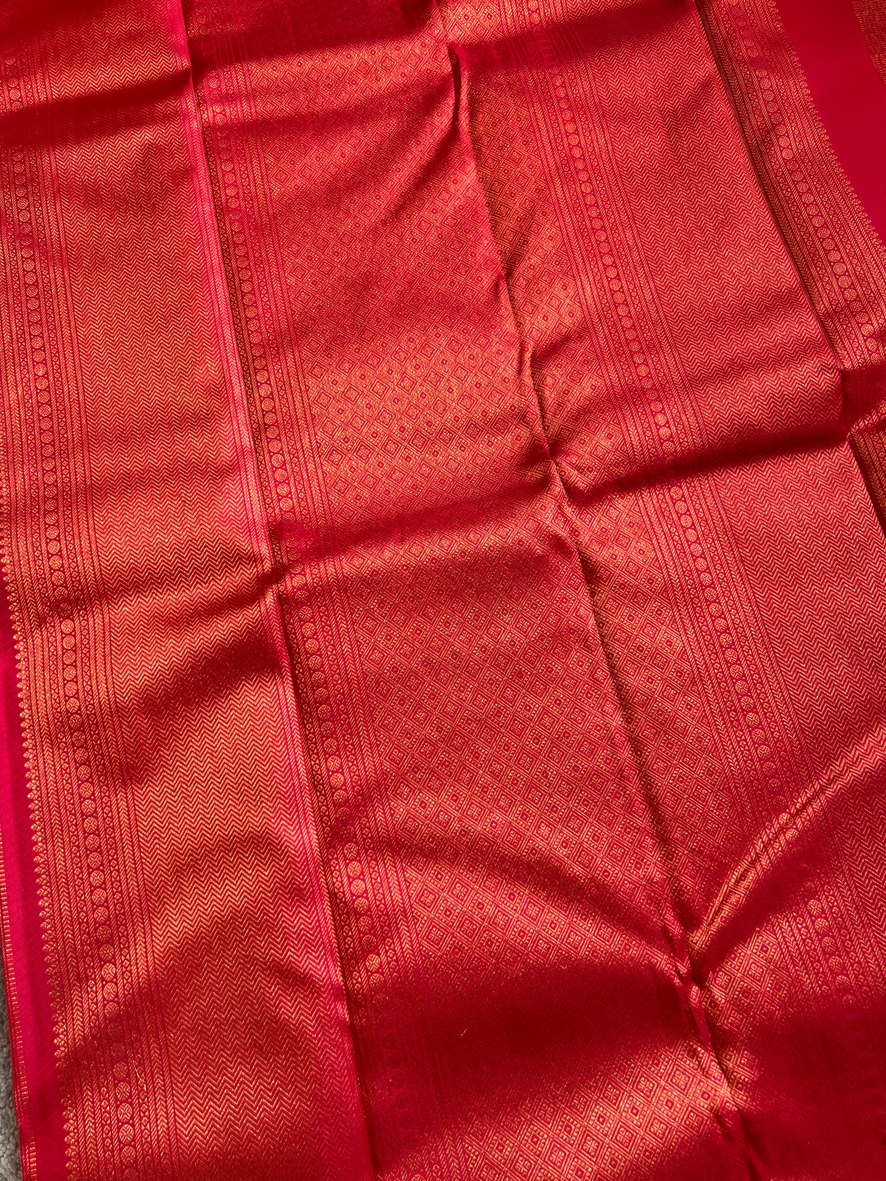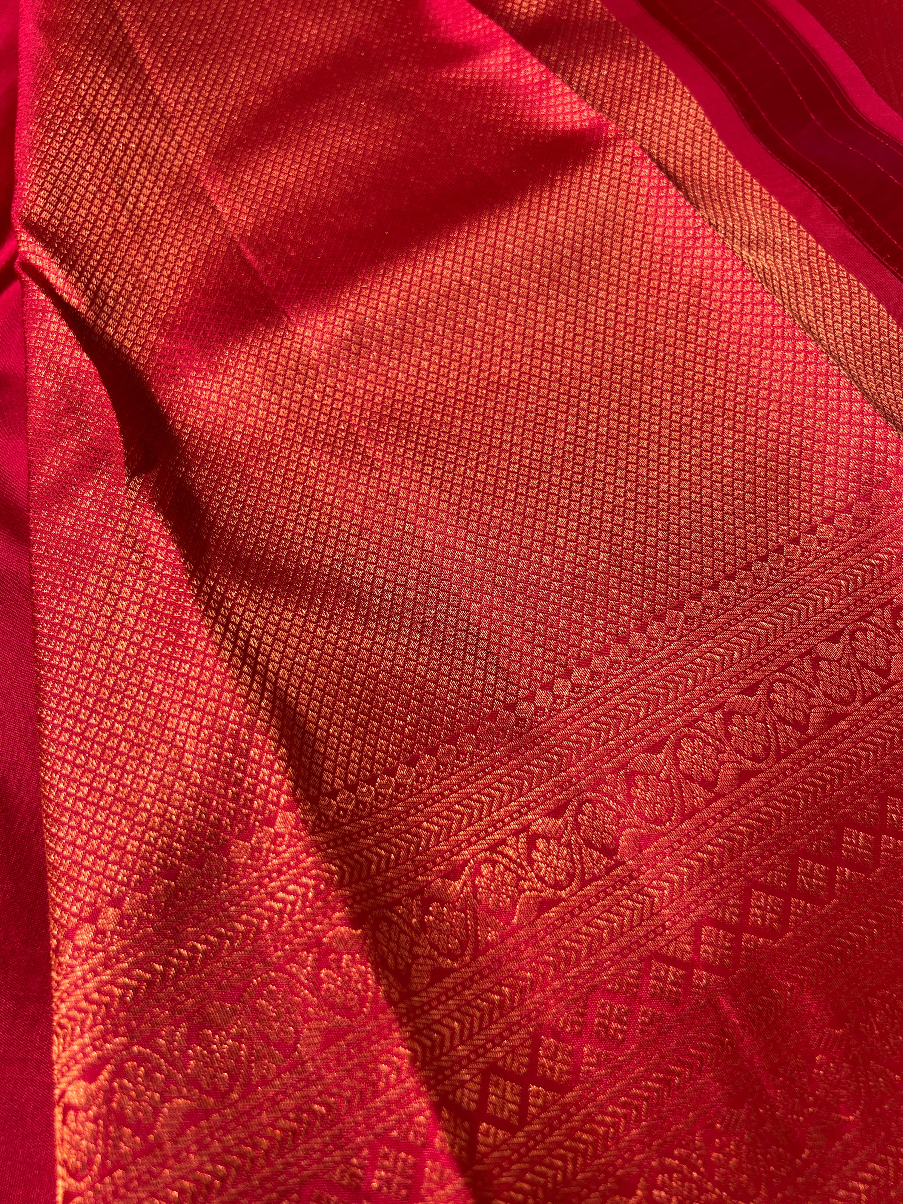 - Style: Antique Golden Zari Woven, Handloom, Traditional Borders, Diamond With Diagonal Weaved Pallu