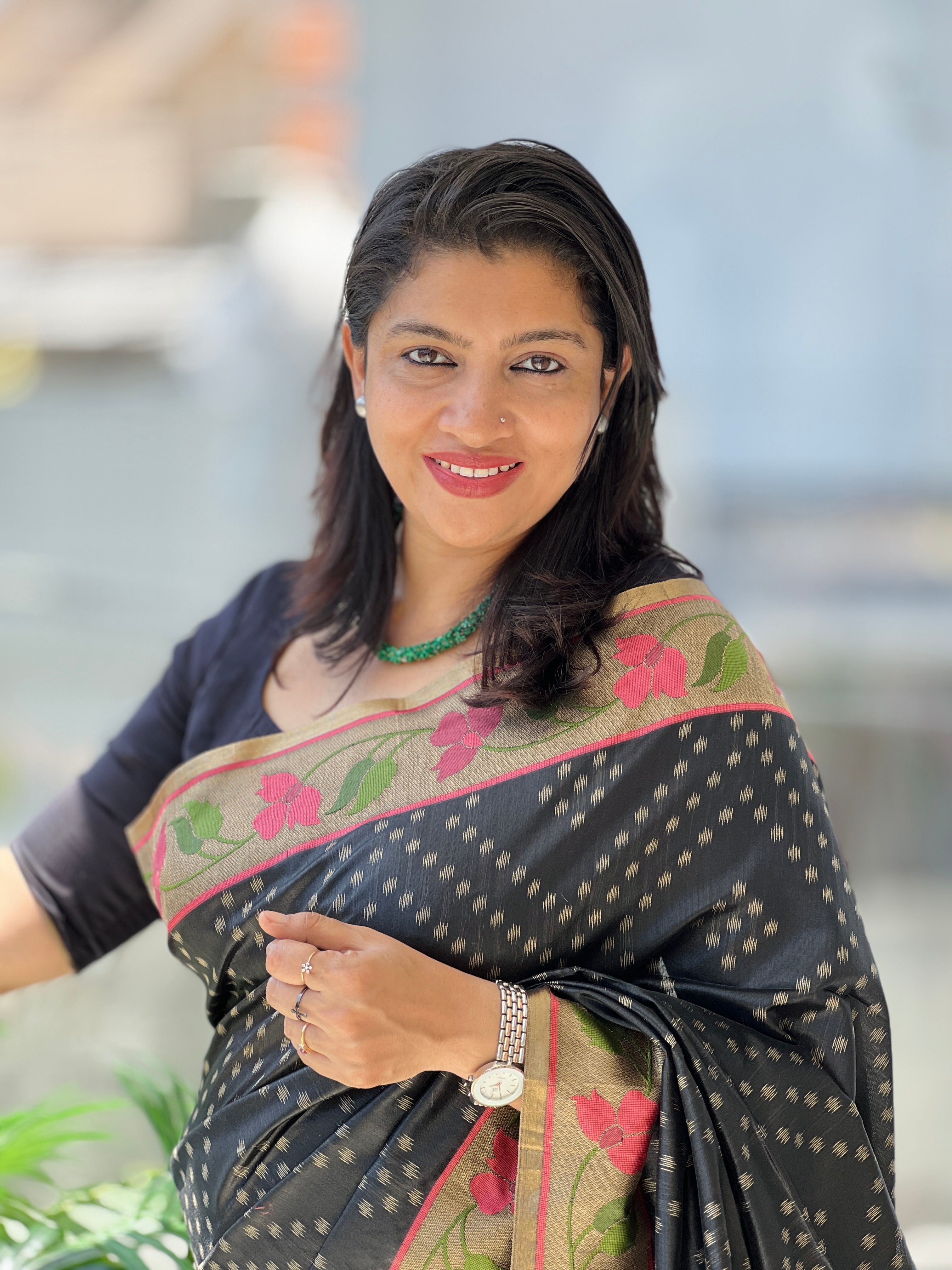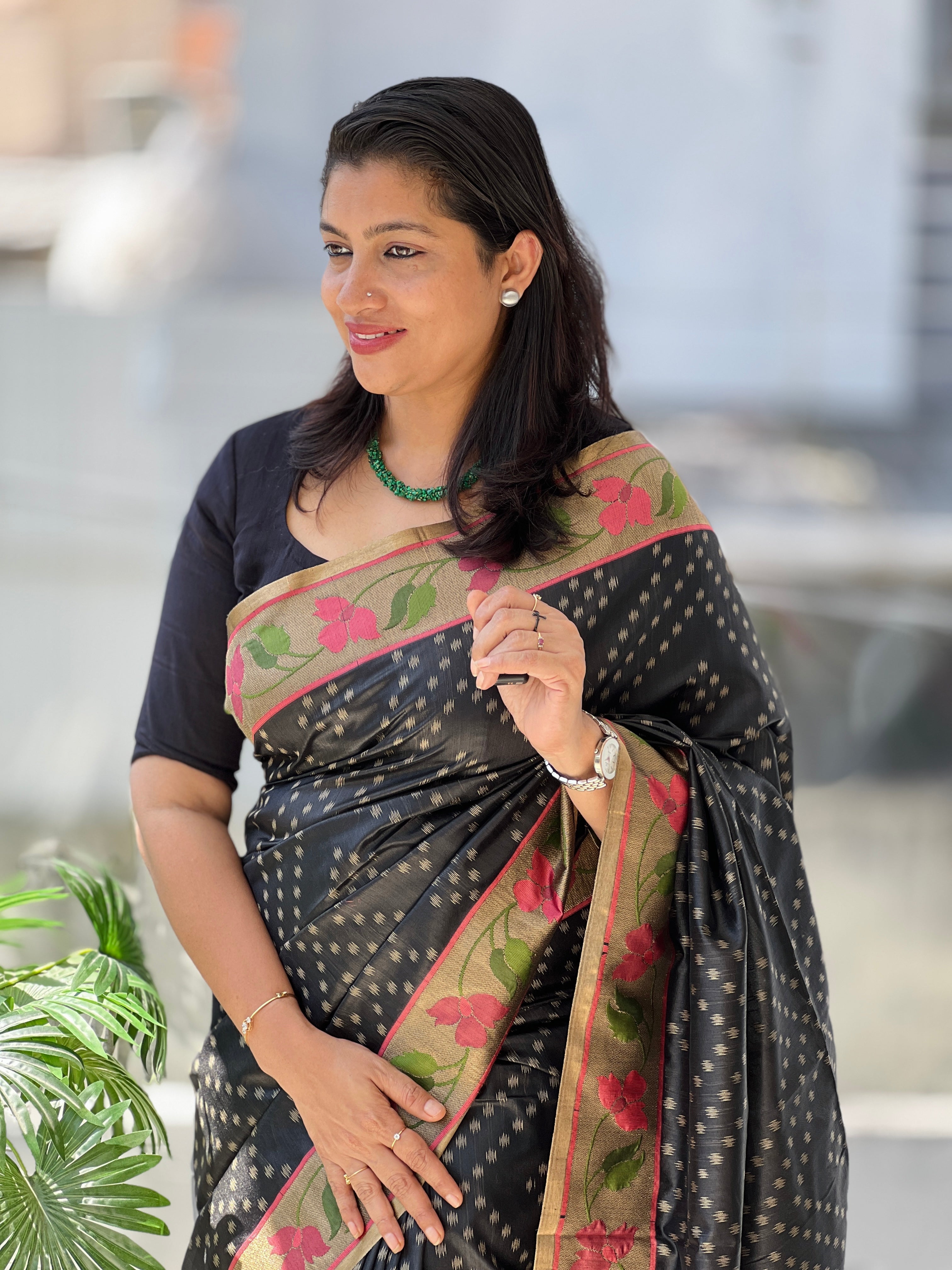 - Style: Antique Zari Weaved Geometric Pattern, Patola Inspired Floral Weaved Borders & Pallu, Zari Stripe Detailed Pallu,