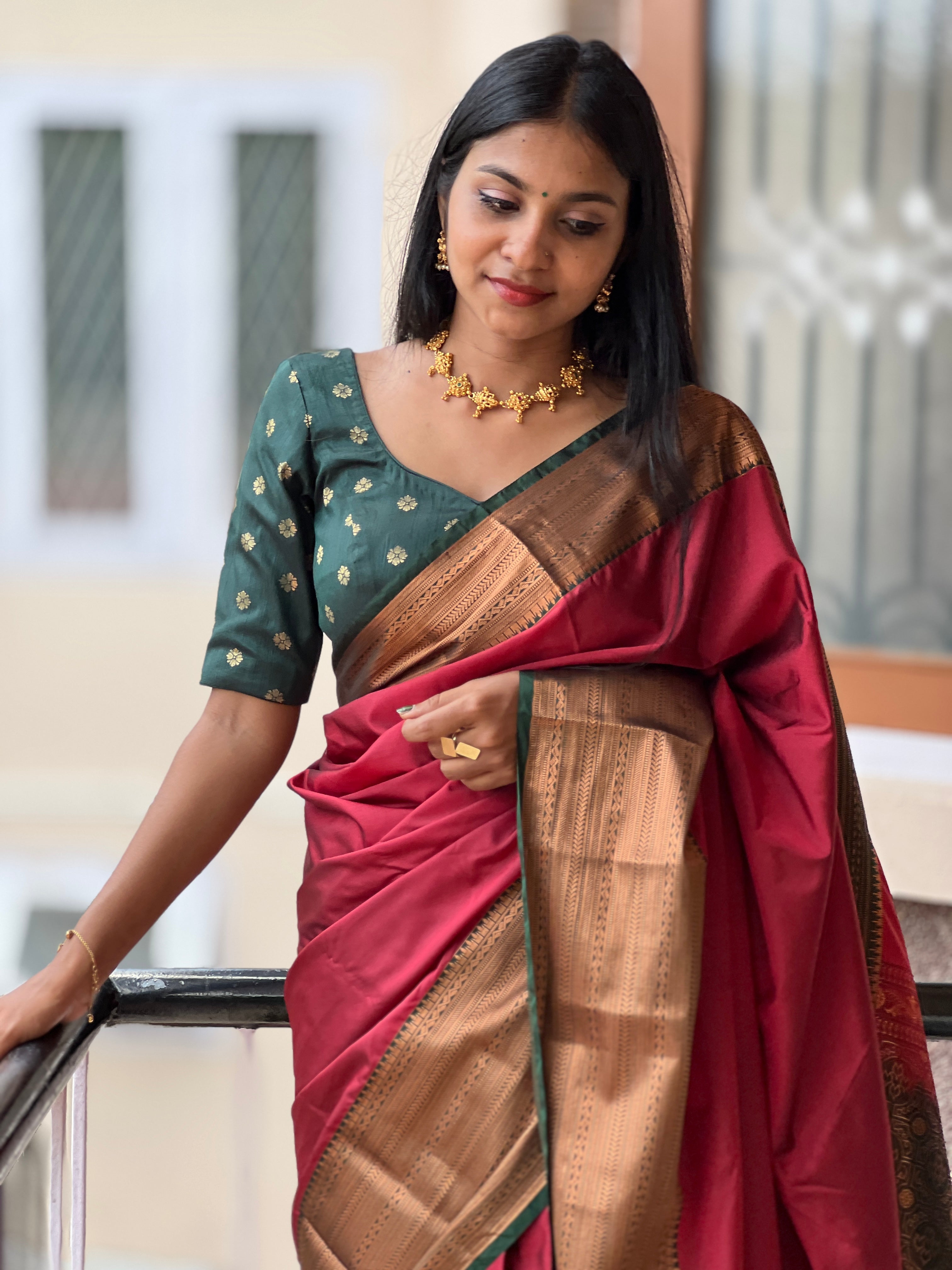 • Style:  Antique Zari Weaving, Contrast Border & Pallu