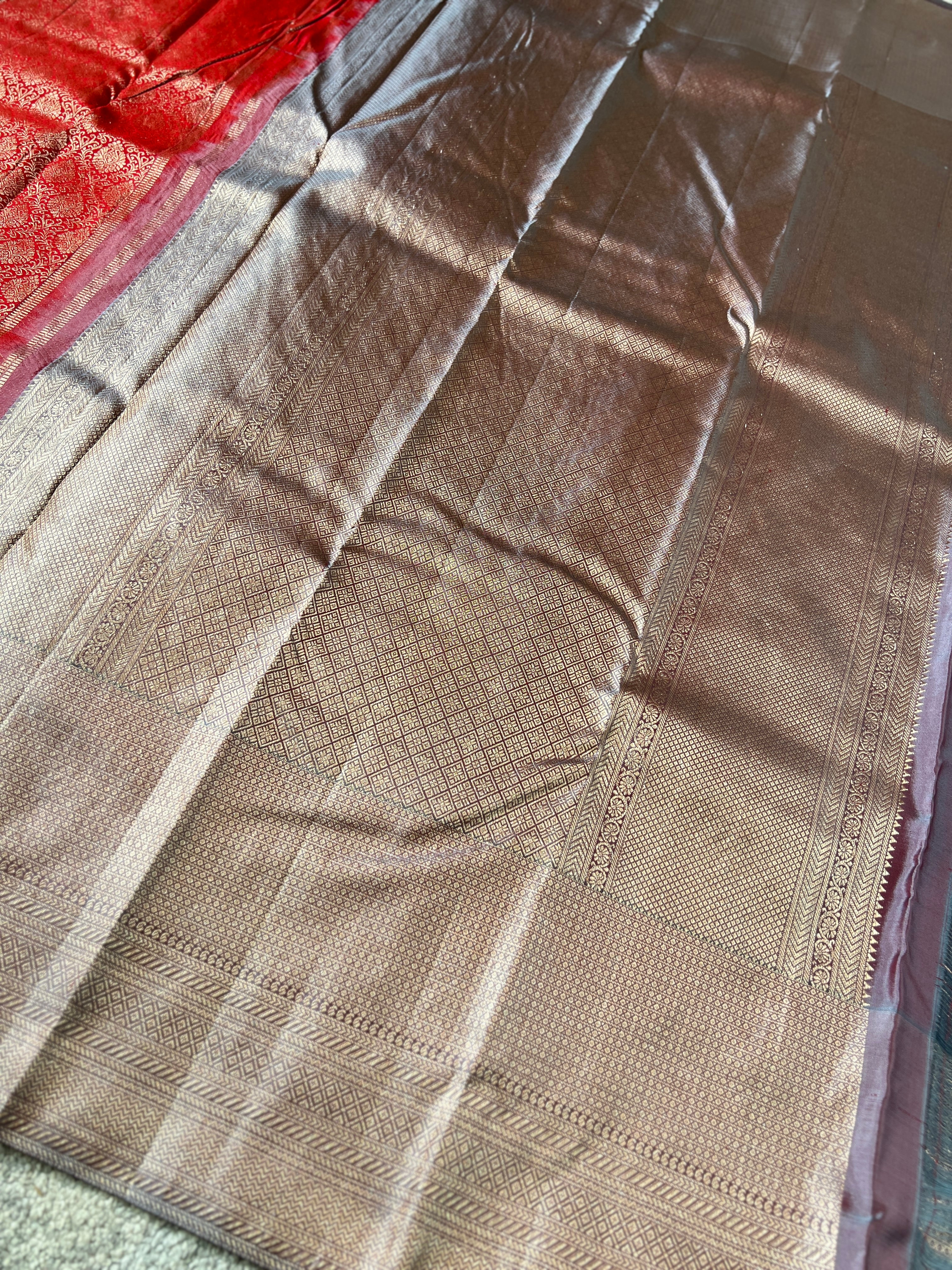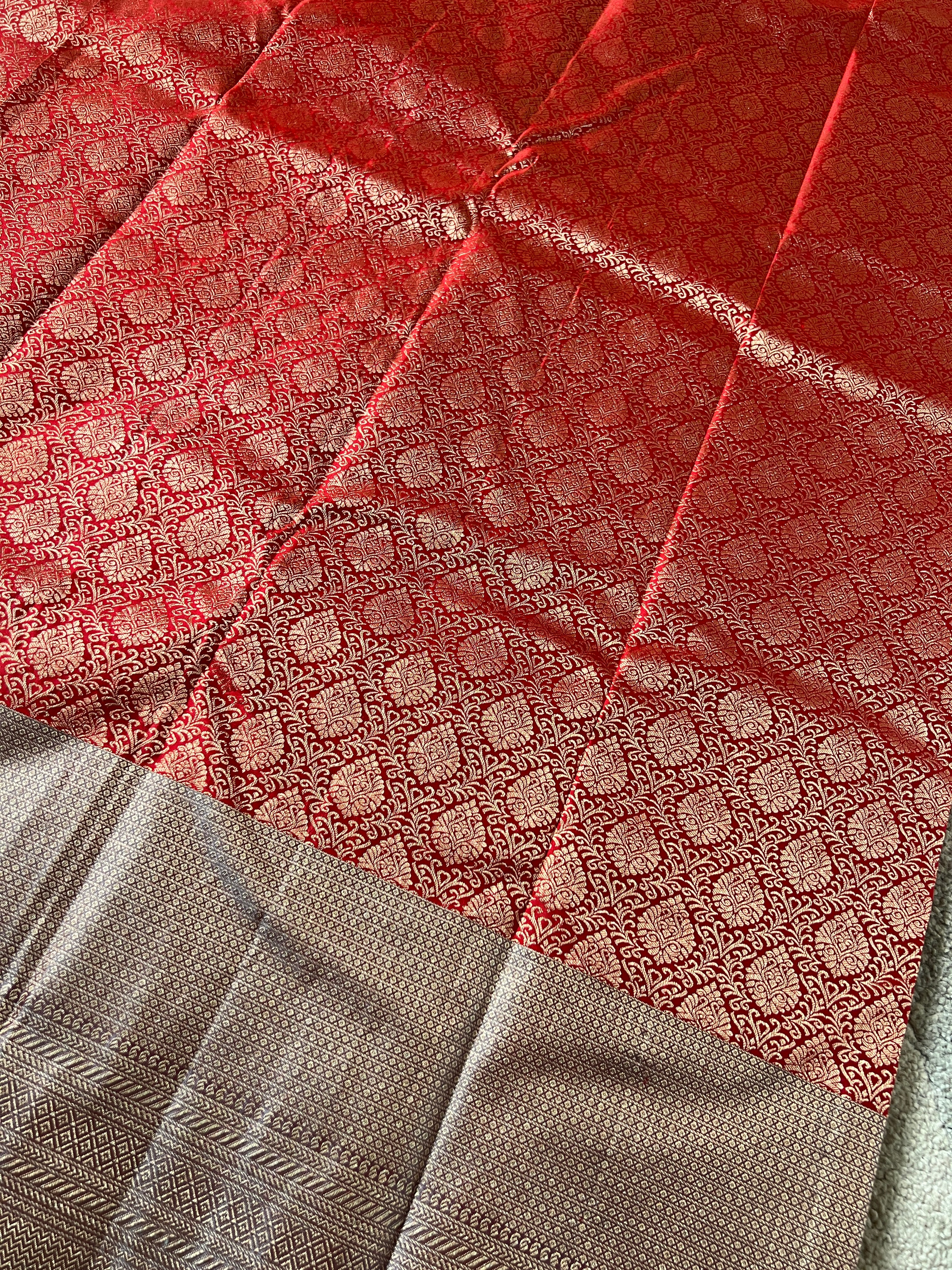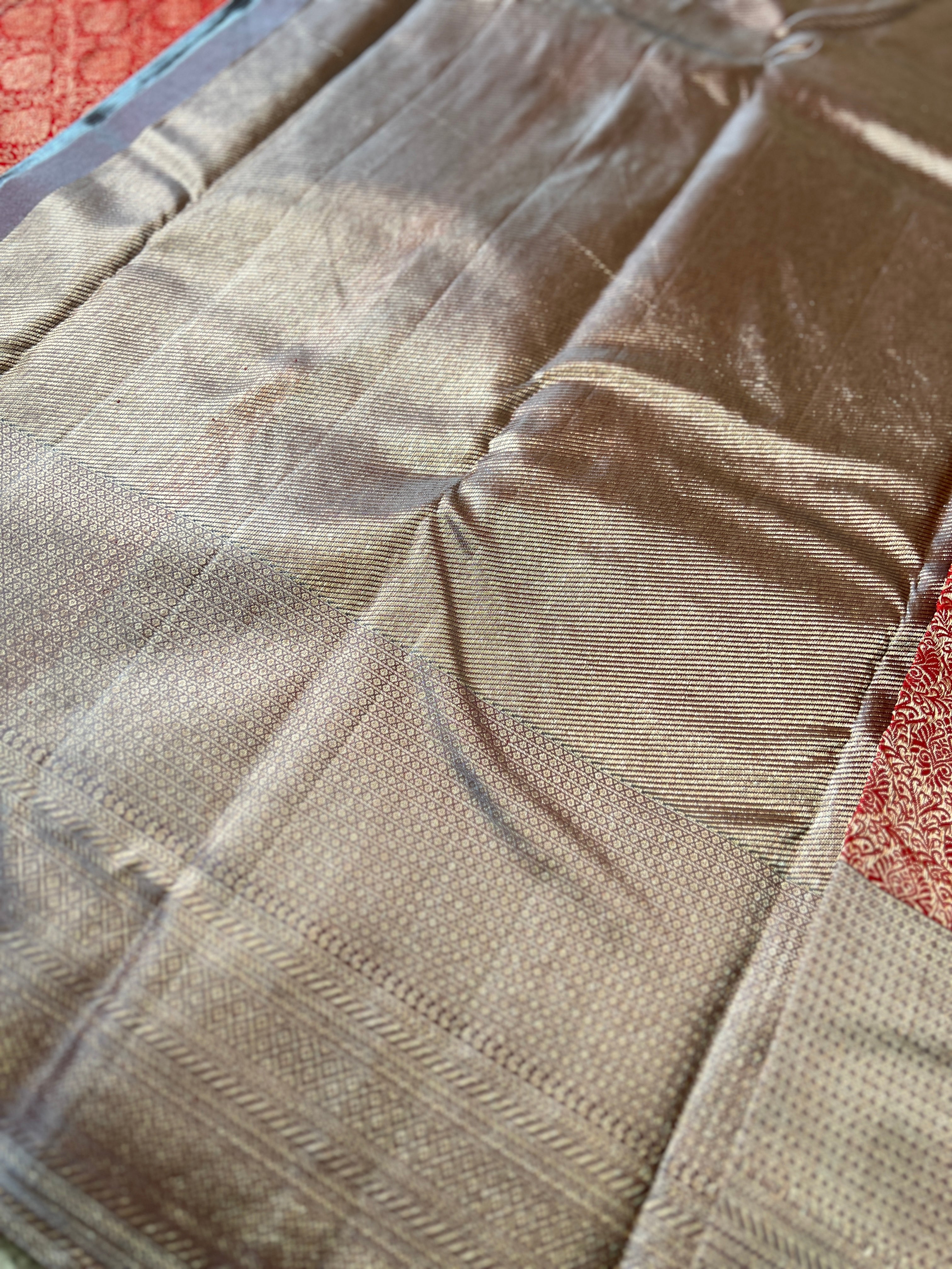 - Style: Handloom, Rich Pallu, Antique Golden Zari Woven, Traditional Floral Pattern