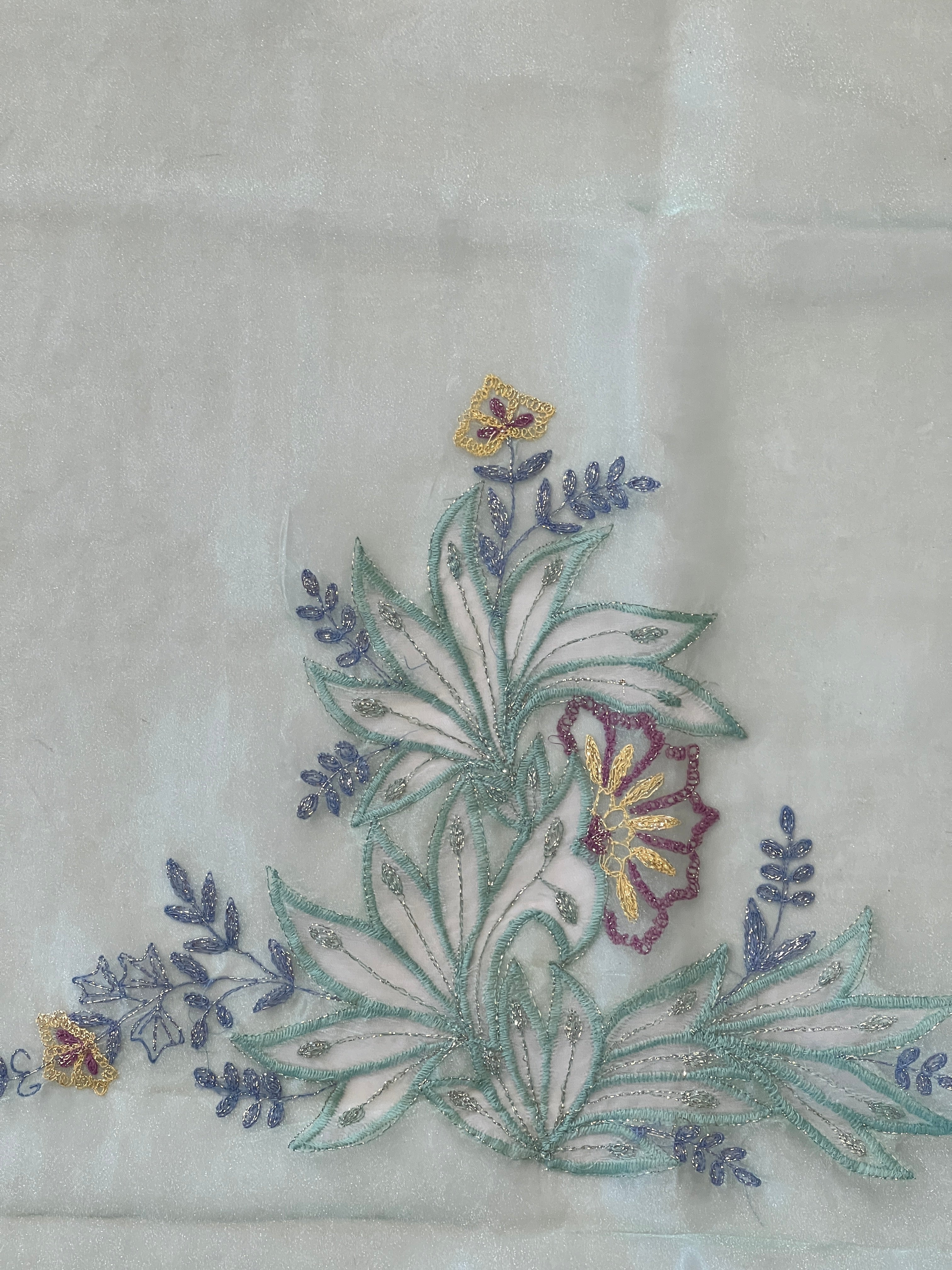 Applique Detailed Shimmer Organza Saree |  BLD1581