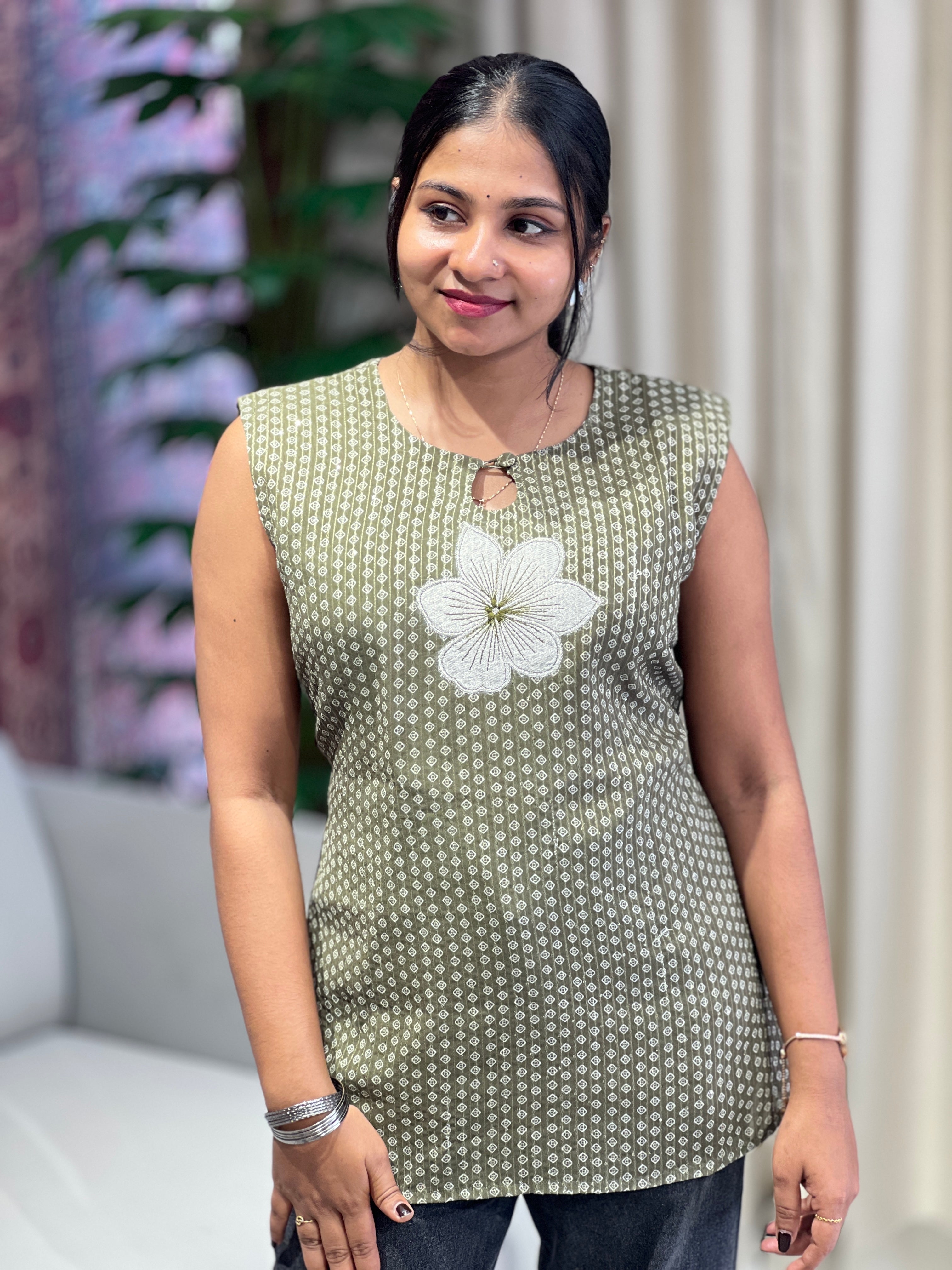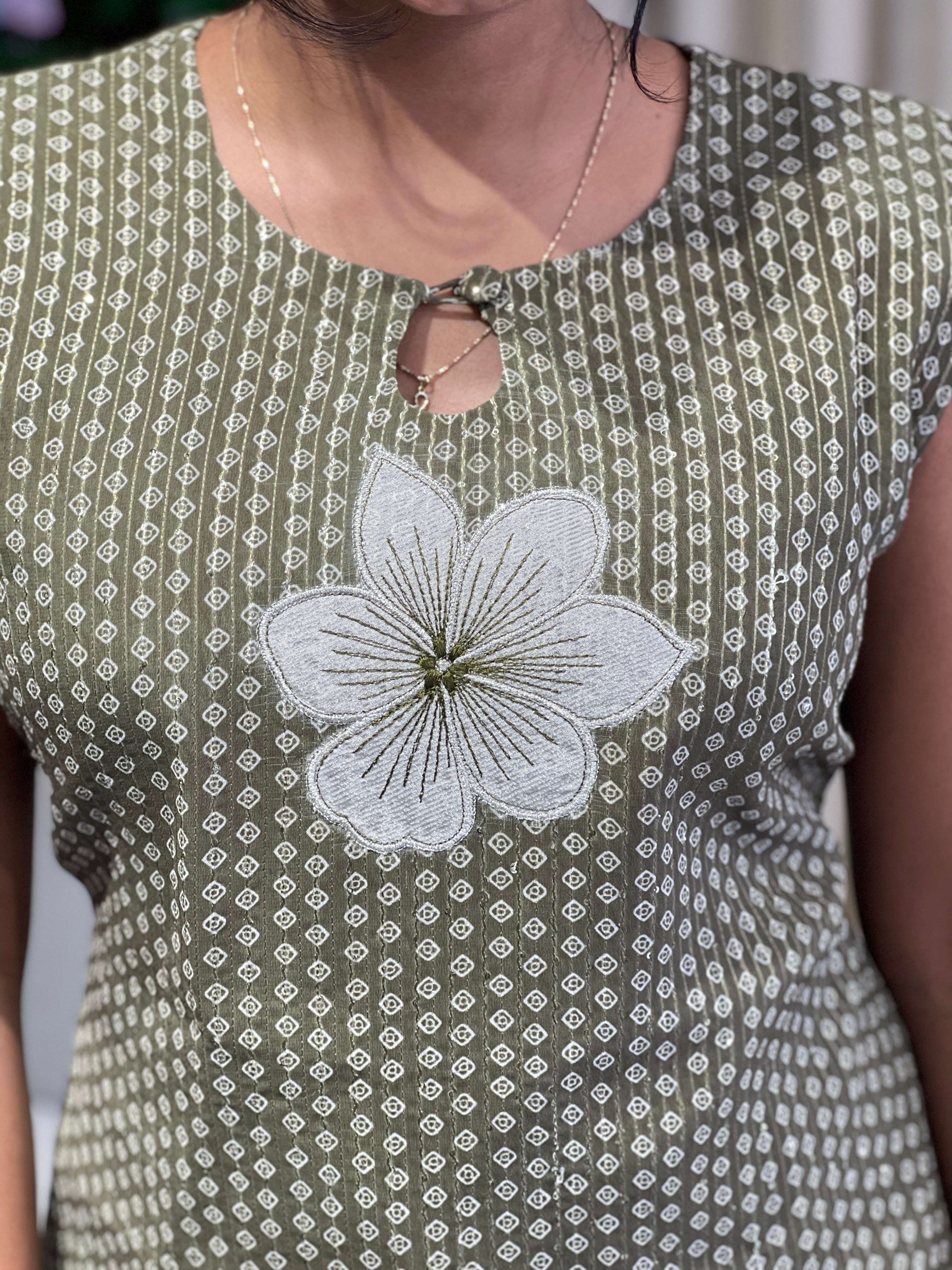 - Style: Print With Sequence Highlighted, Applique Detailing