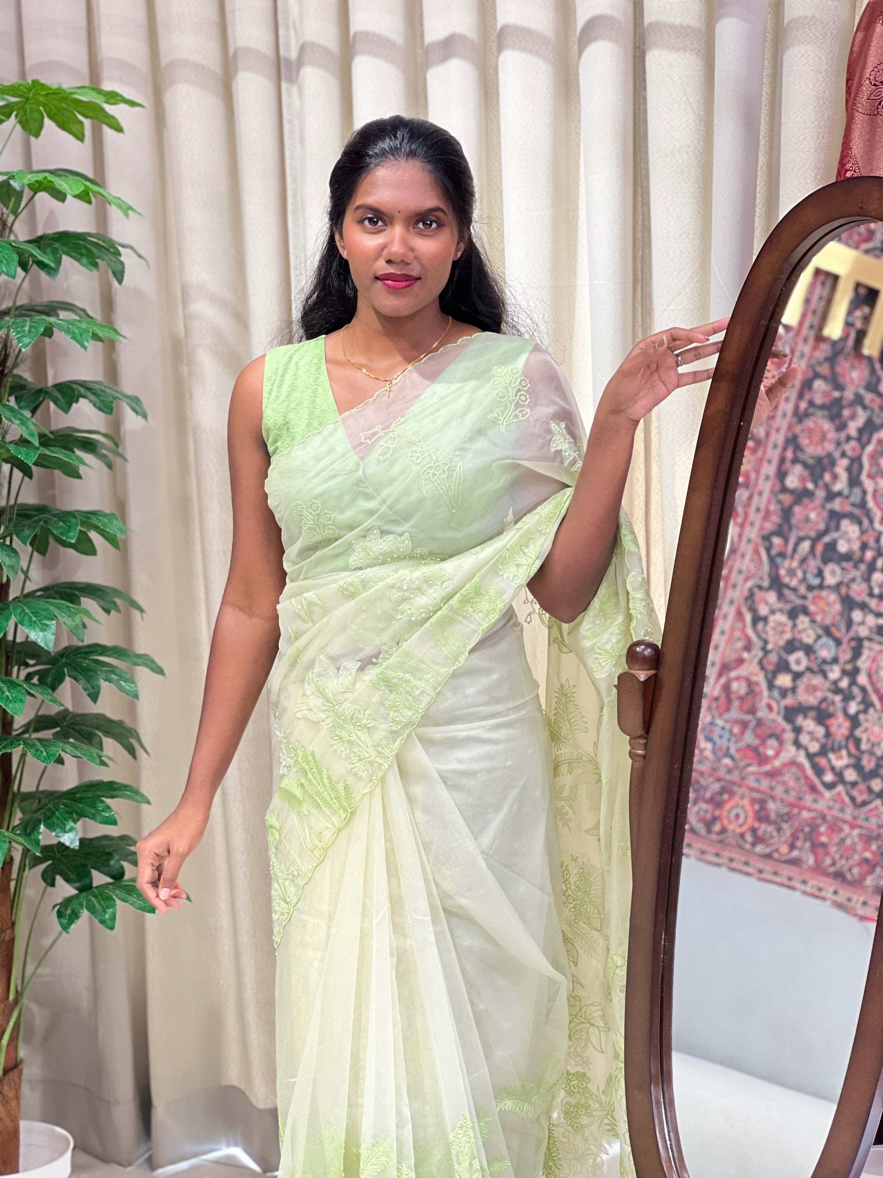 Applique Patterned Organza Saree | MM342 Applique Patterned Organza Saree | MM342