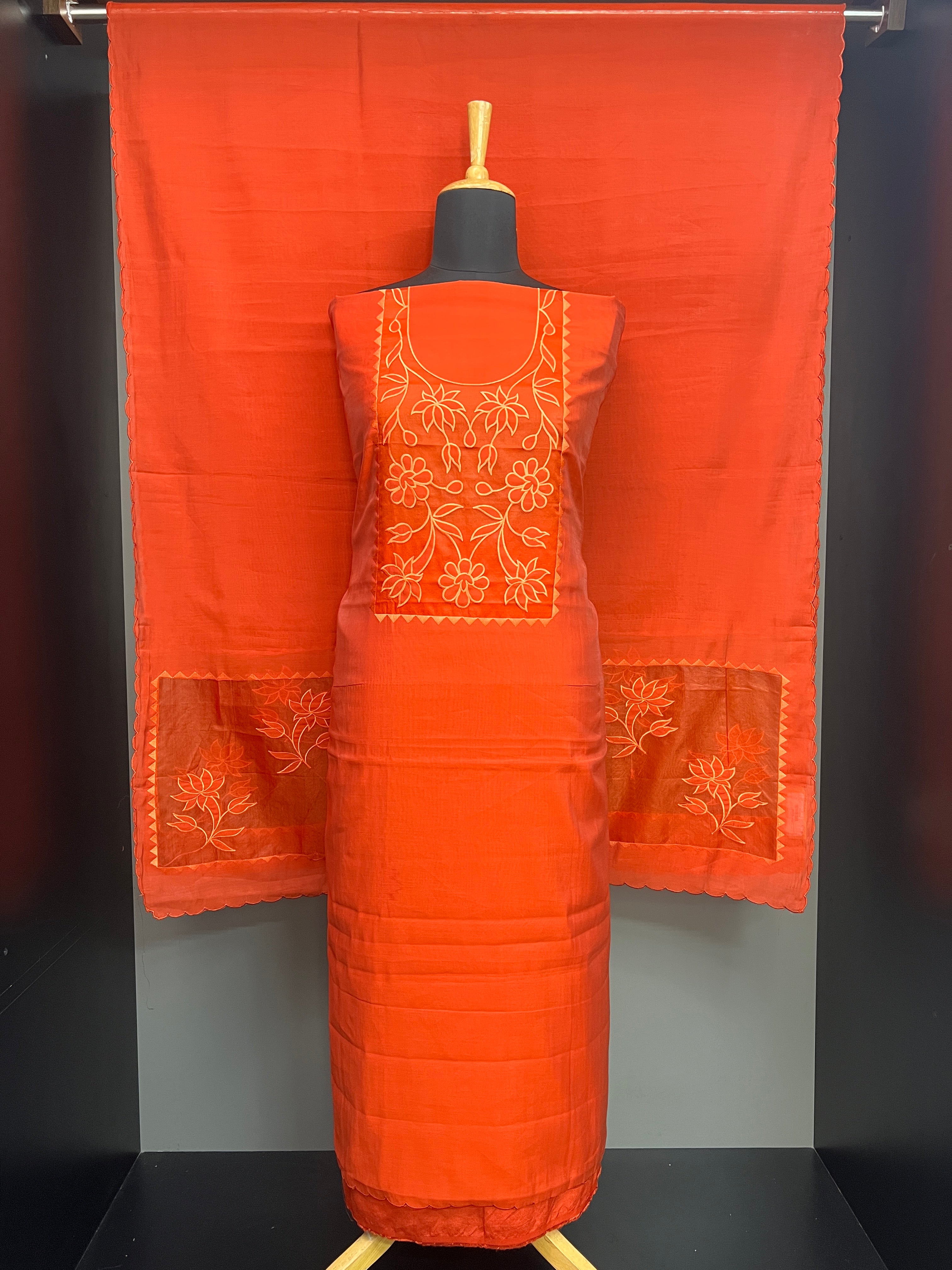 • Style: Organza Patch Work detailing, Applique Work