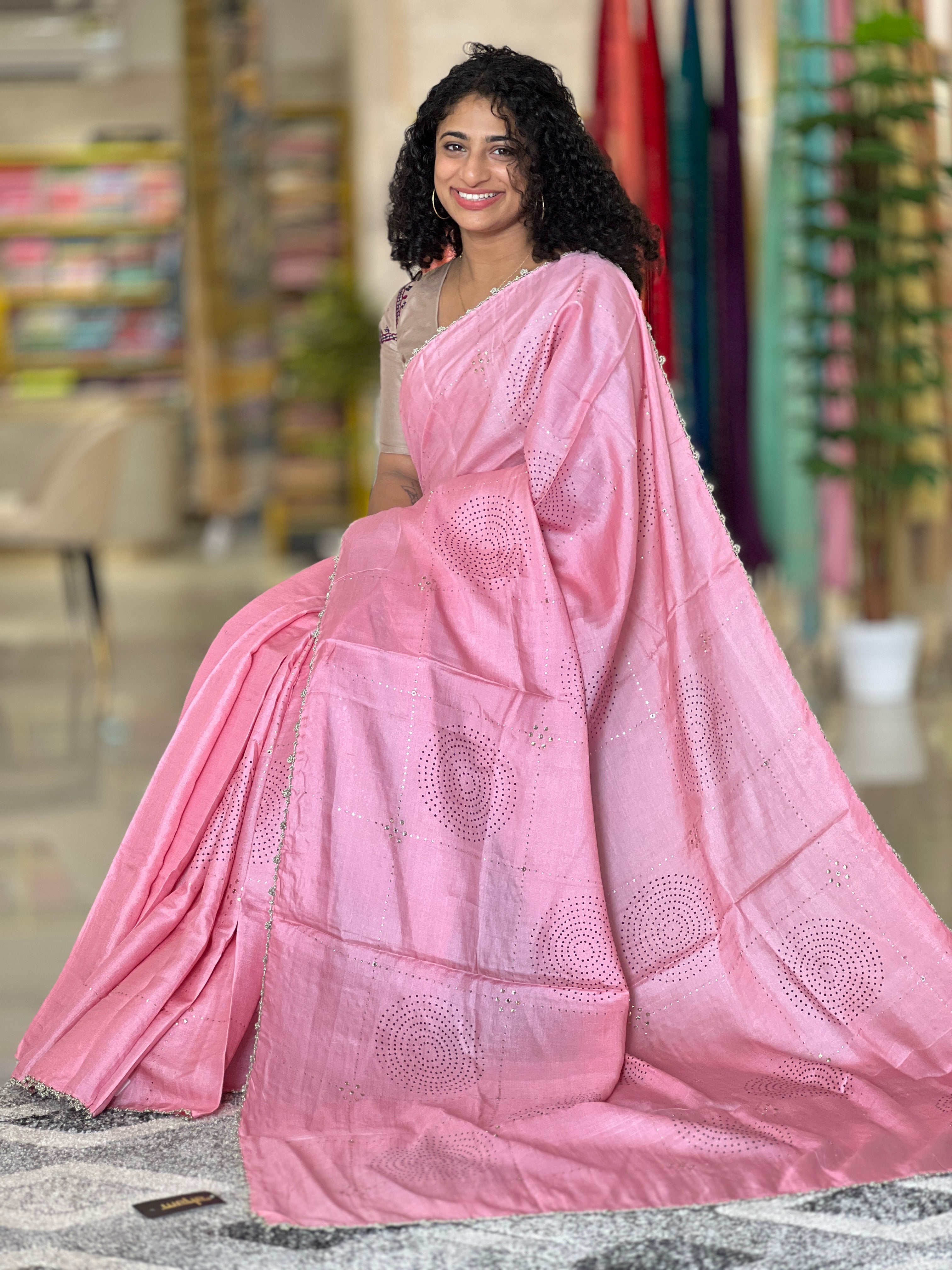 - Style: Badla Work In Check Pattern With Circular Motif, Crochet Border