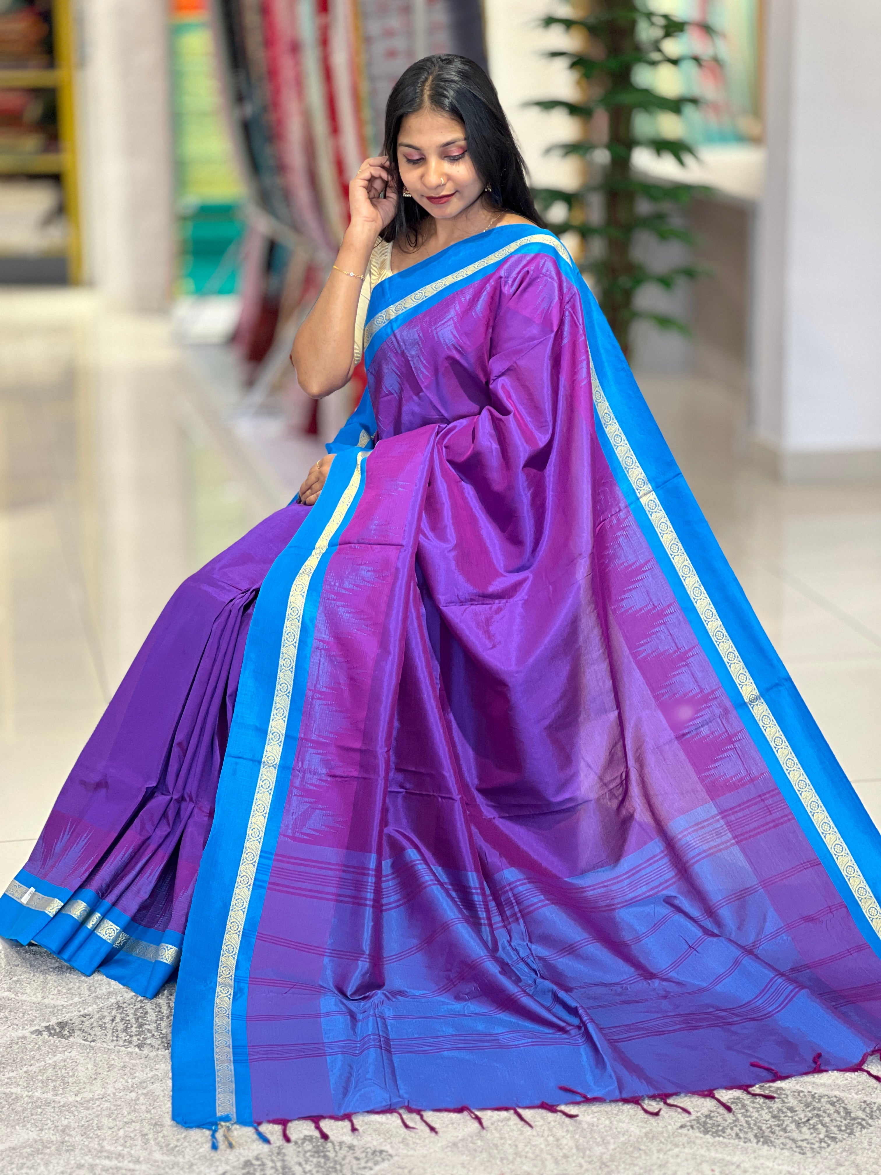 - Style: Temple Border Design, Plain Contrast & Zari Woven Border Detailing, Stripe Patterned Pallu, Tassel Detailing