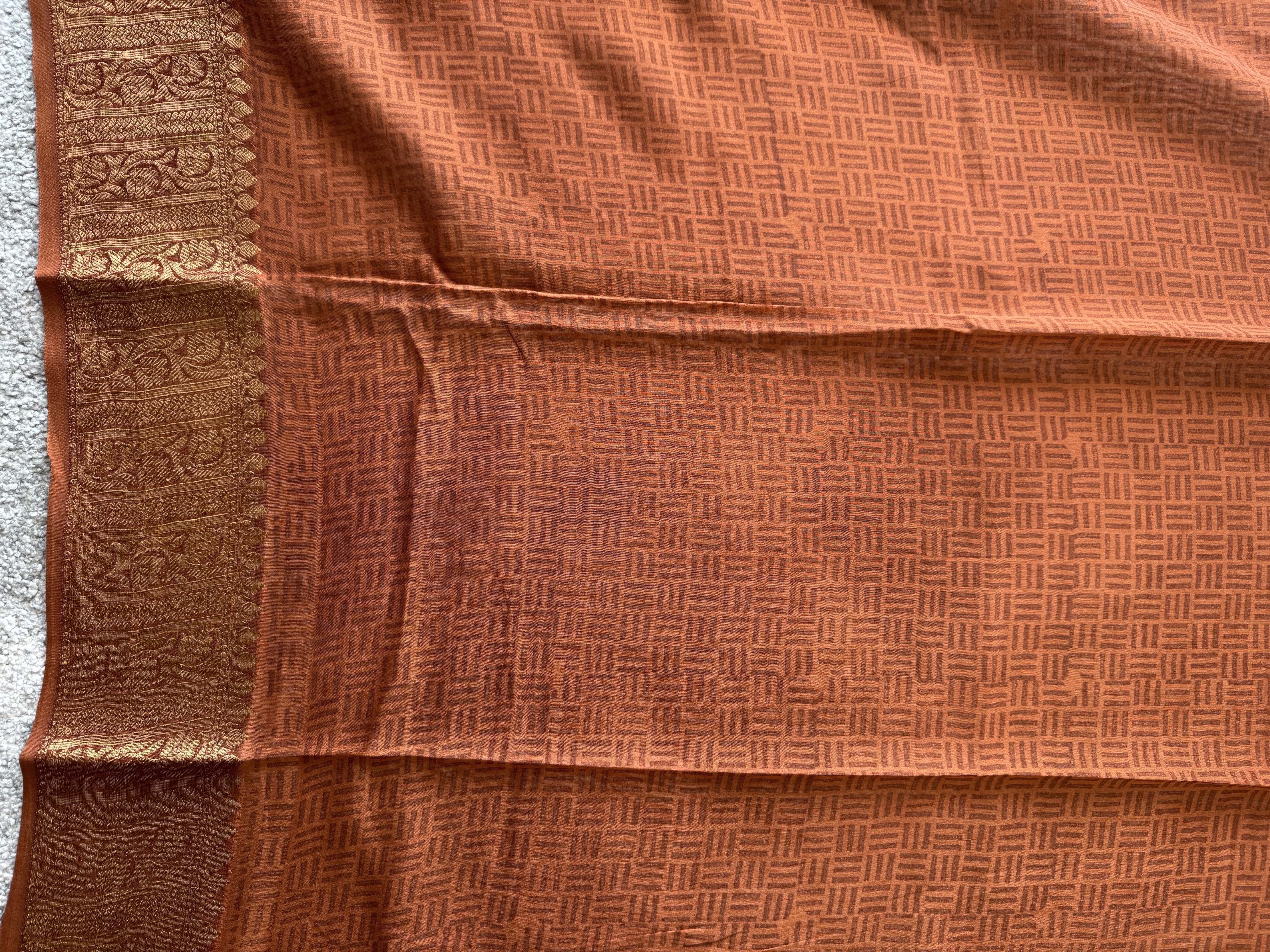 - Style: Block Printed, Banarasi Antique Golden Zari Borders