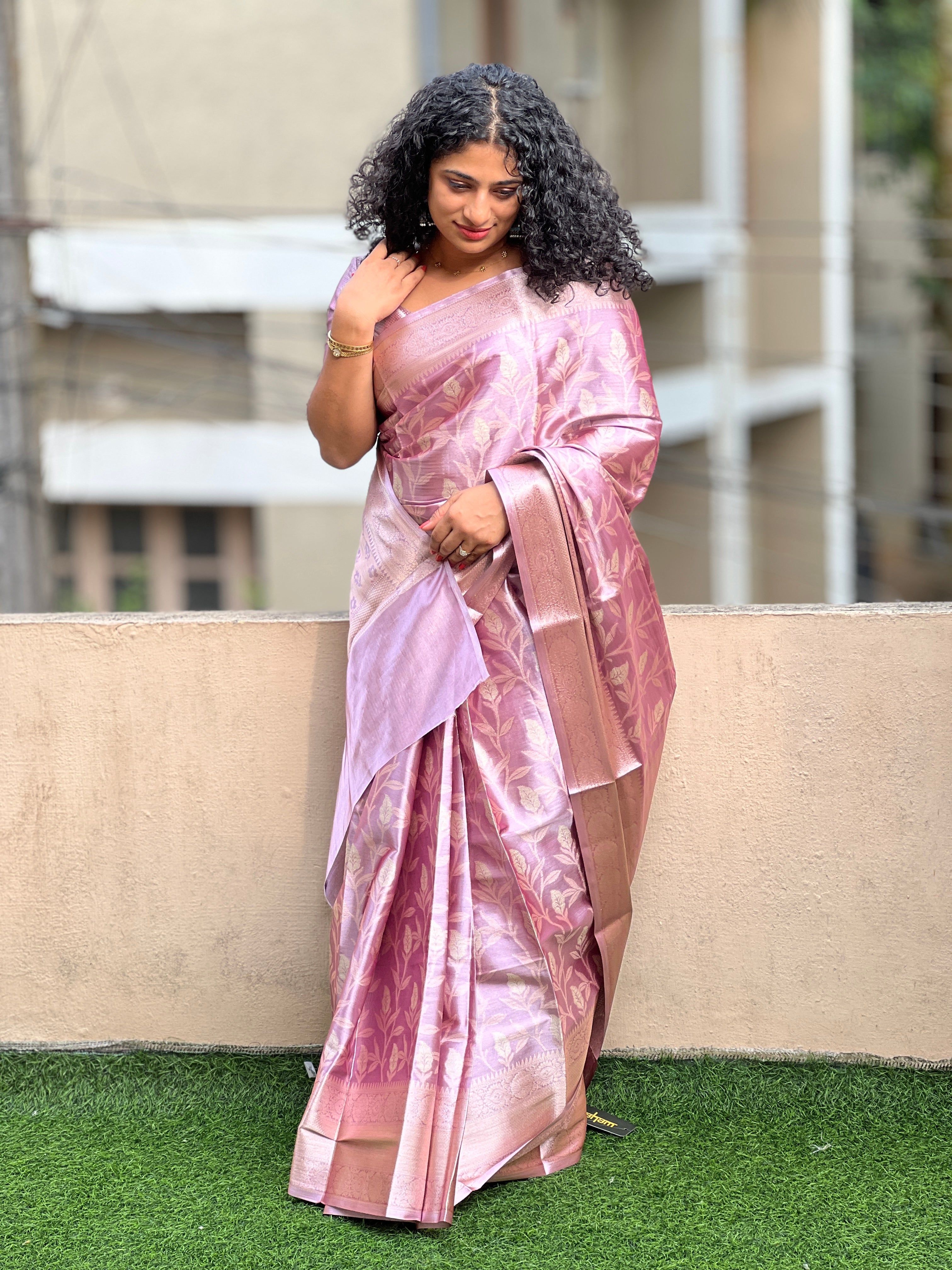 - Style: Pink Zari, Banarasi Borders, Leaf Pattern, Floral Patterned Pallu