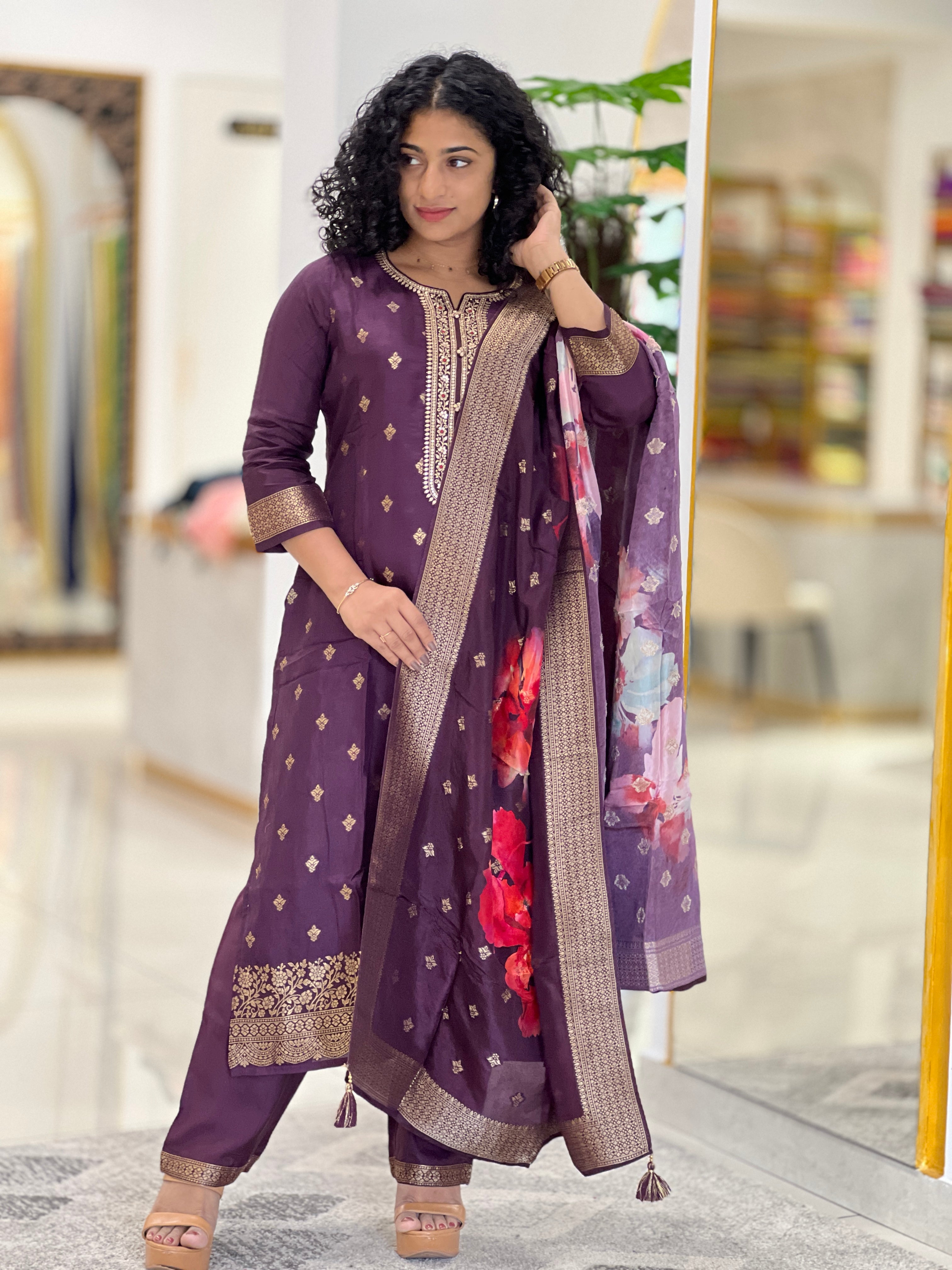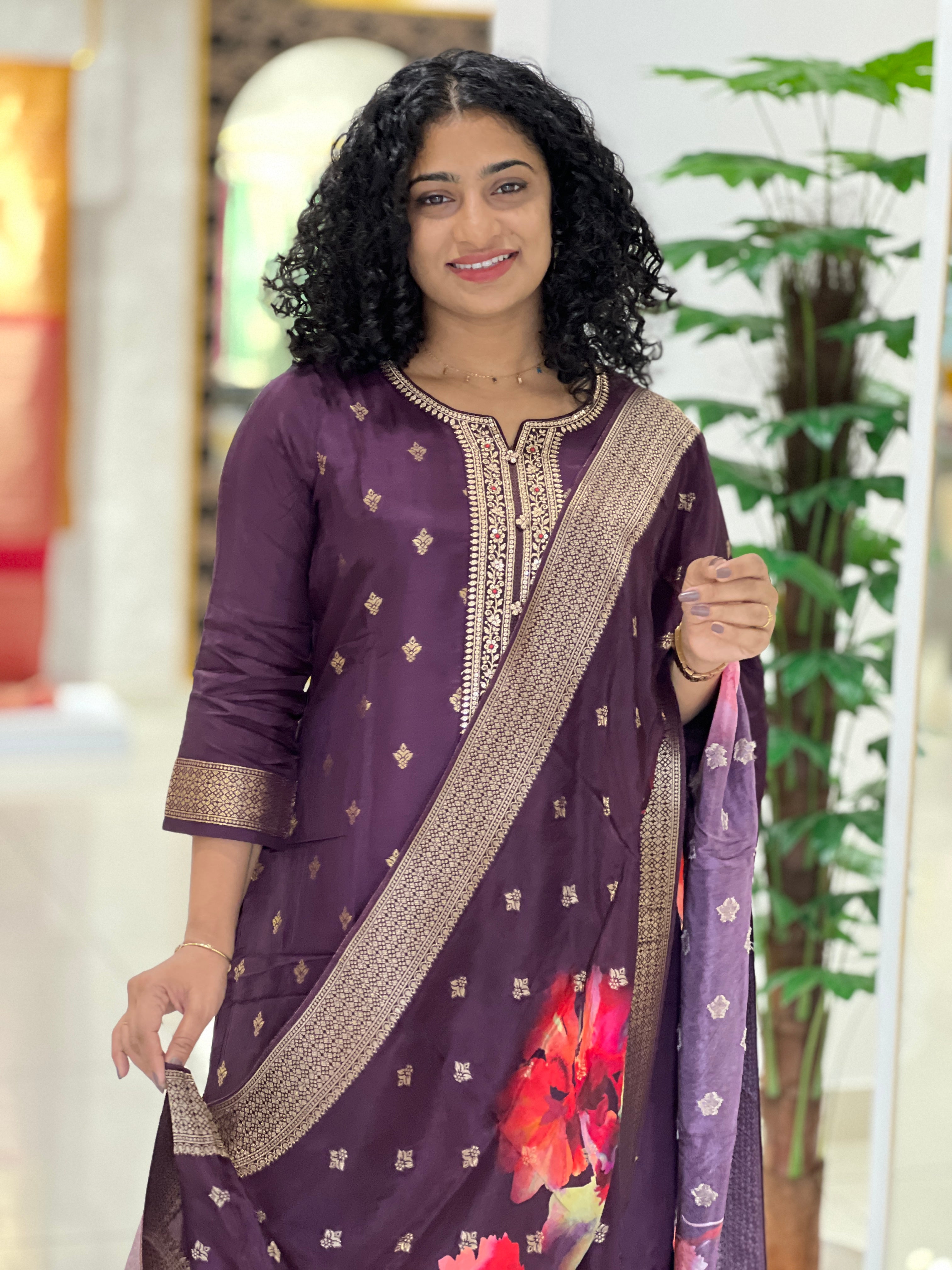 - Style: Banarasi Buta Design, Side Slited, Machine Embroidery Yoke Pattern