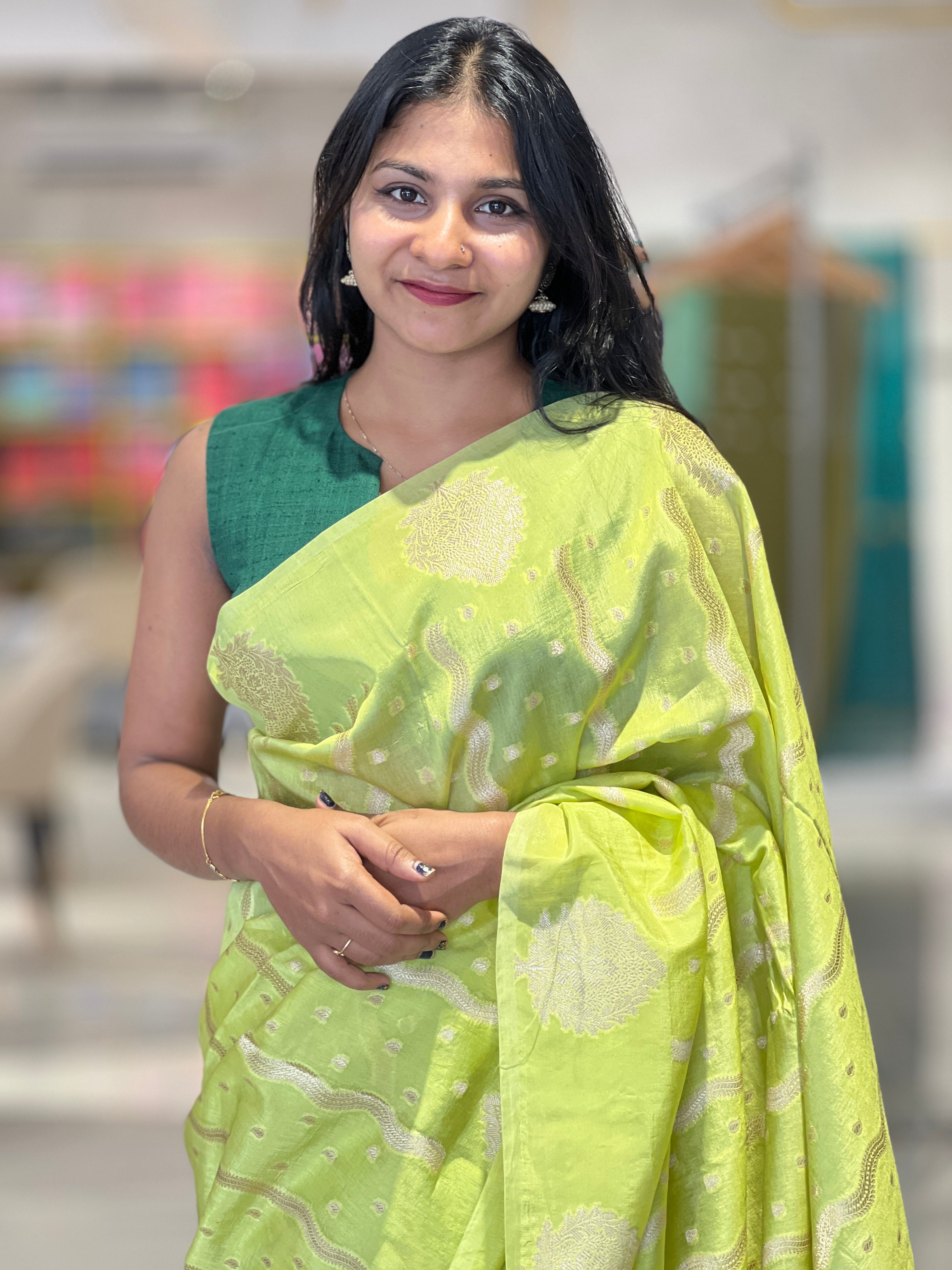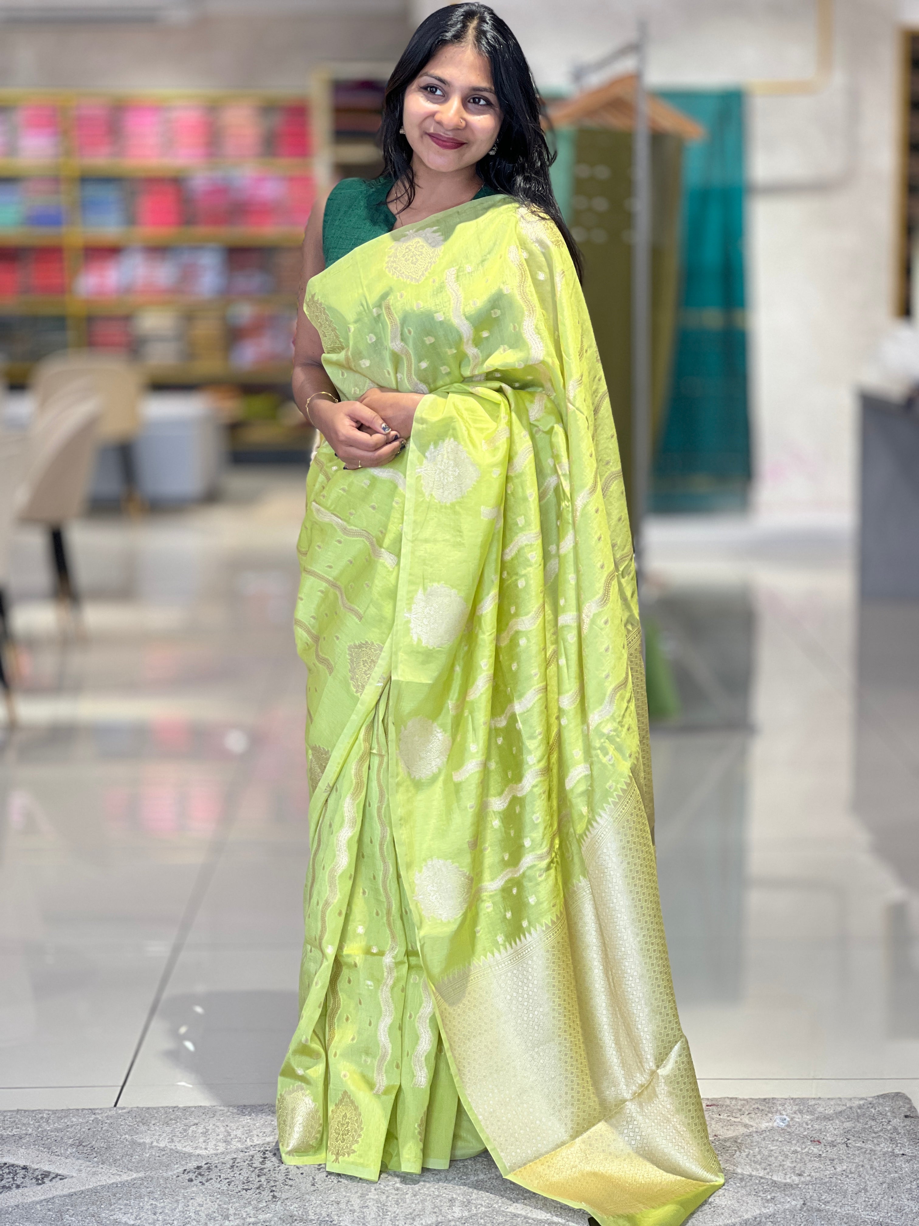 - Style: Banarasi Pattern, , Butas,Design , Zari Weaved Patterned , Short Pallu