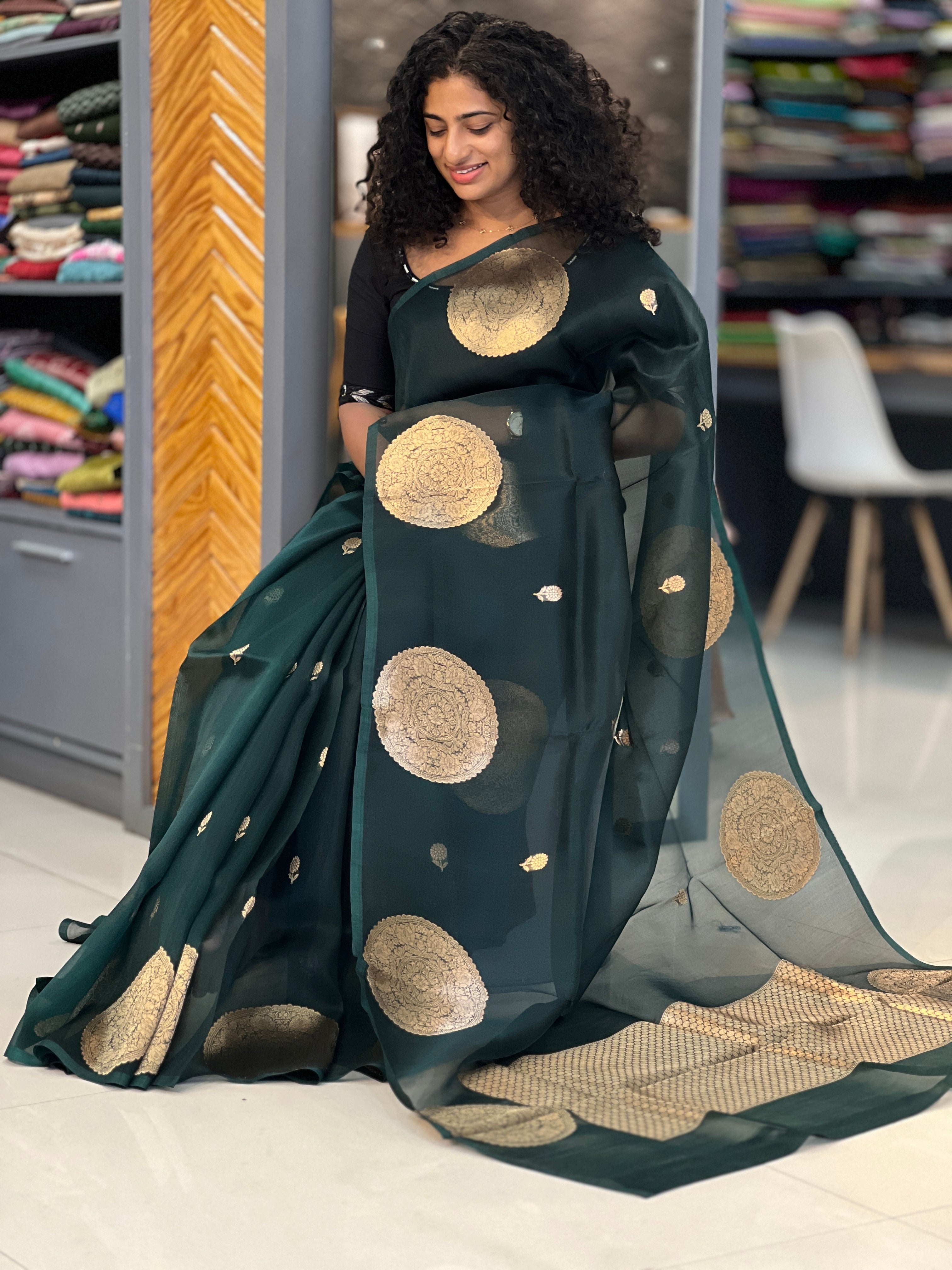 • Style: Banarasi Floral Design, Hand Loom, Circular Motifs