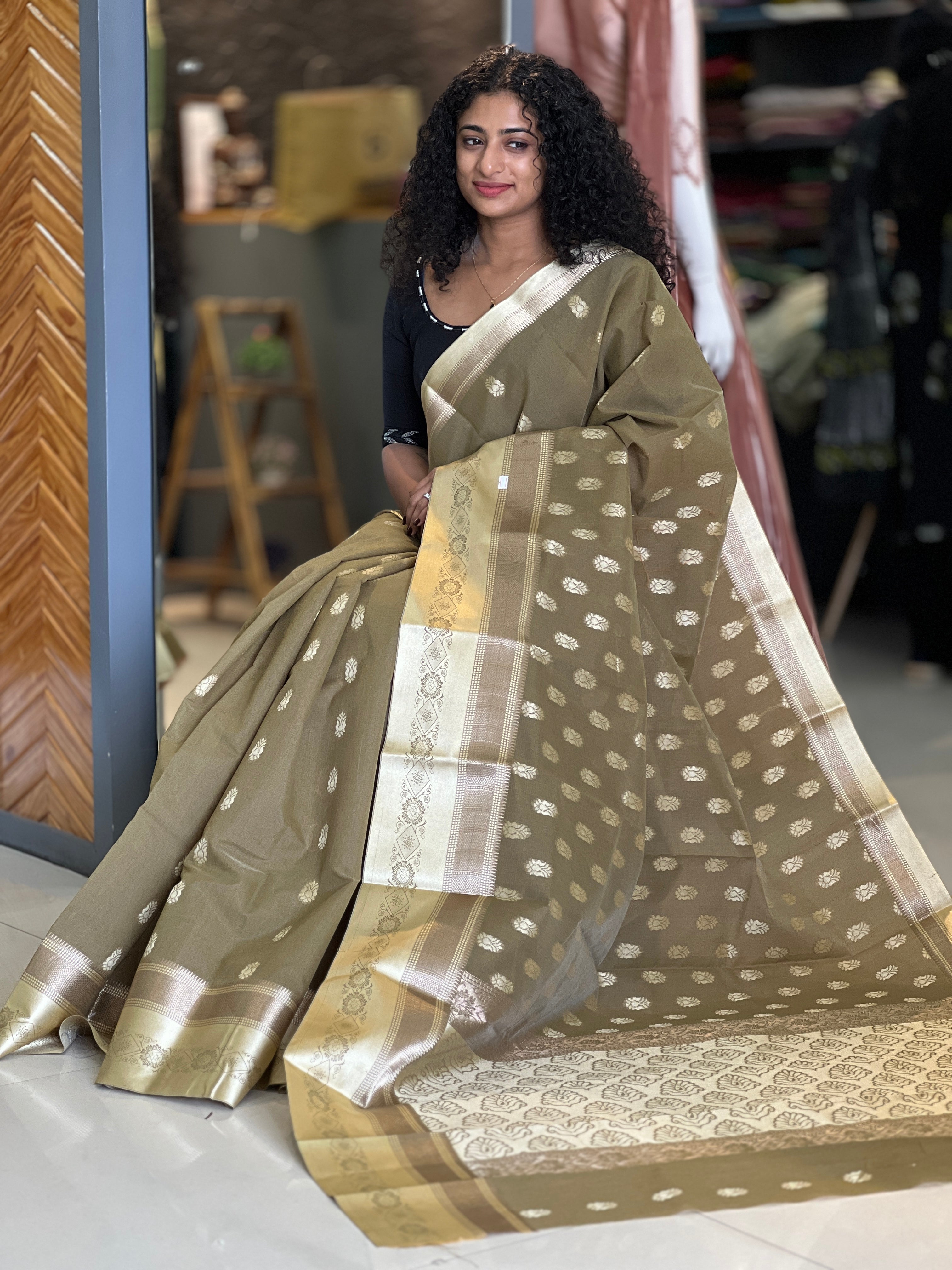 - Style: Banarasi Pattern, Golden Zari Weaved Border