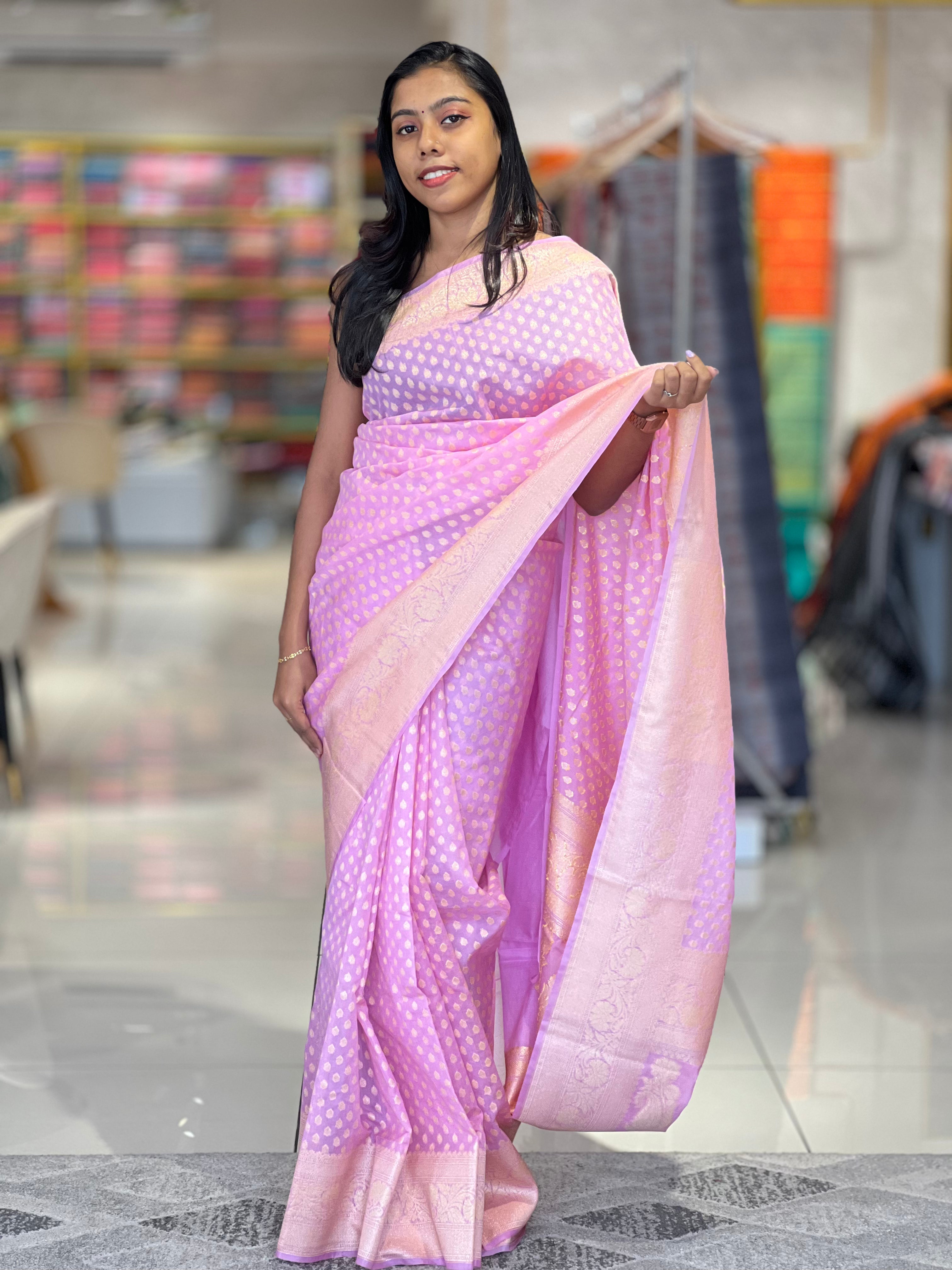 - Style: Banarasi Pattern Silver Zari Buta Scattered Buta Design ,Power Loom