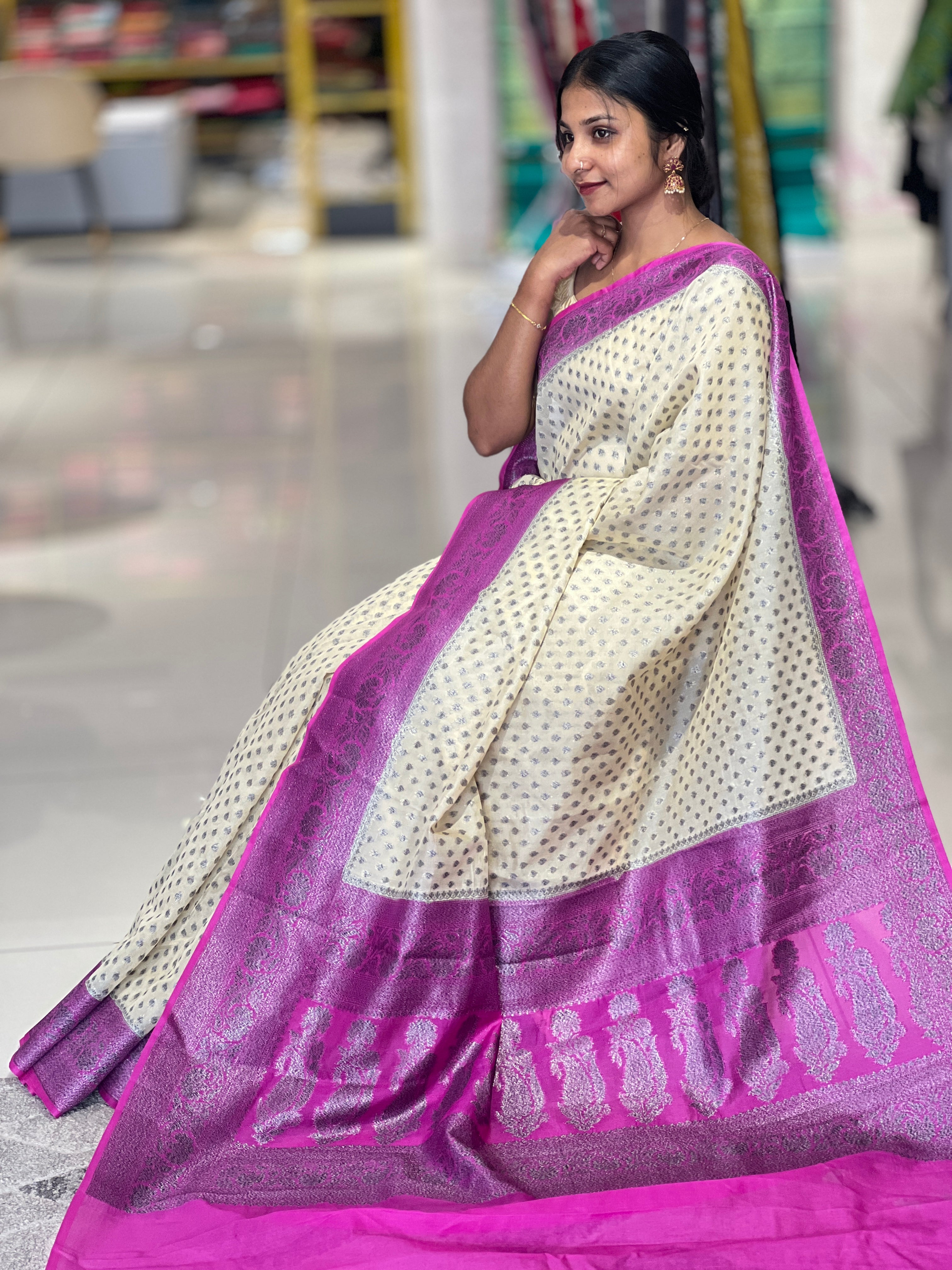 - Style: Banarasi Pattern Silver Zari Buta Scattered Buta Design ,Power Loom