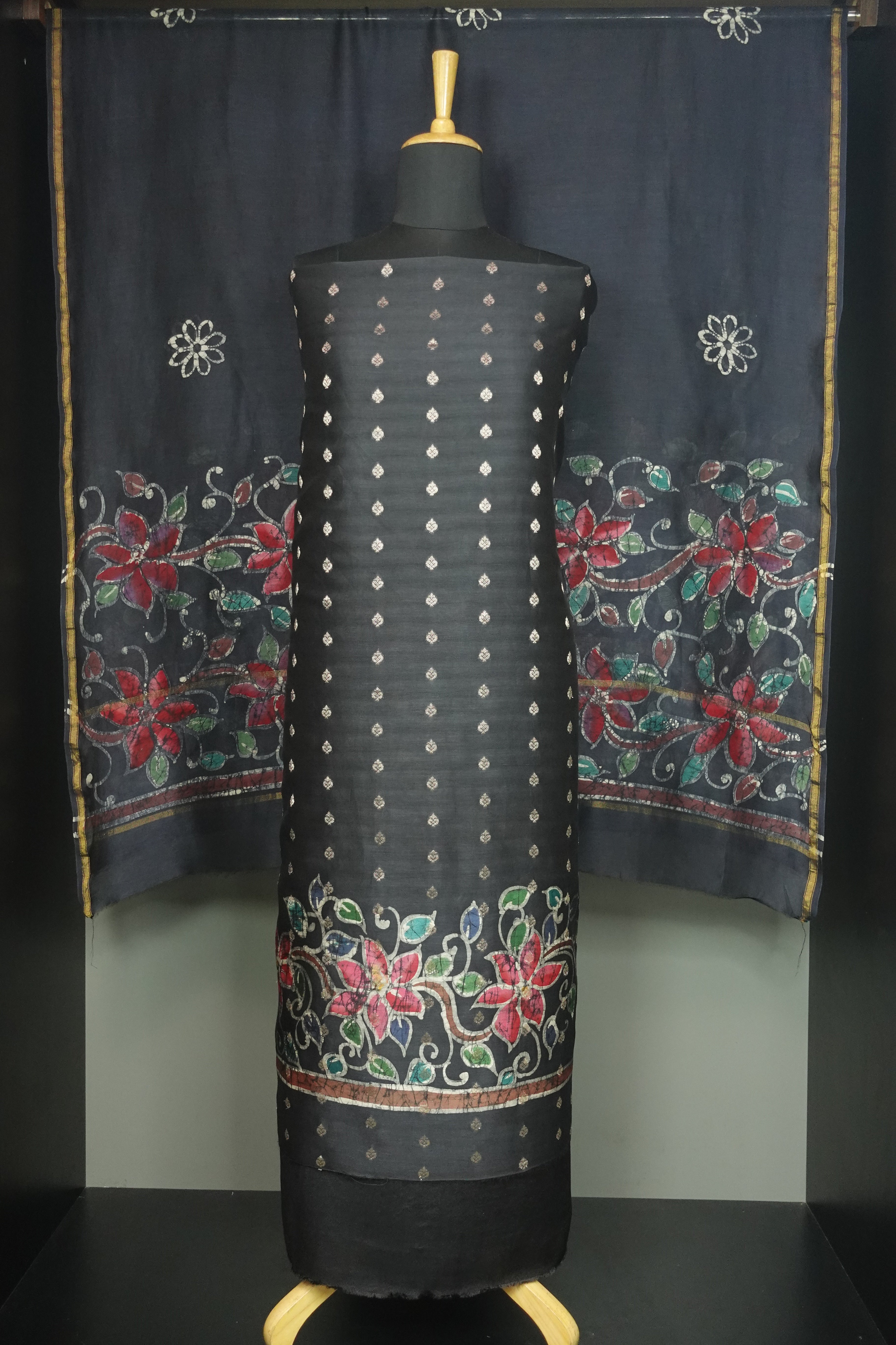 - Style:Banarasi Woven Motifs, Batik Printed Design