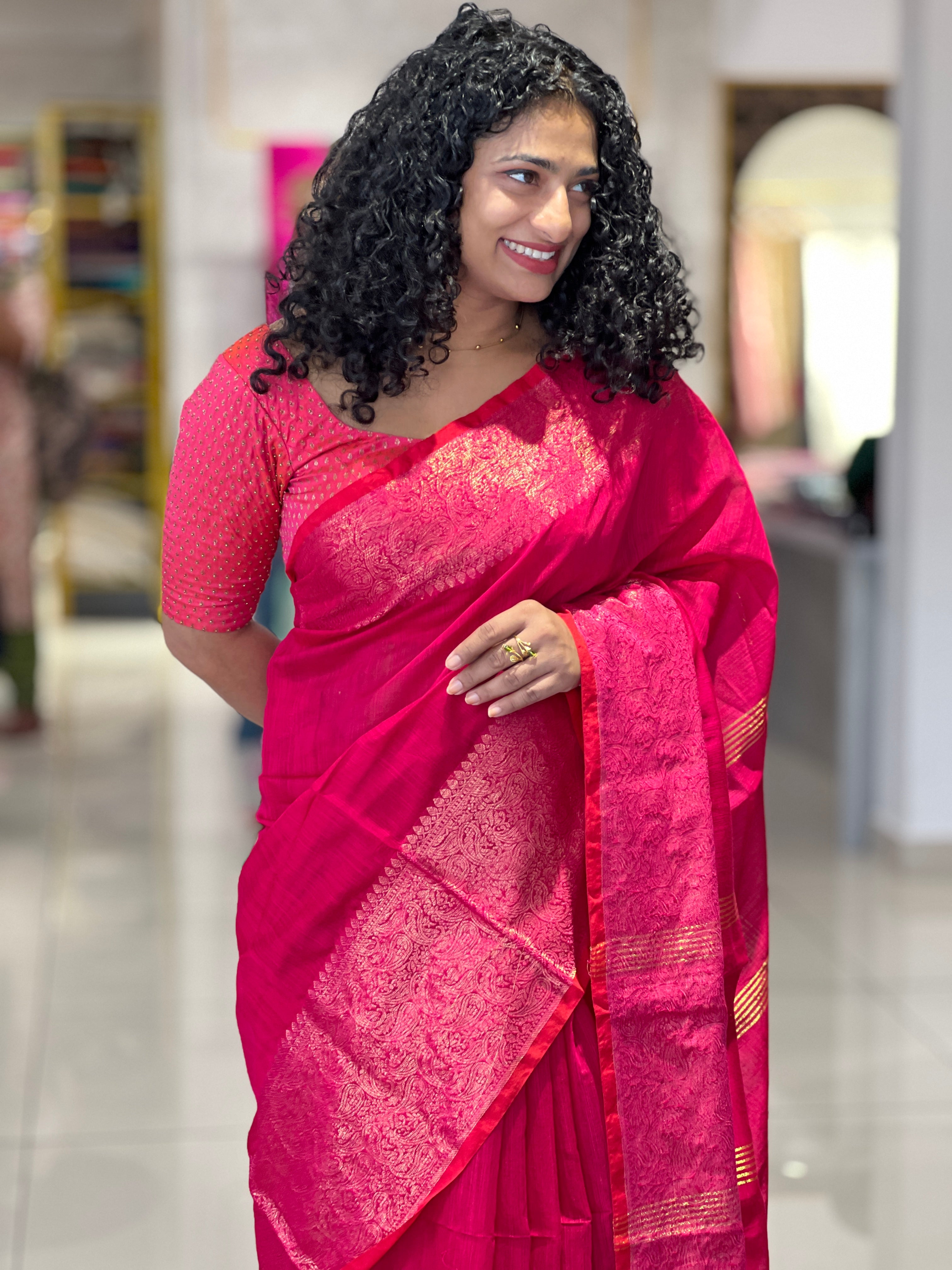 • Banarasi Weaved Border Linen Finish Saree | RP691