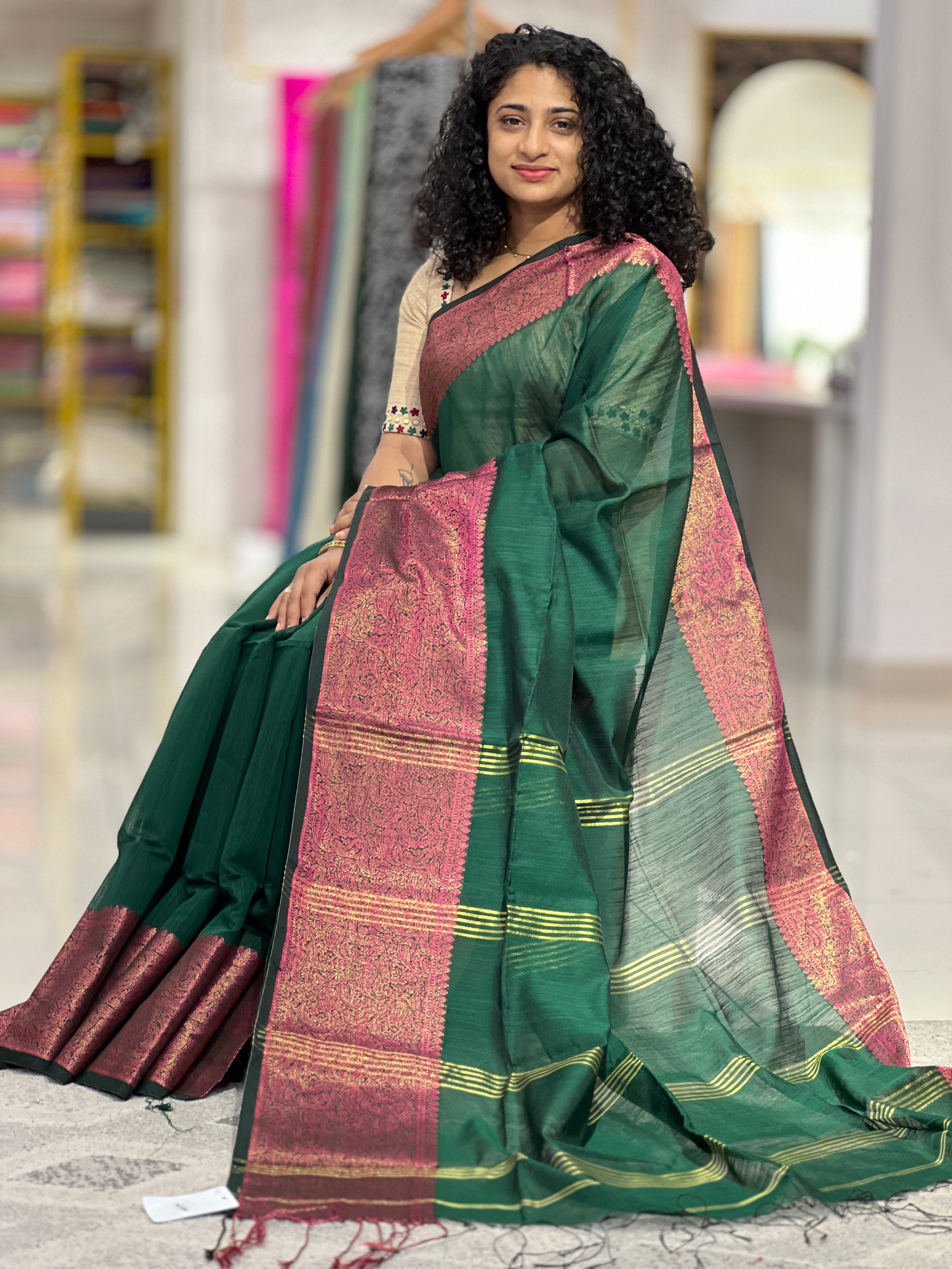 Banarasi Weaved Border Linen Finish Saree | RP692