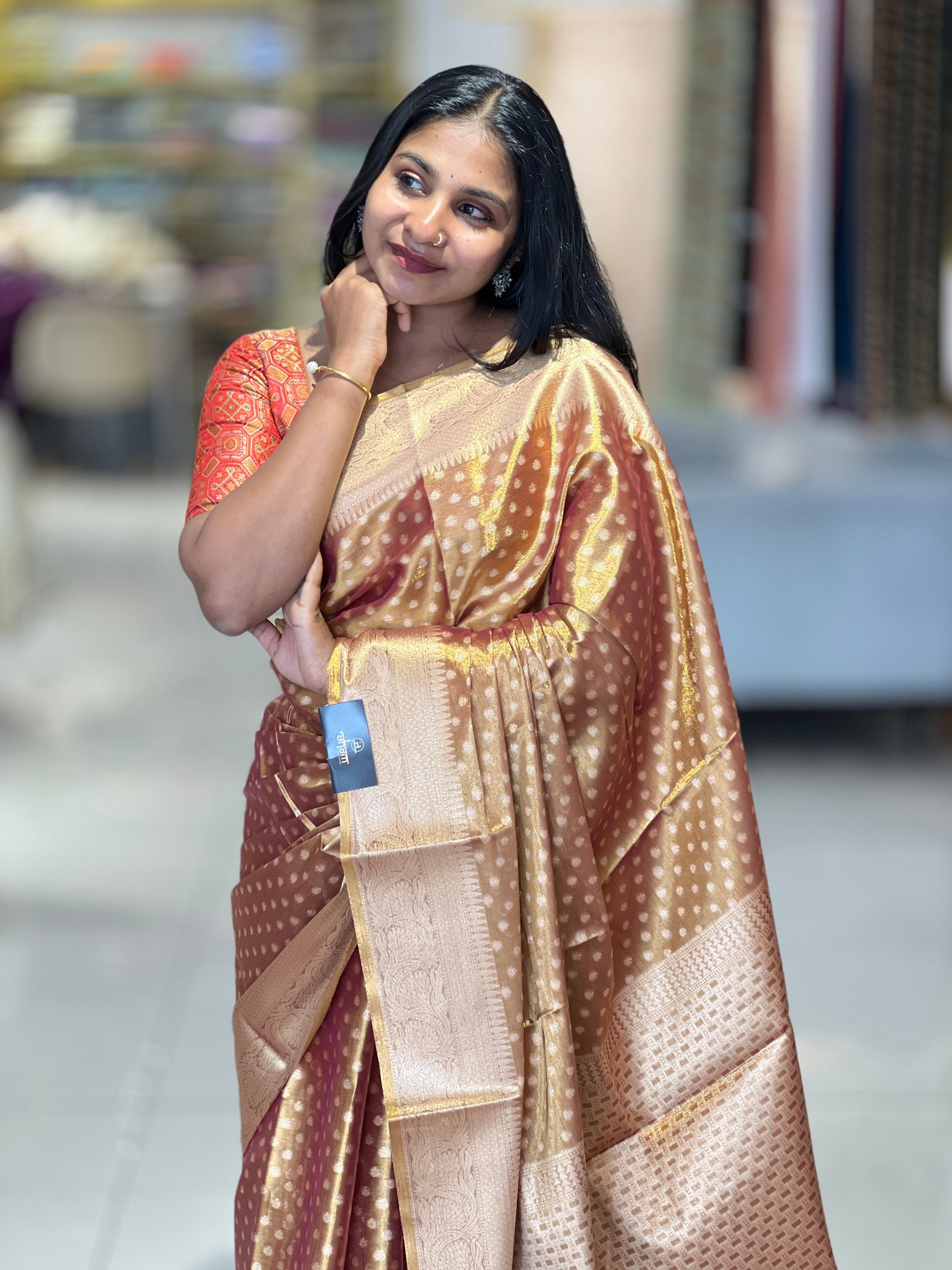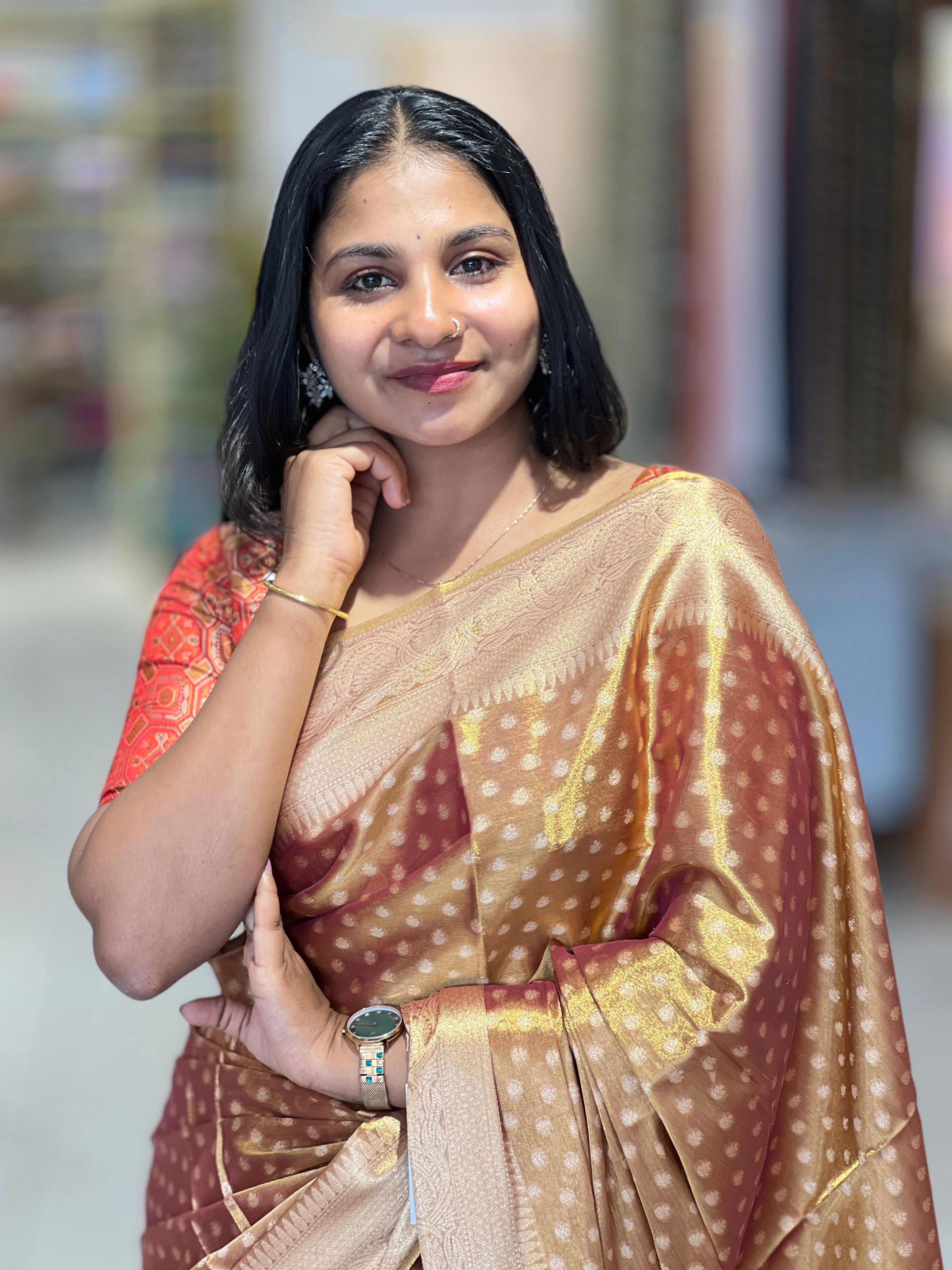 - Style: Golden Zari Buta , Banarasi Weaved Pattern