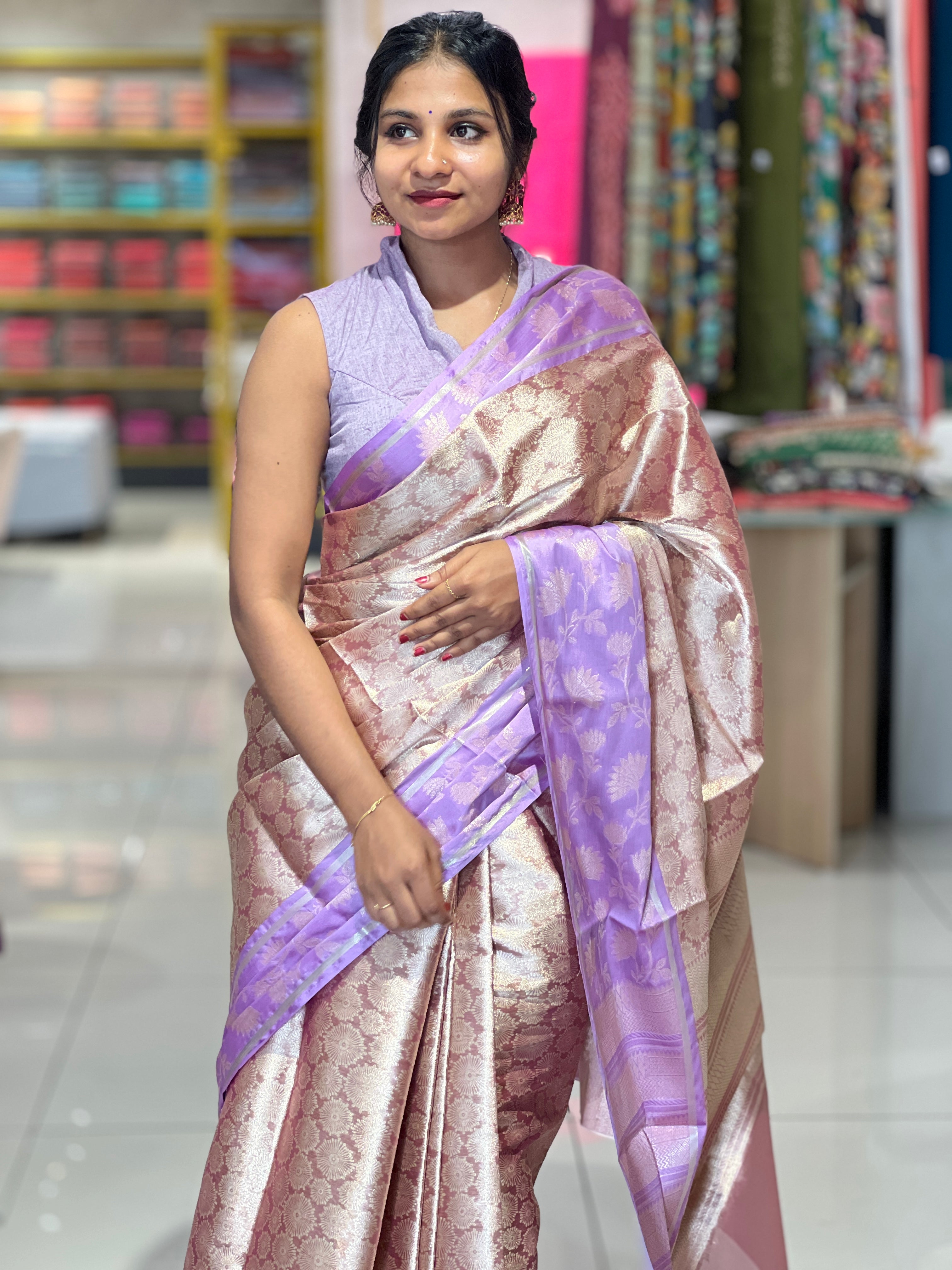 • Style: Banarasi Pattern, Golden Zari Woven, Contrast Borders, Floral Pattern