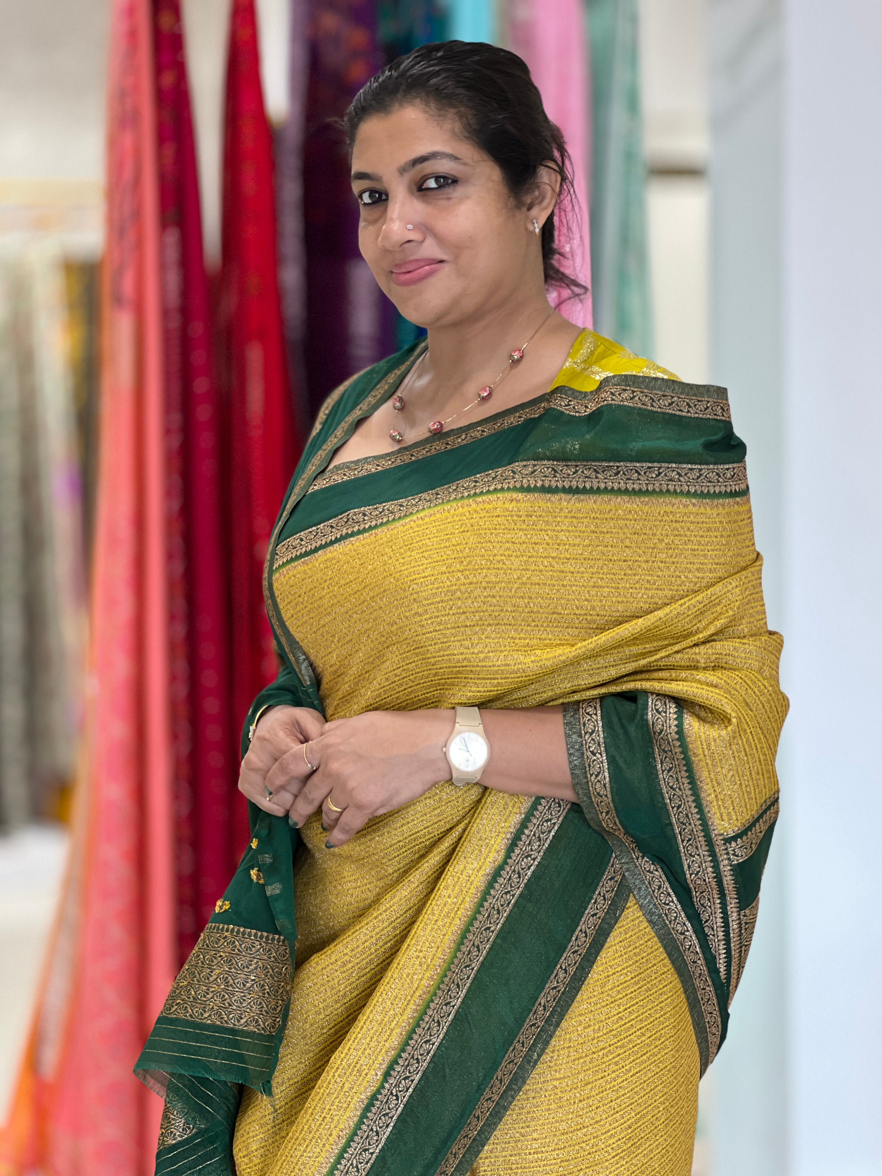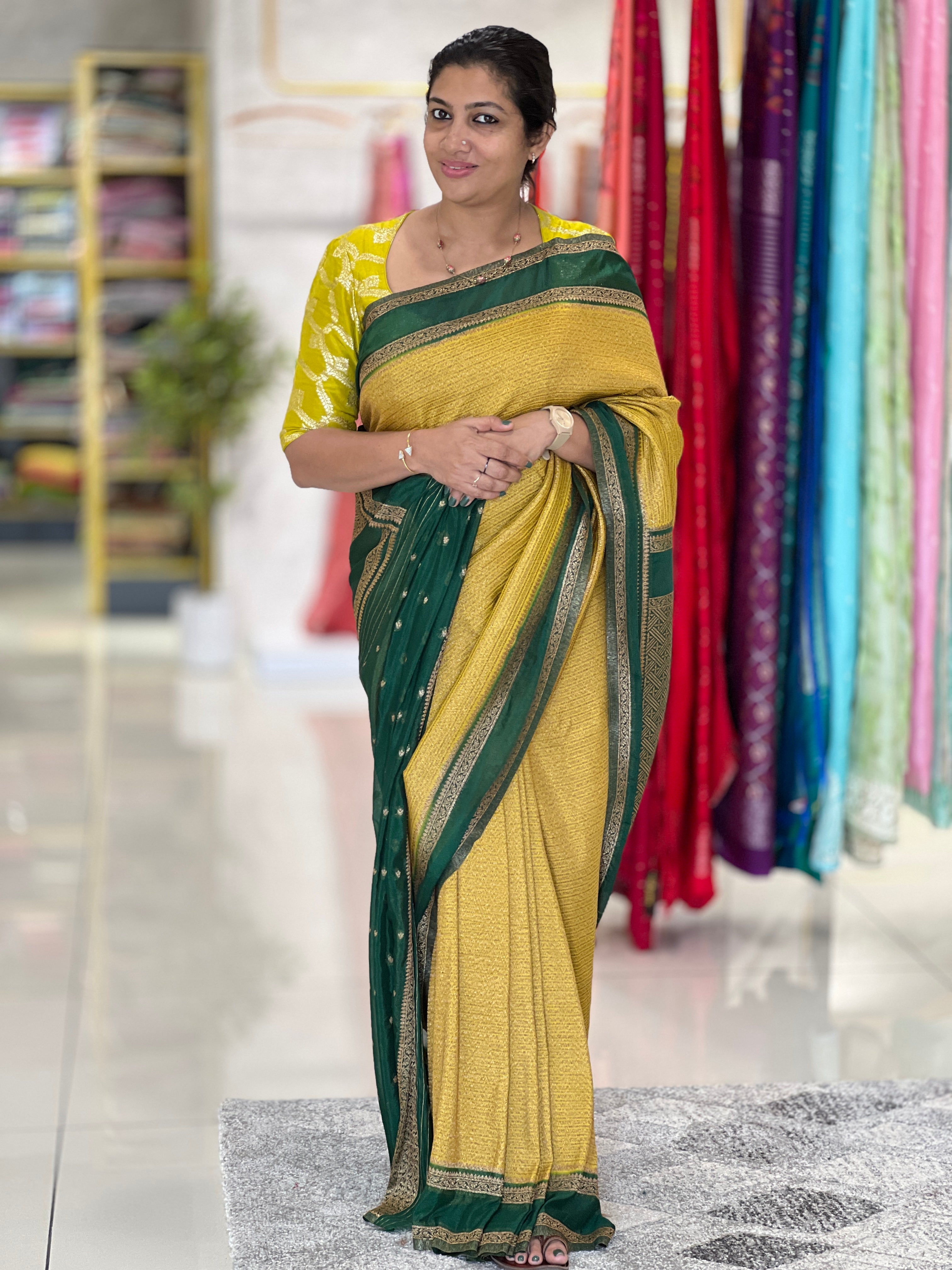 - Style: Banarasi Weaved Buta, Zari Border Detailing