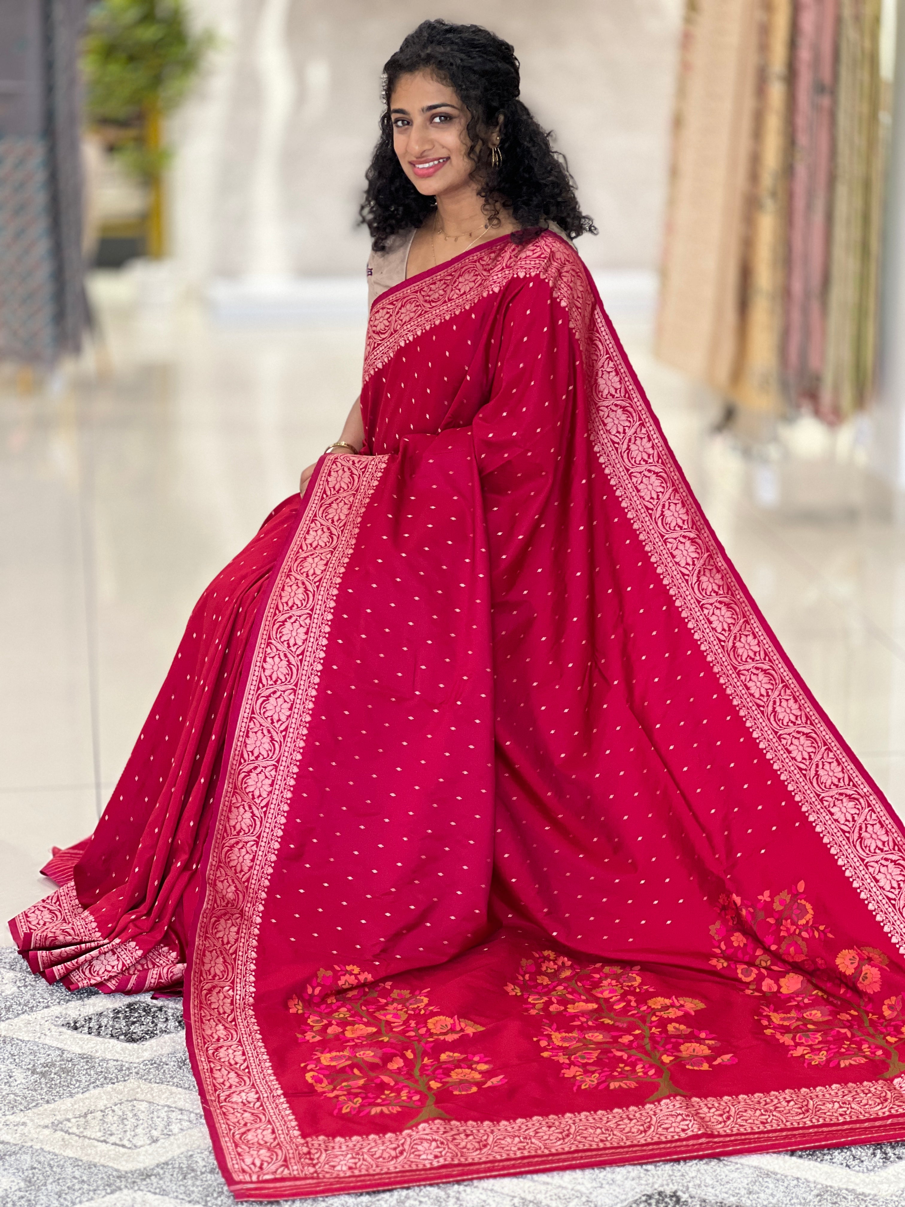 • Style: Banarasi Weaving  Pattern, Silver Zari Weaving ,Meenakari Design &Jacquard Weaving Pallu