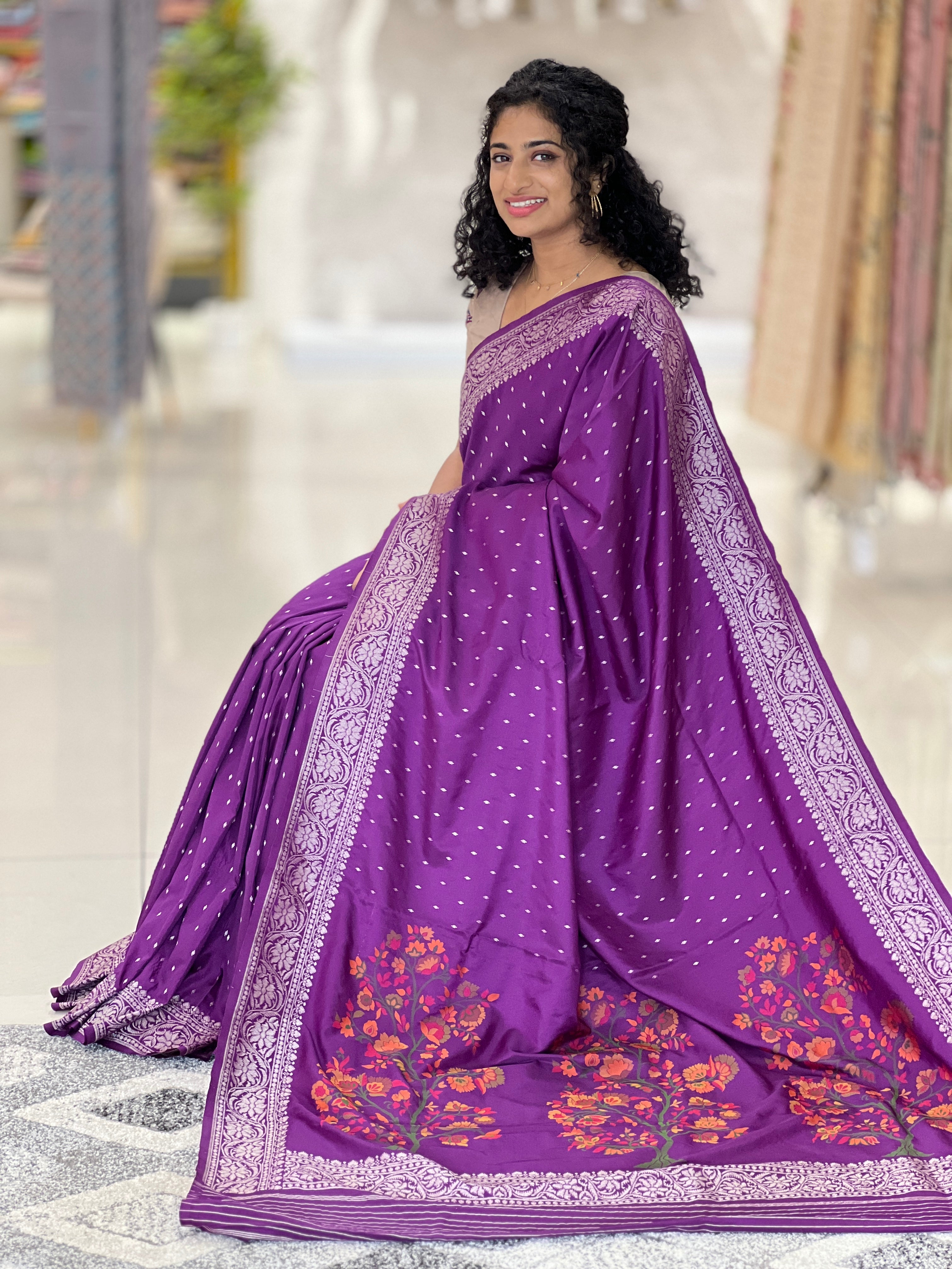 • Style: Banarasi Weaving  Pattern, Silver Zari Weaving ,Meenakari Design &Jacquard Weaving Pallu
