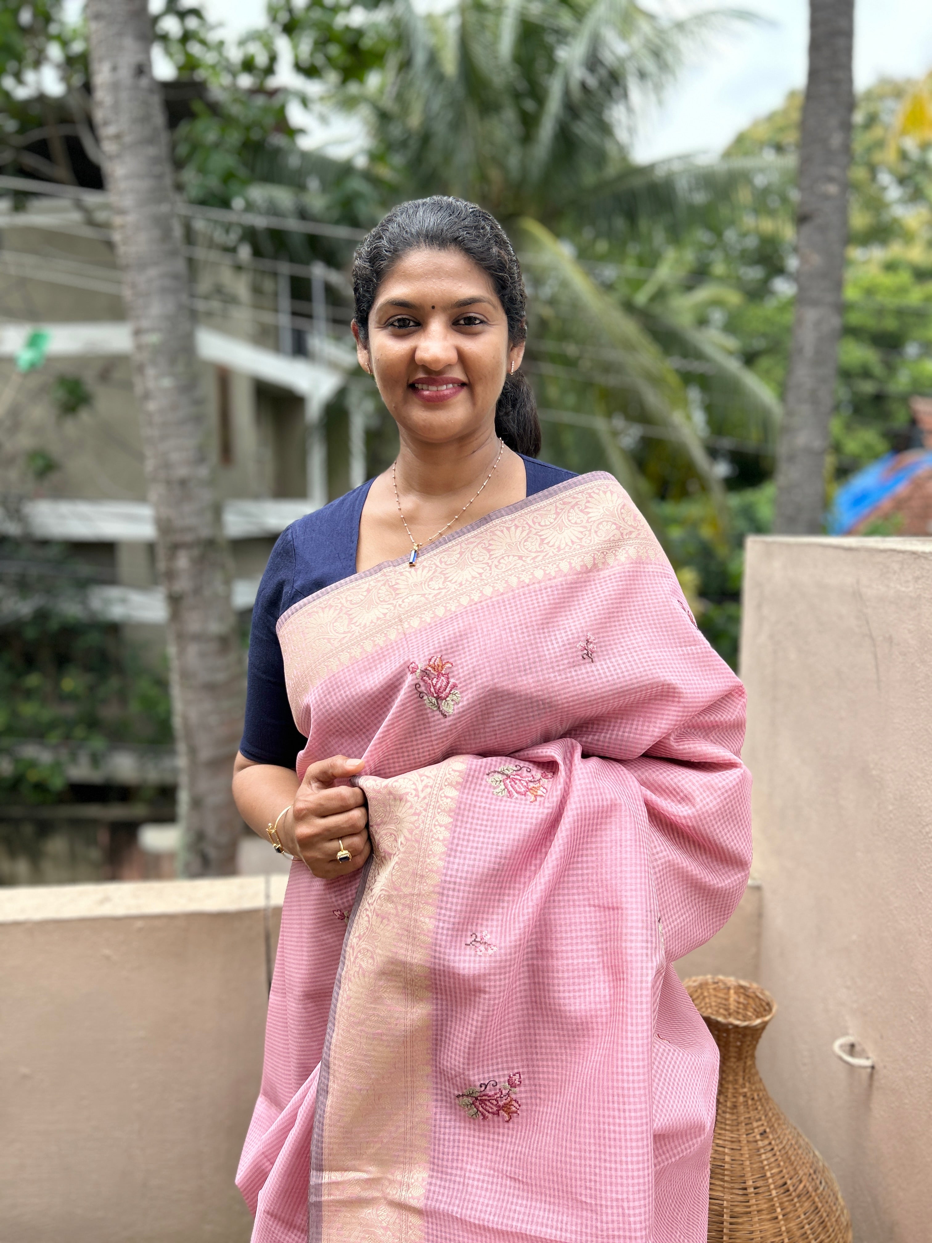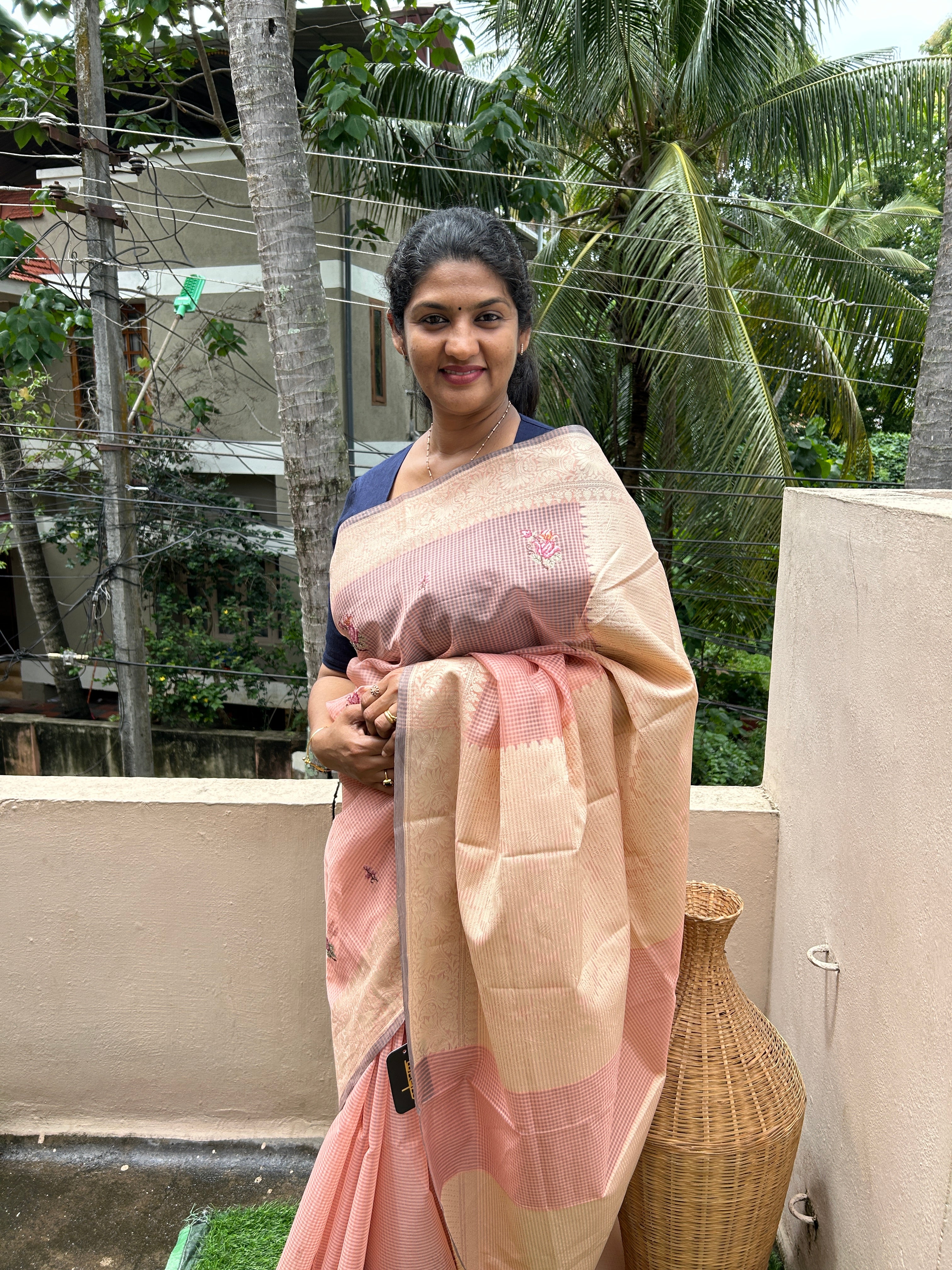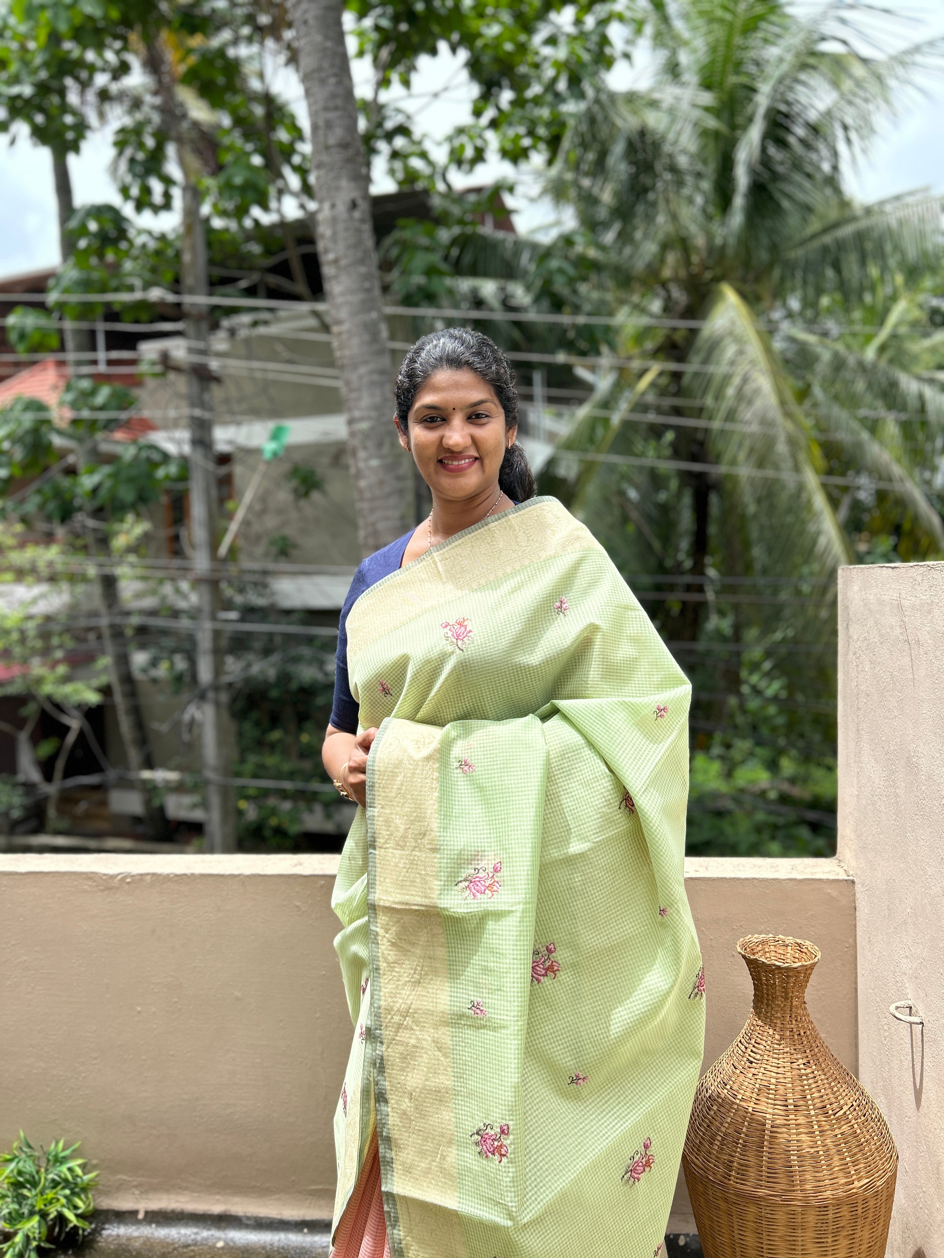 - Style: Manipuri Check Weaving Pattern and Banarasi Weaving Pattern Border Design, Floral Embroidery