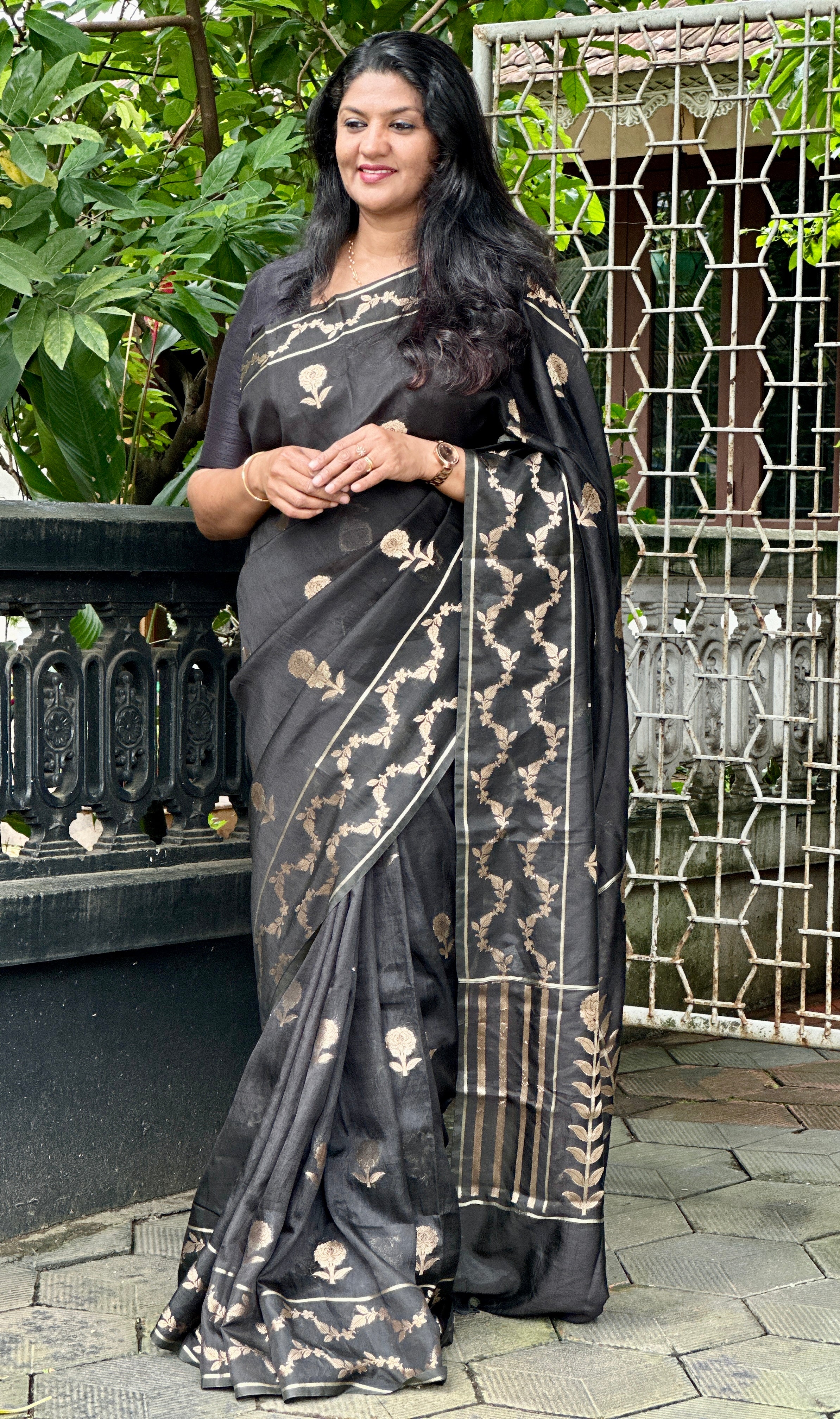 • Style: Zari Woven Scattered Floral Buta Detailing,  Pallu, Floral Jaal Banarasi Pattern Border