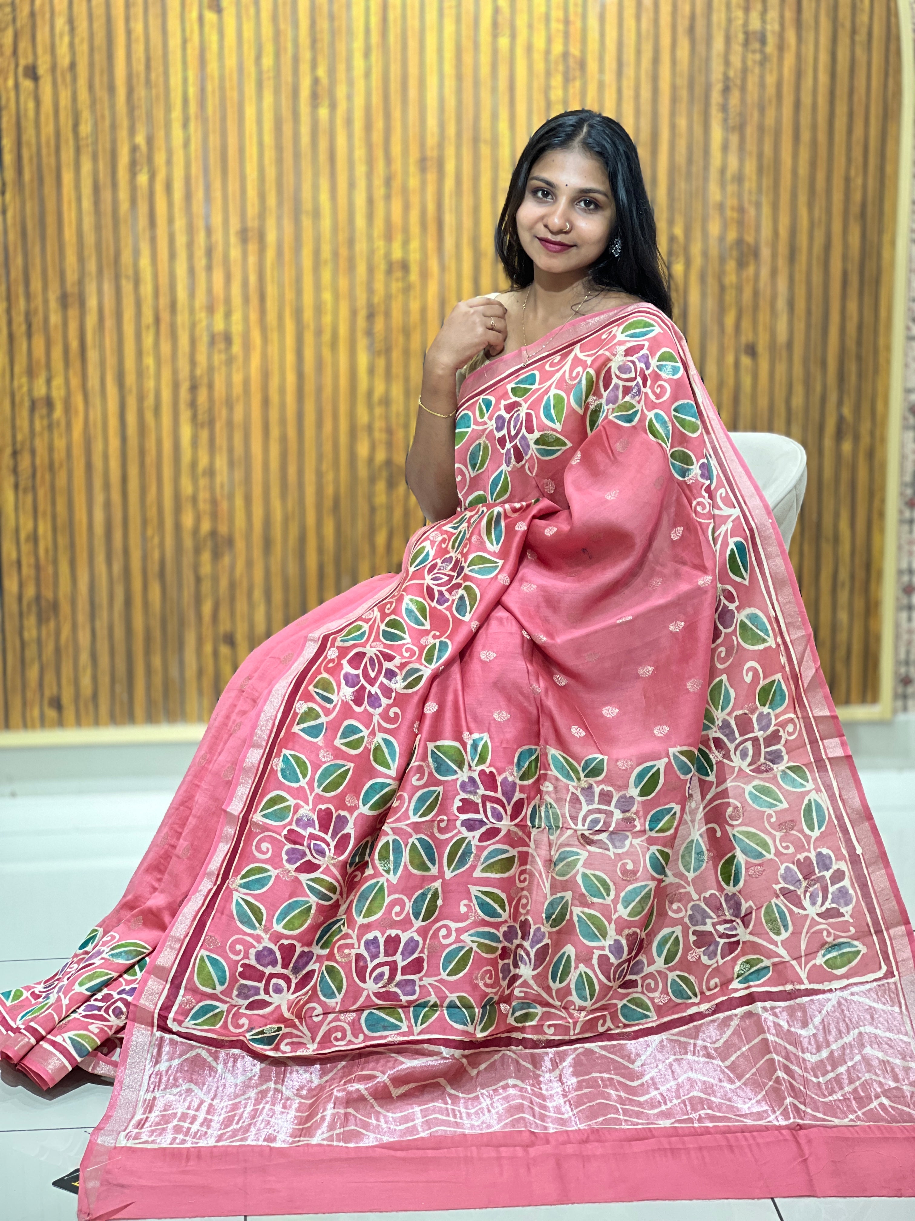 - Style: Banarasi Weaving Pattern, Batik Floral Printed Pattern, Zari Border Detailing, Zig Zag Pallu