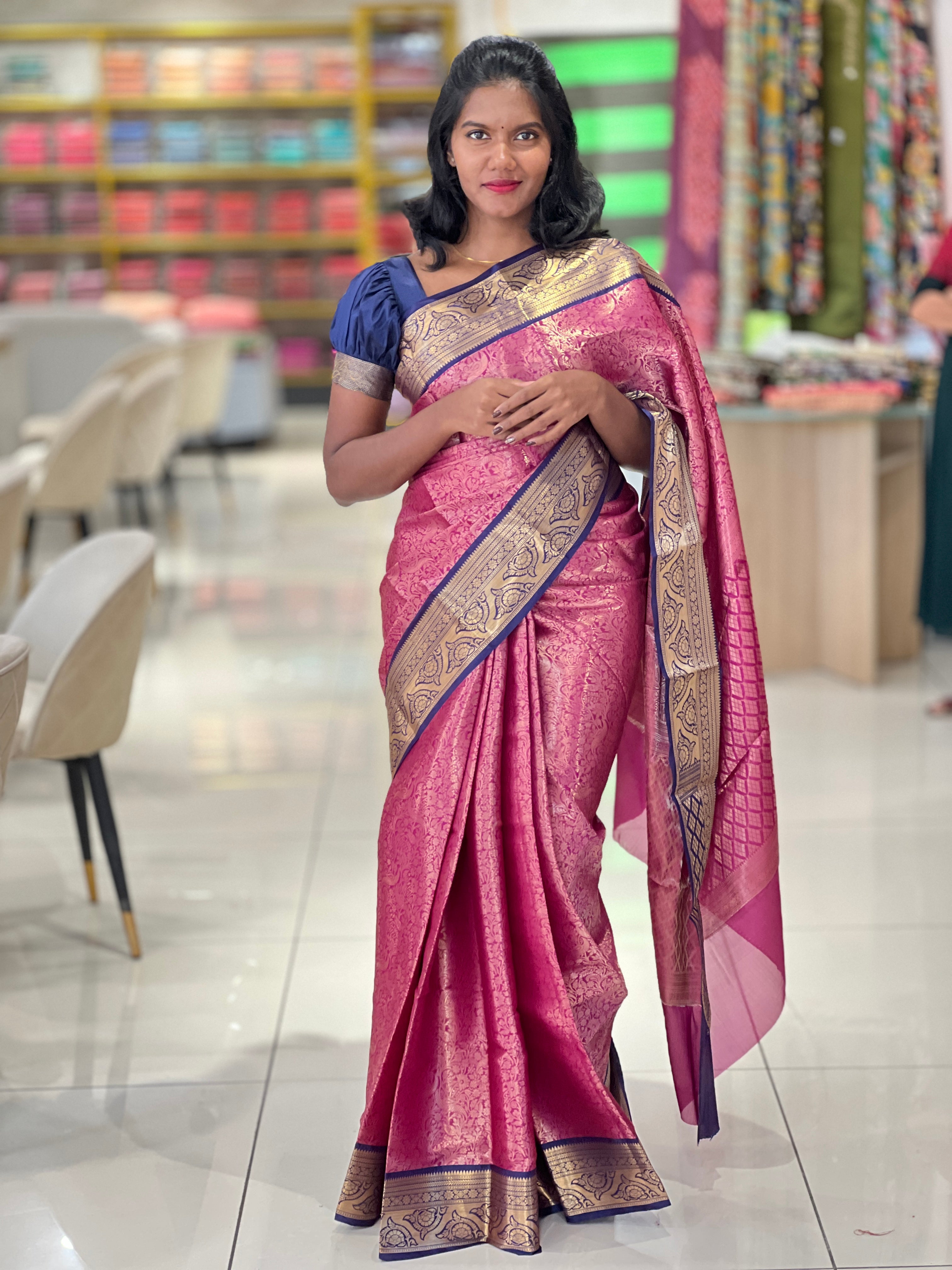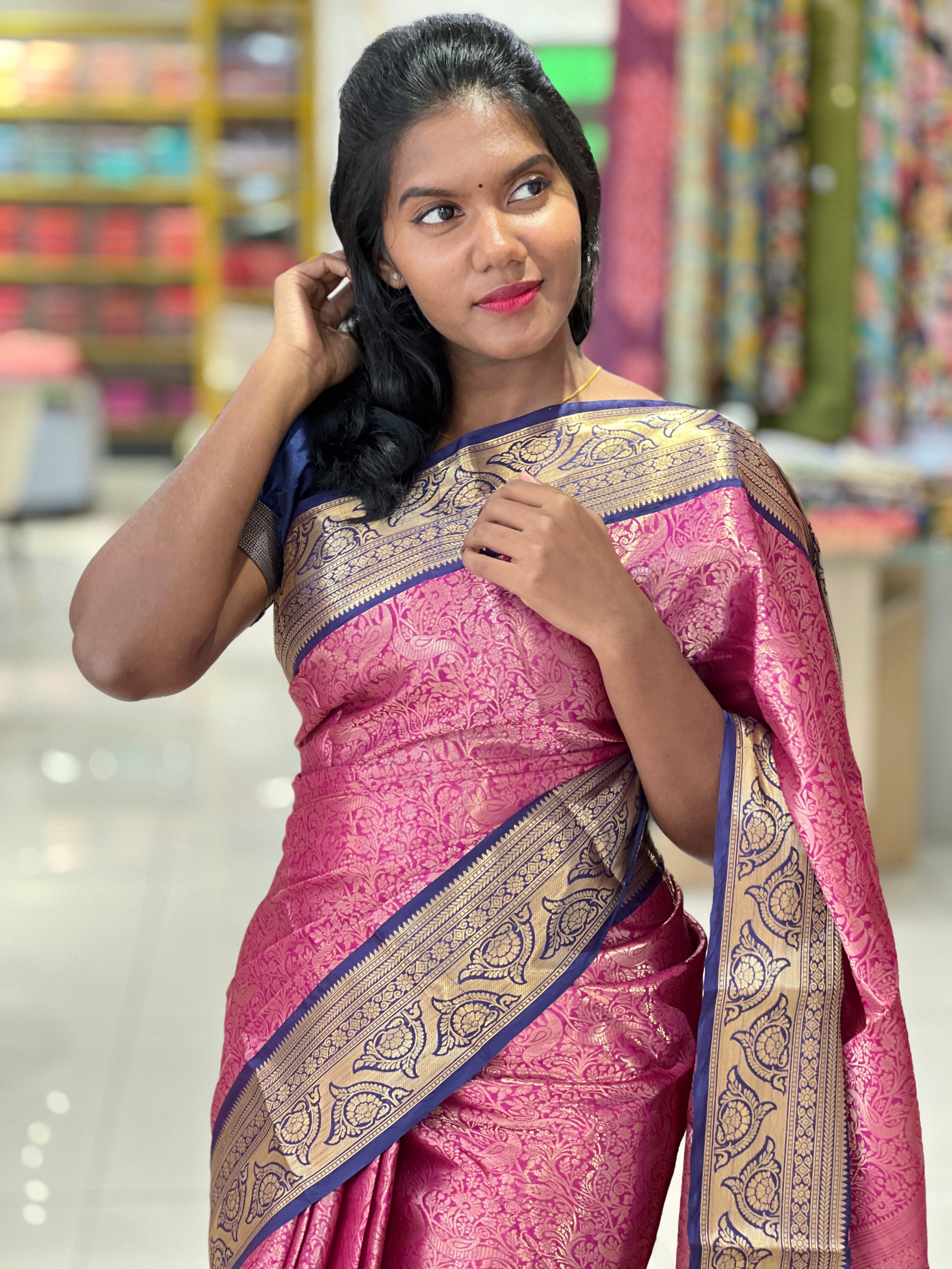 - Style: Banarasi Woven, Golden Zari Woven, Floral Pattern, Contrast Borders, Diamond Patterned Pallu