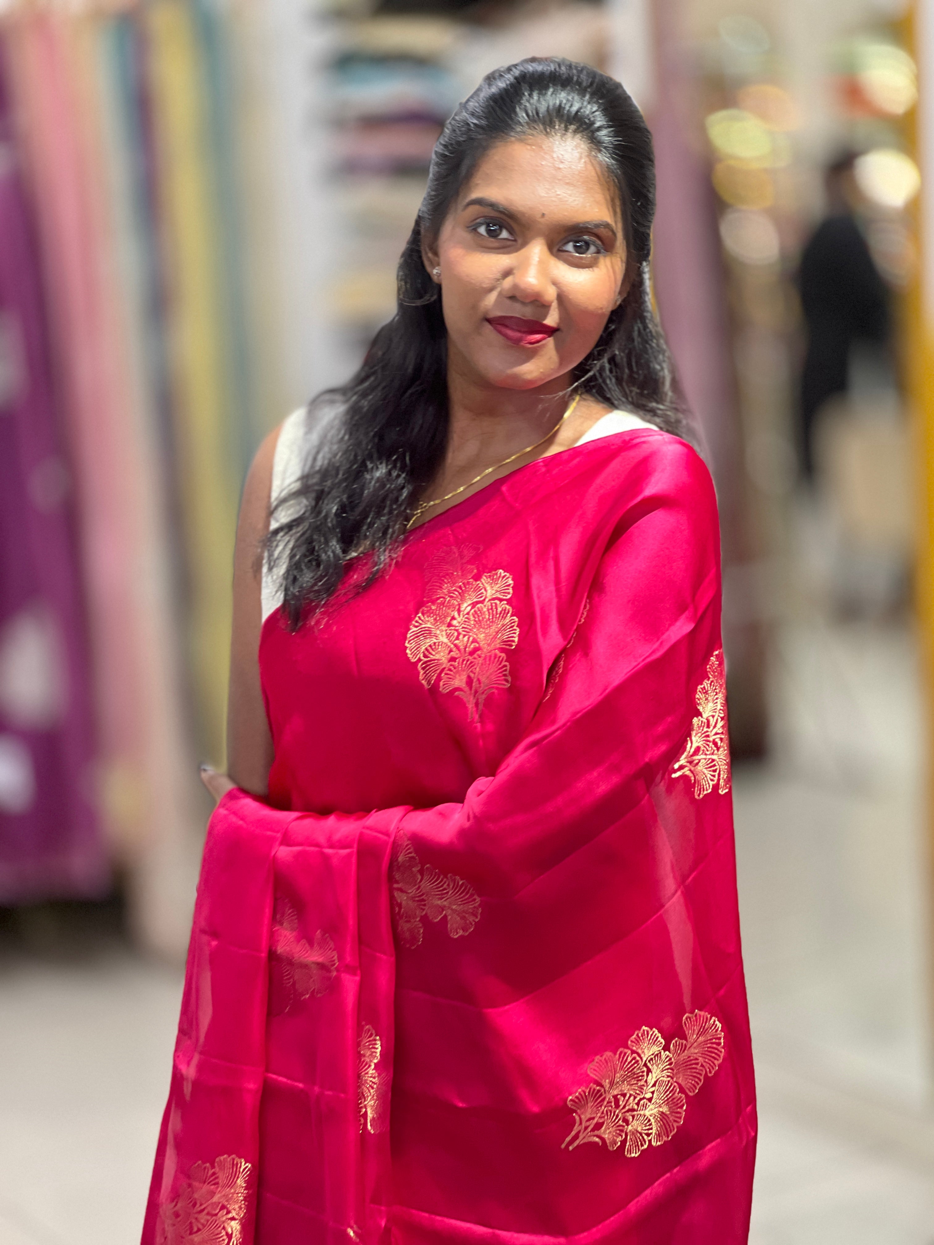 - Style: Banarasi Weaving, Scattered Zari Floral Motifs, Brocade Pallu