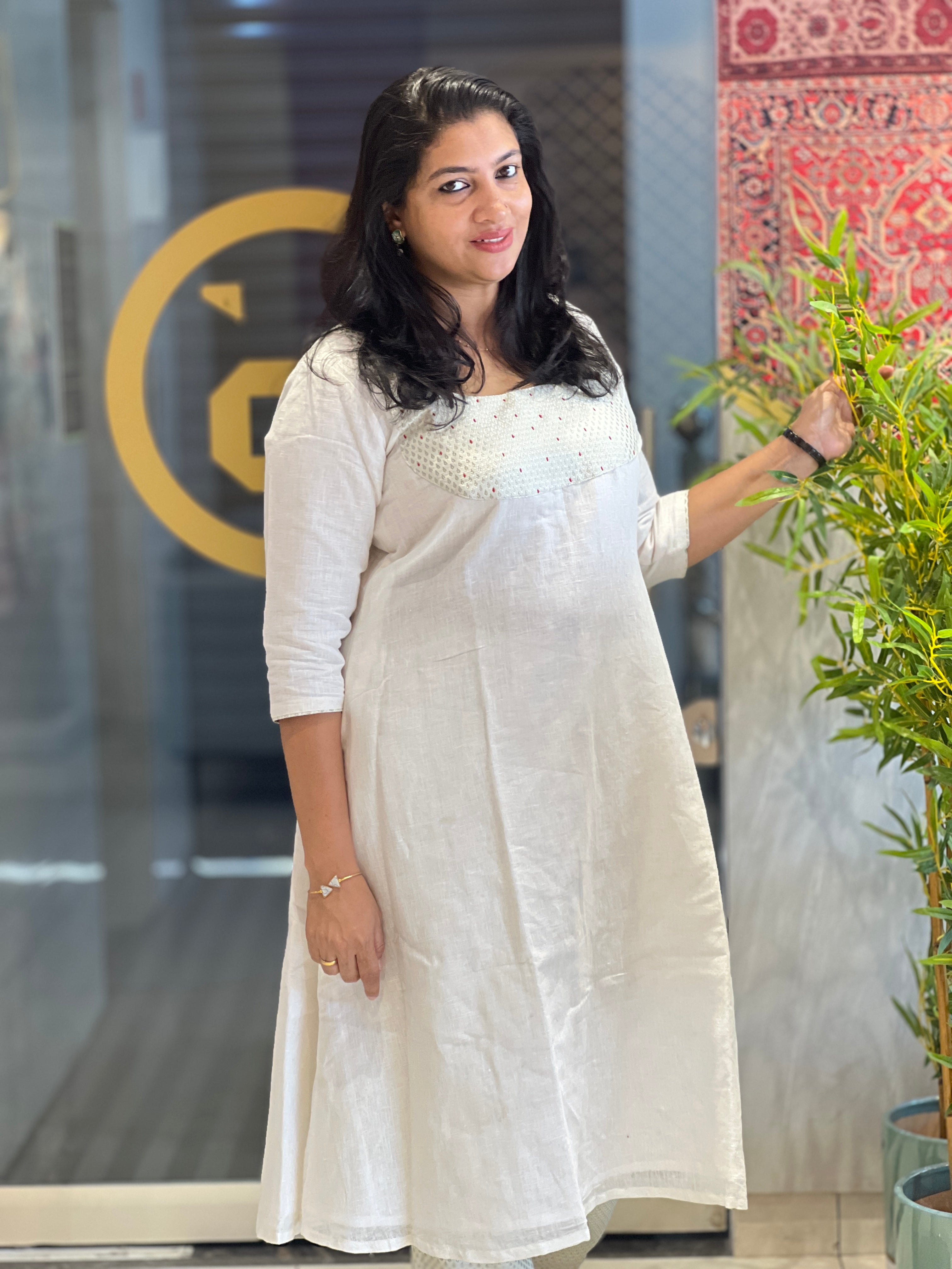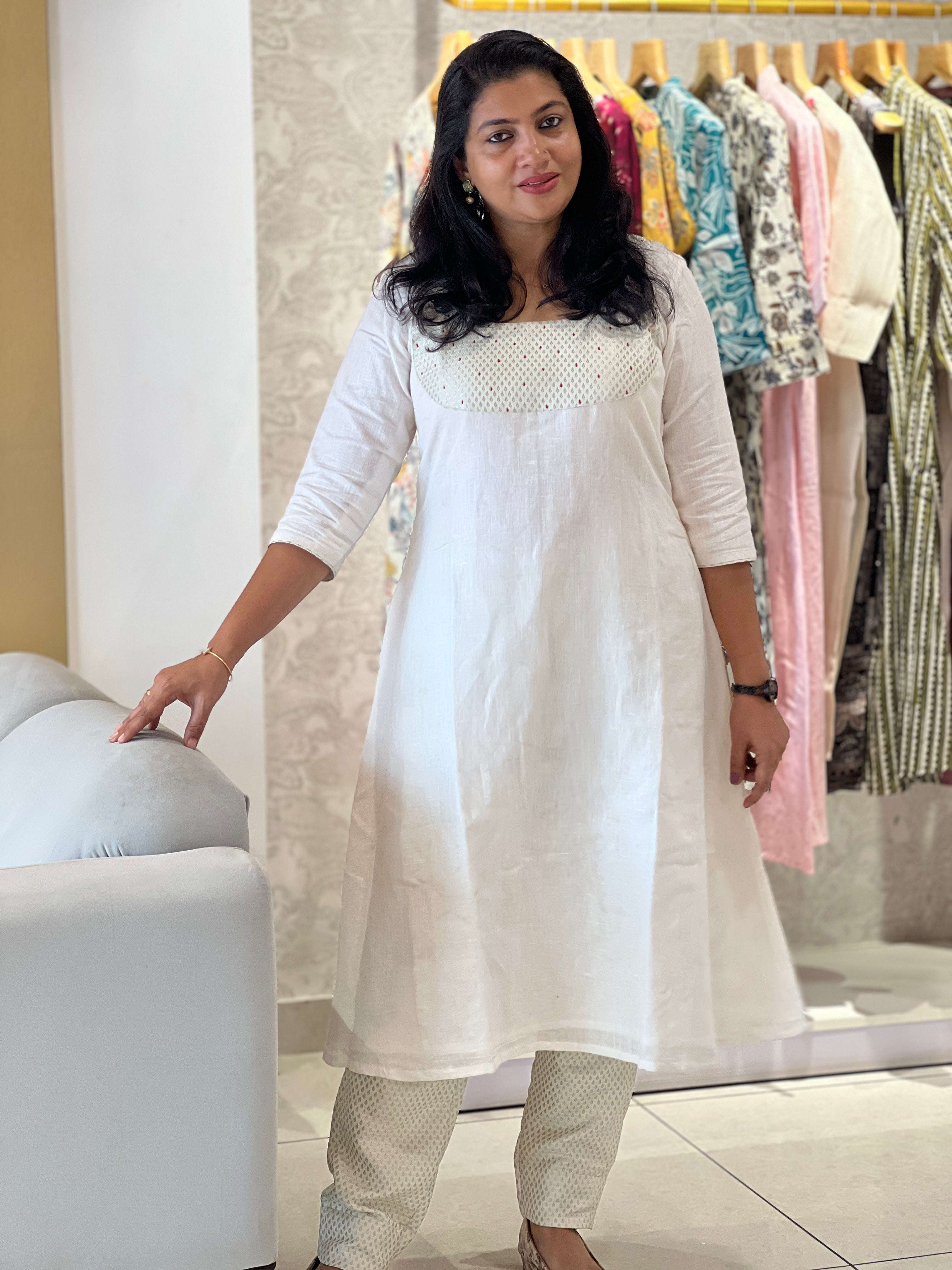 - Style - Banarasi With Hand Kantha Detailed Yoke Portion, A-Line Pattern