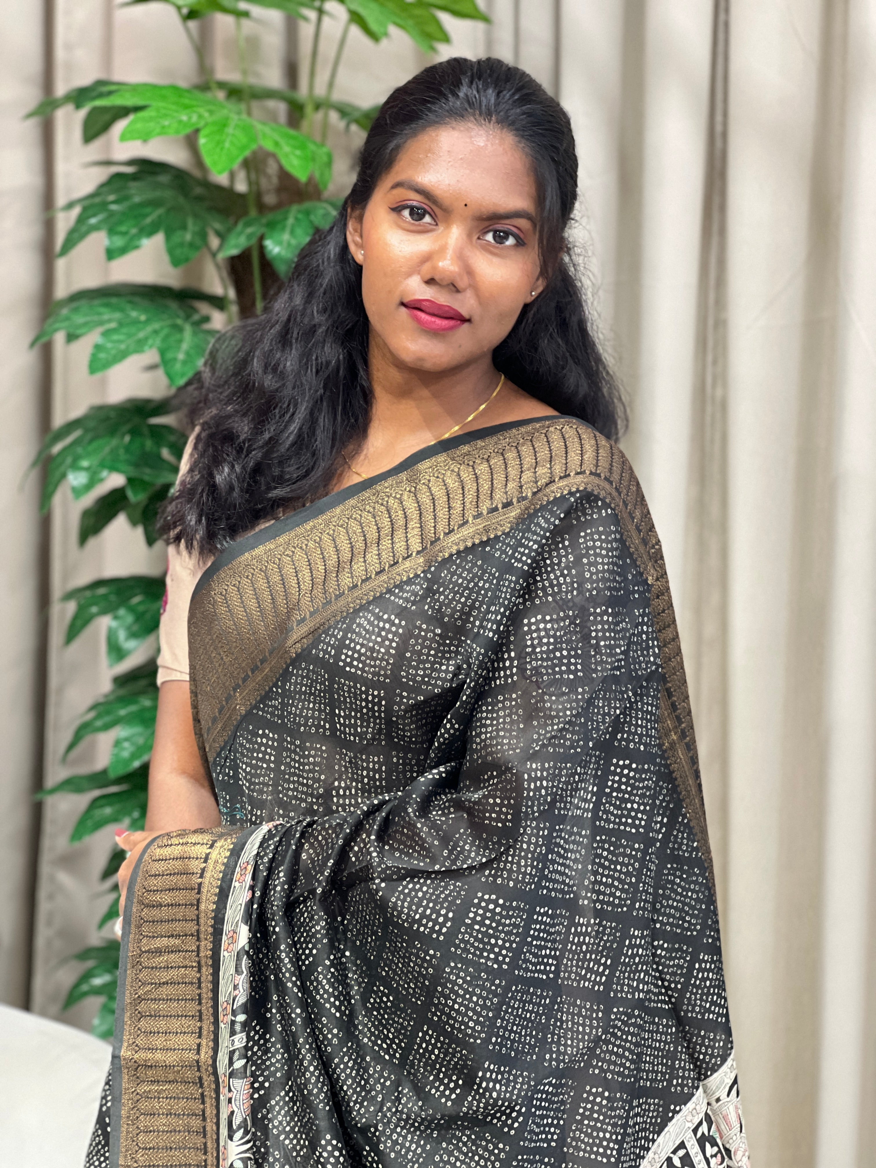 • Bandhani & Kalamkari Print Detailed Chanderi Saree | RGD963R